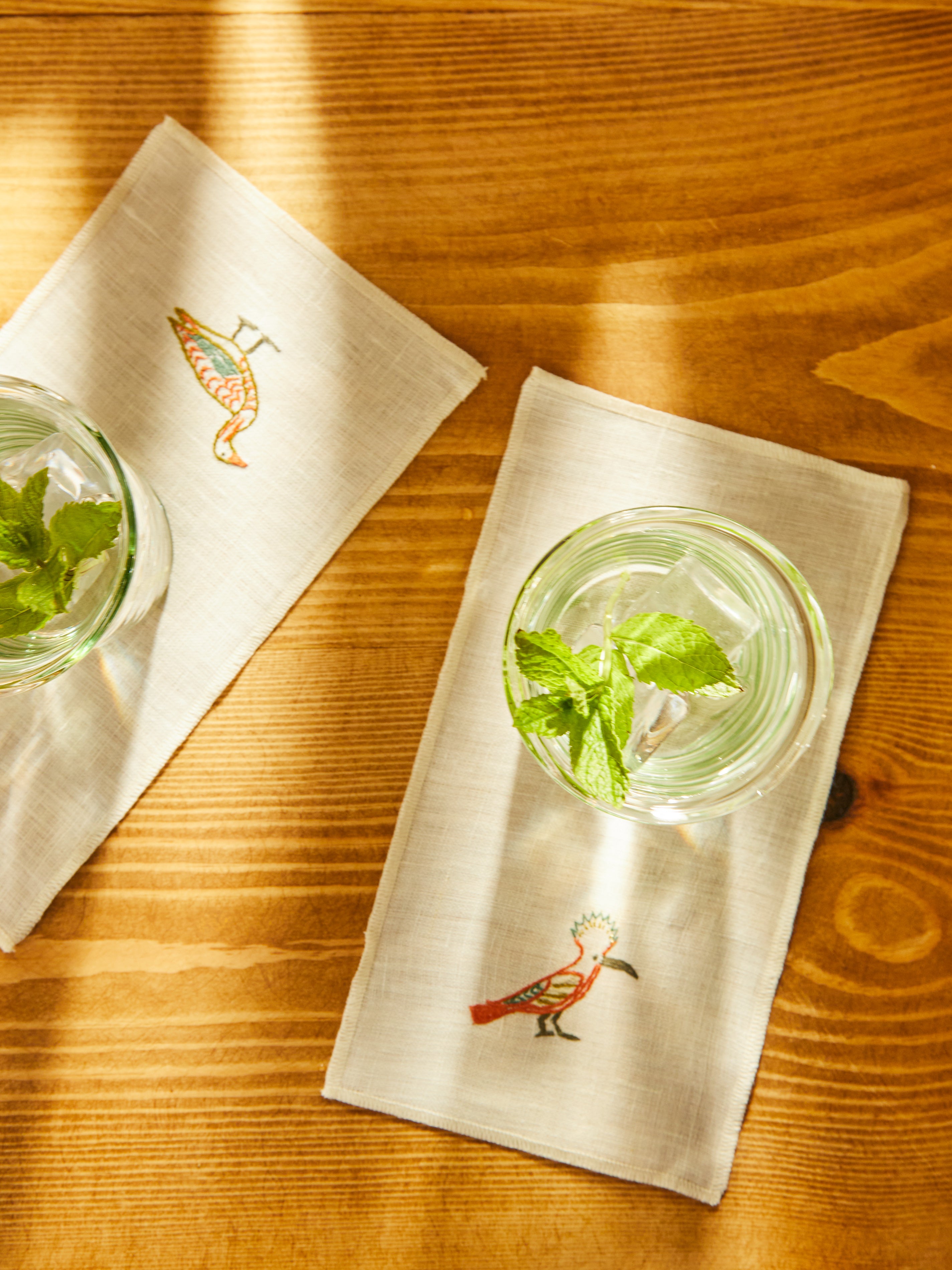Goya Gallagher founded Anūt Cairo to emphasize the cultural heritage of Egypt, which is why every table treat—from ceramics to linen to glassware—is crafted by the hands of specialized artisans across the country. Not only does Anūt champion the maker behind each piece, but it also fosters entrepreneurship through dedicated initiatives, such as a training center, embroidery school, and artist residency scheme, all of which are intended to create sustainable paths and economic independence for underprivileged communities. Designs are testament to the art of creative collaboration and original craftsmanship, detailed with whimsical scenes inspired by Egyptian landscapes.