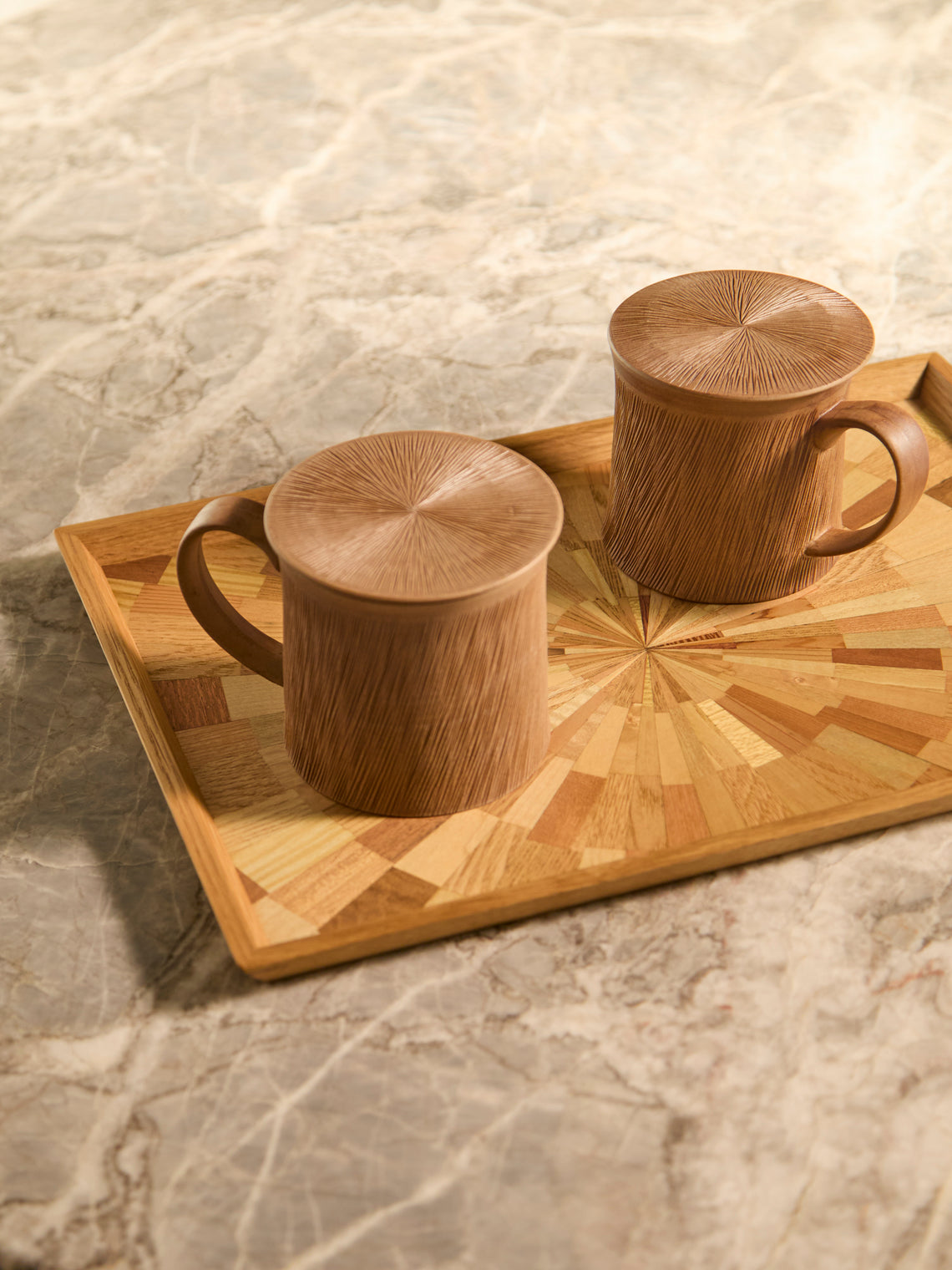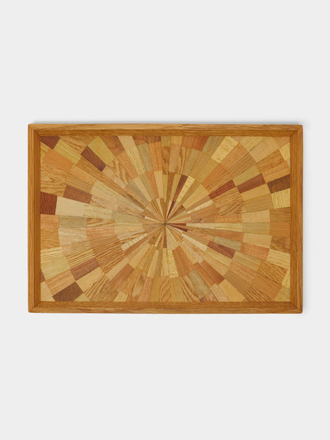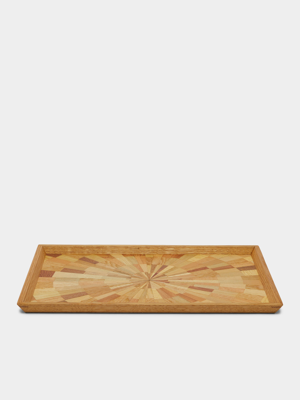 Since 1953, Tokushima-based Mori Kougei has been specialising in tsuki-ita, a highly complex technique in which paper-thin sheets of wood are sliced with sharp blades before being bonded together to form intricate surface patterns. This meticulous process has been refined and passed through the generations for more than 70 years. The result is a selection of functional trays highlighting the grain, colour and character of different wood species. Expect meticulously indigo-dyed pieces – a treasured Tokushima art – and subtle, contemporary scenes inspired by art, geometry and nature.
