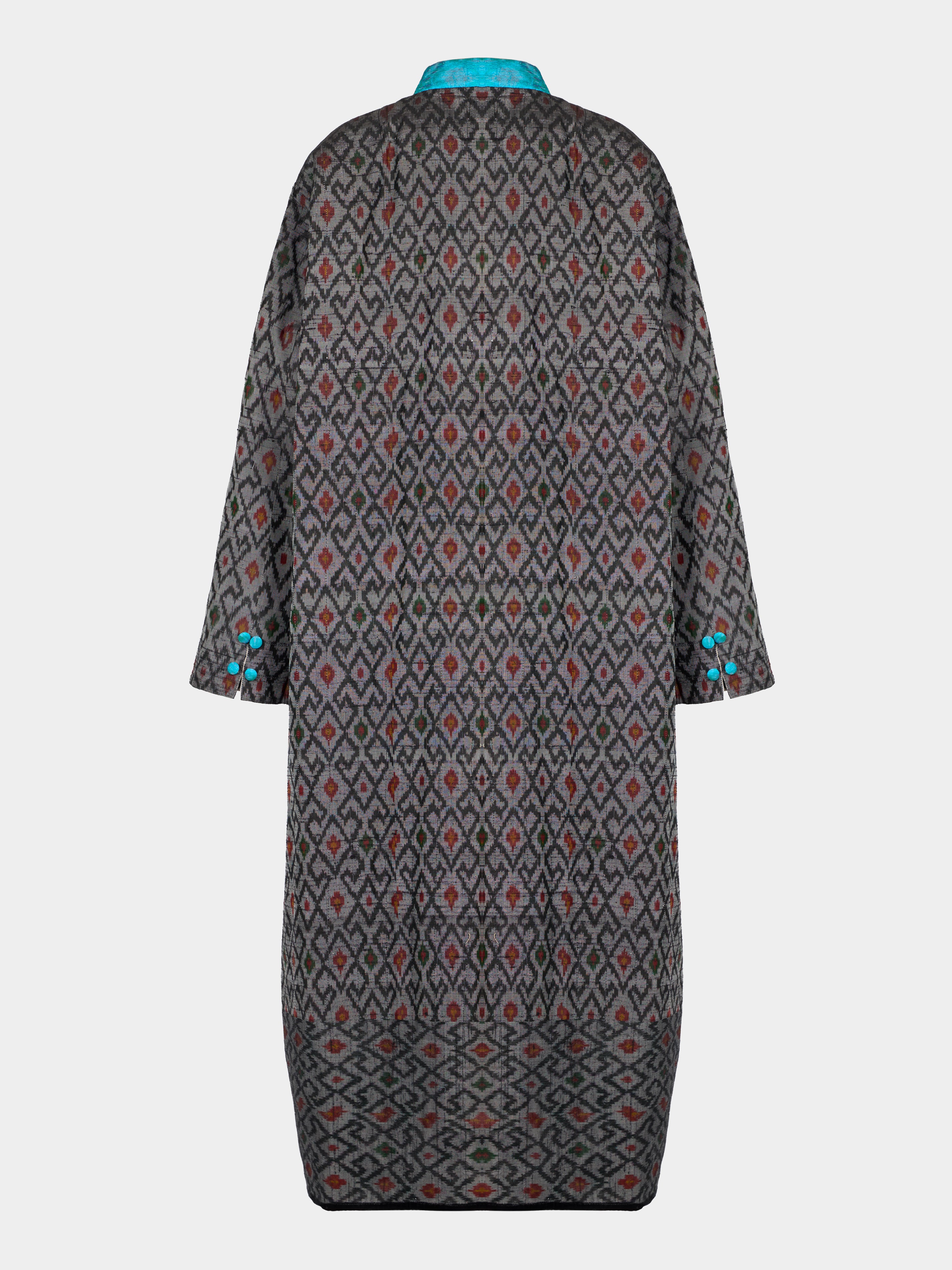 Nazzy Beglari Hand-Loomed Ikat Cotton Reversible Chapan-Style Robe | One Size