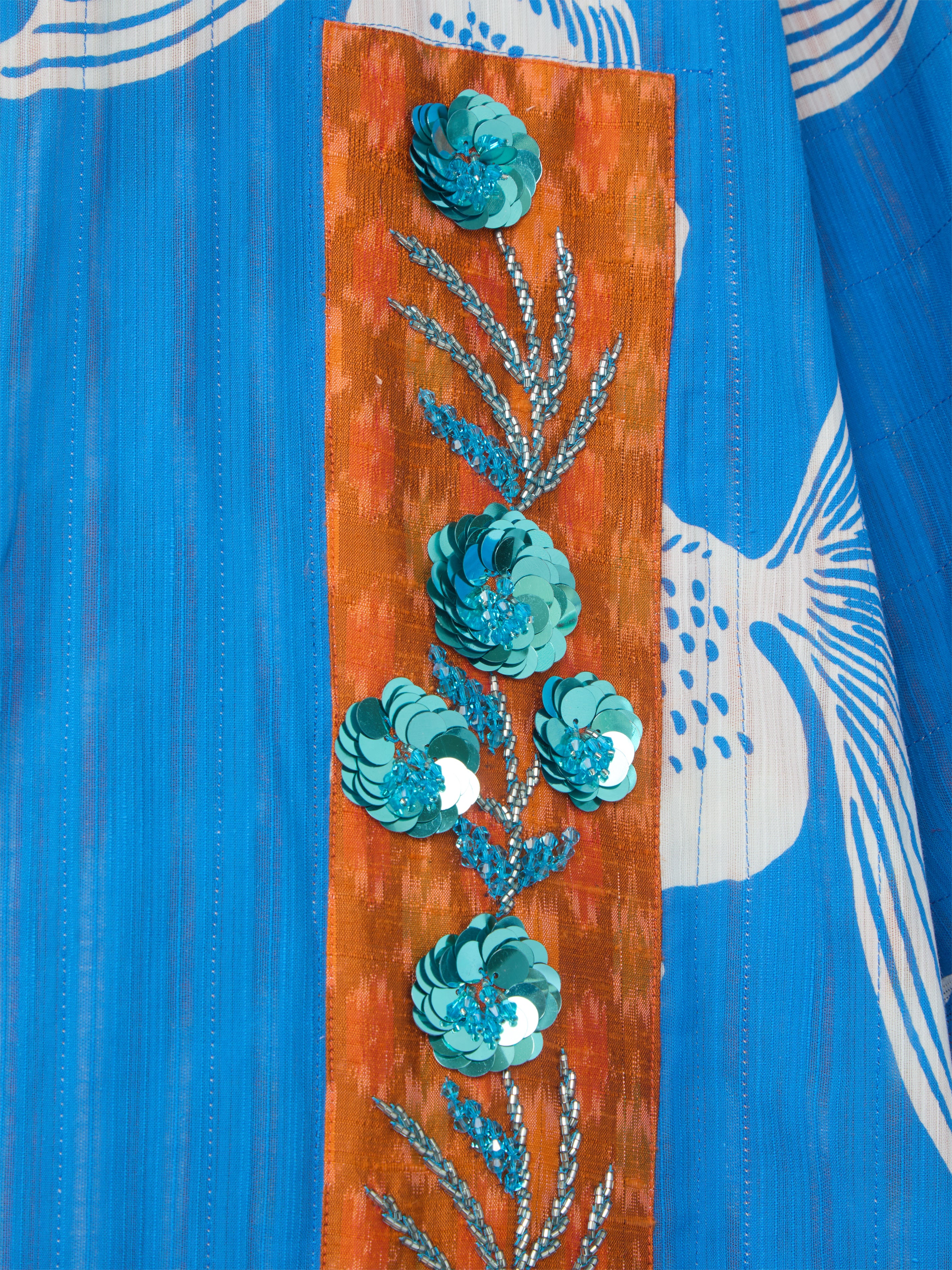- Composition: Japanese Cotton Outer, Silk Cotton Inner With Embroidered Glass Beads