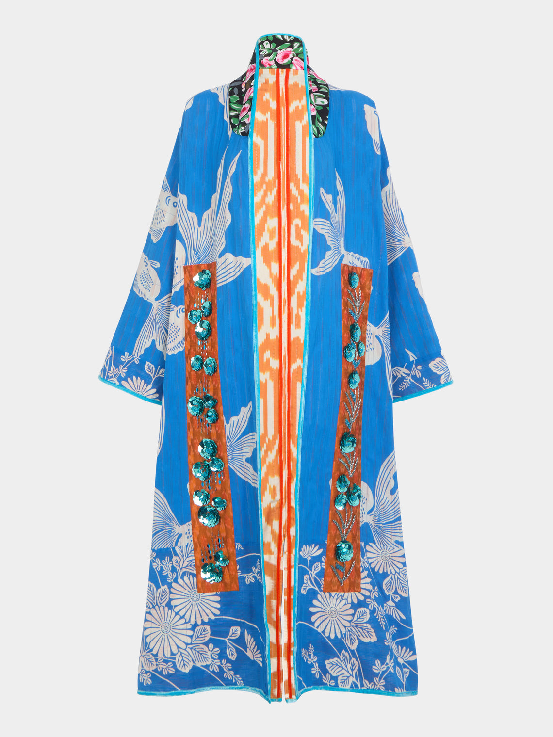 Nazzy Beglari Hand-Loomed Katazome Cotton Reversible Robe | One Size
