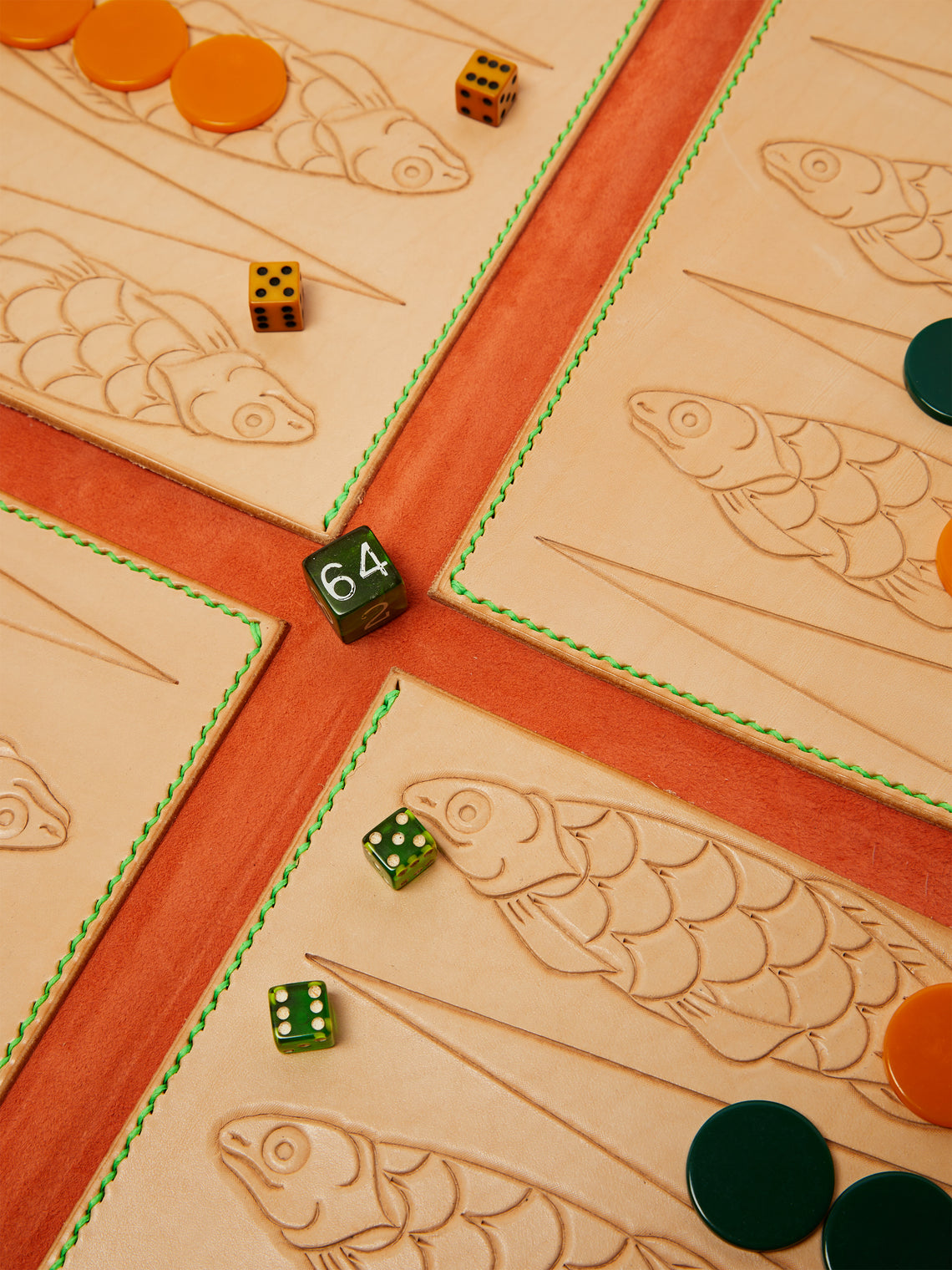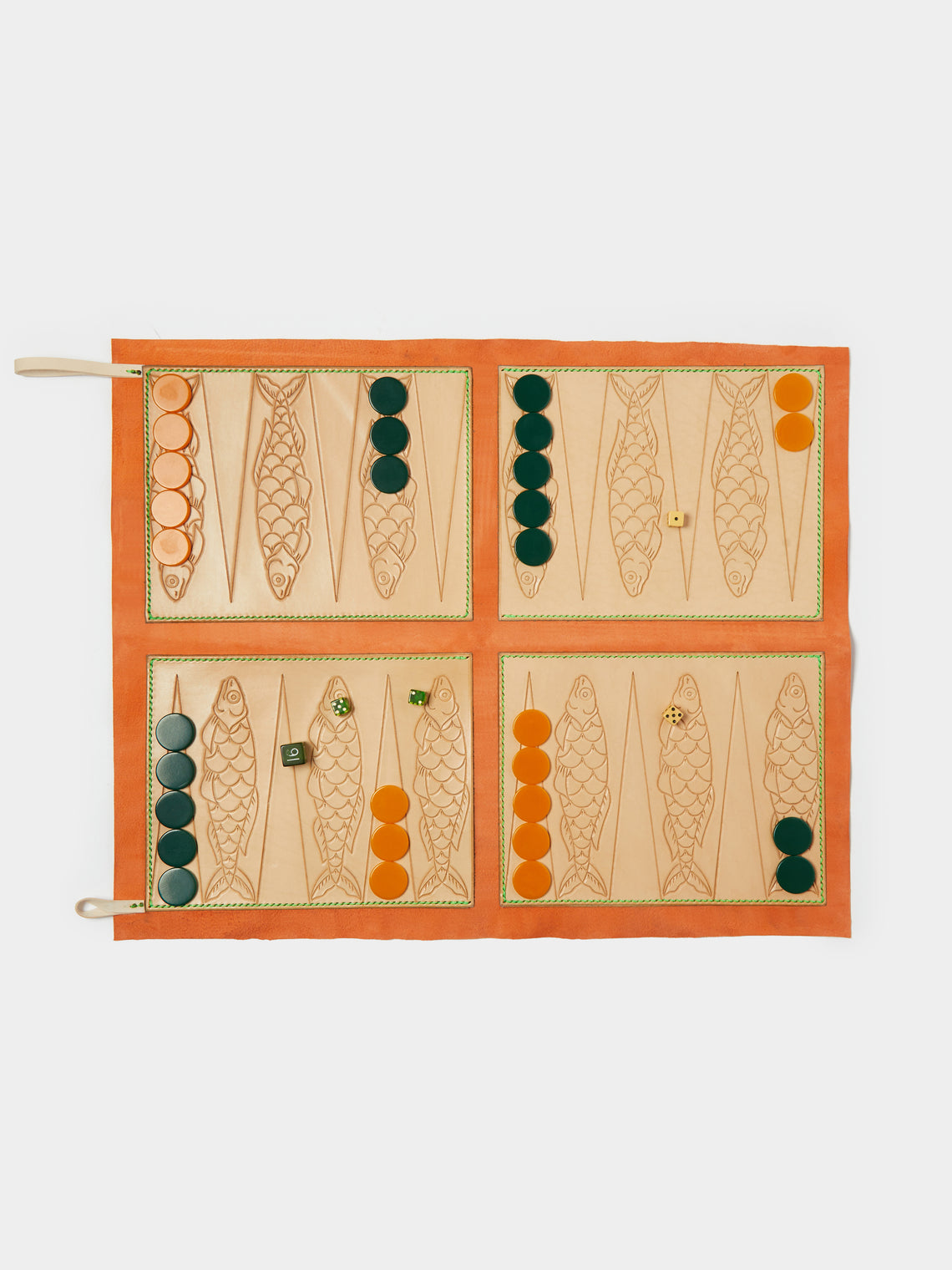 Nick Plant Fish Leather Travel Backgammon Set