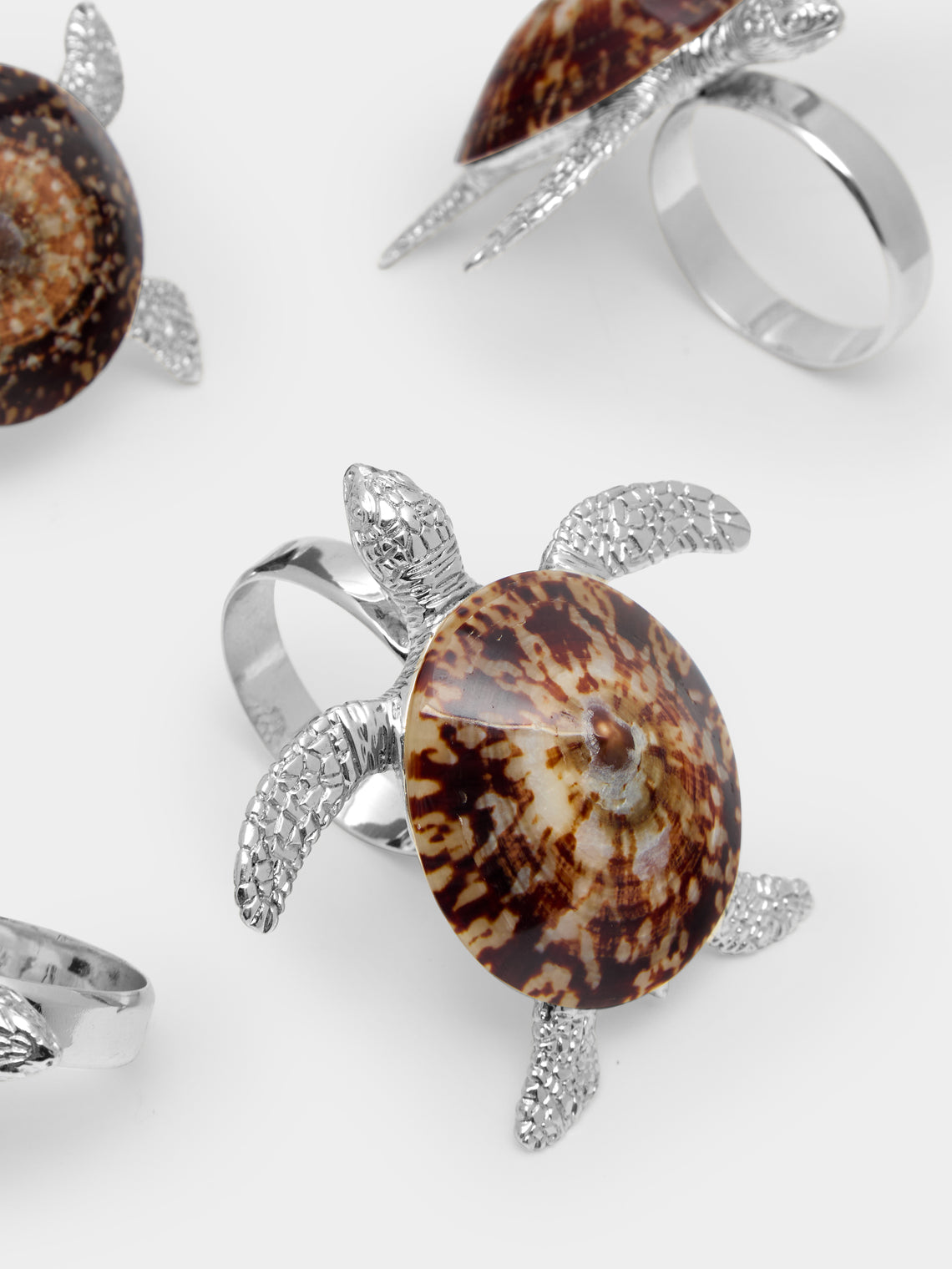 Objet Luxe Sea Turtle Silver-Plated and Shell Napkin Rings (Set of 4)