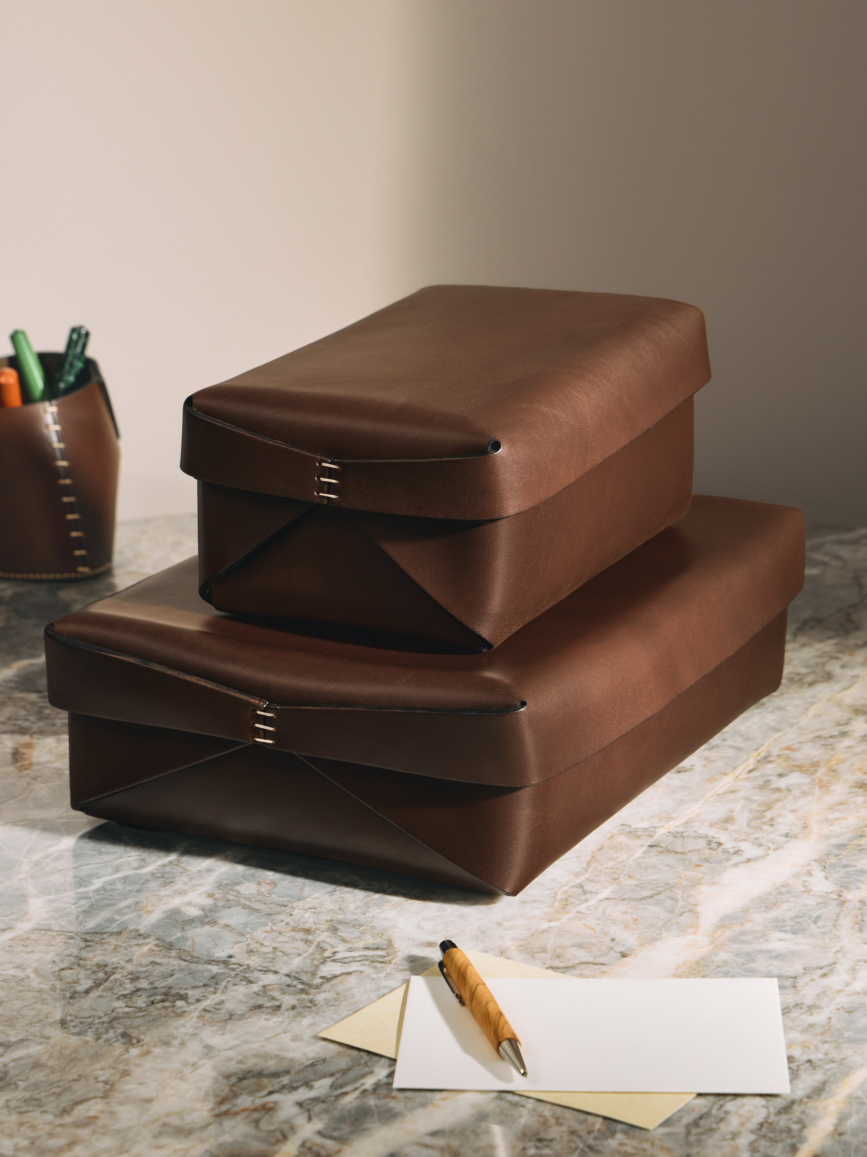 Lidded Leather Box11cm (h) x 37cm (l) x 27cm (d) / 4.3" (h) x 14.5" (w) x 10.5" (l)