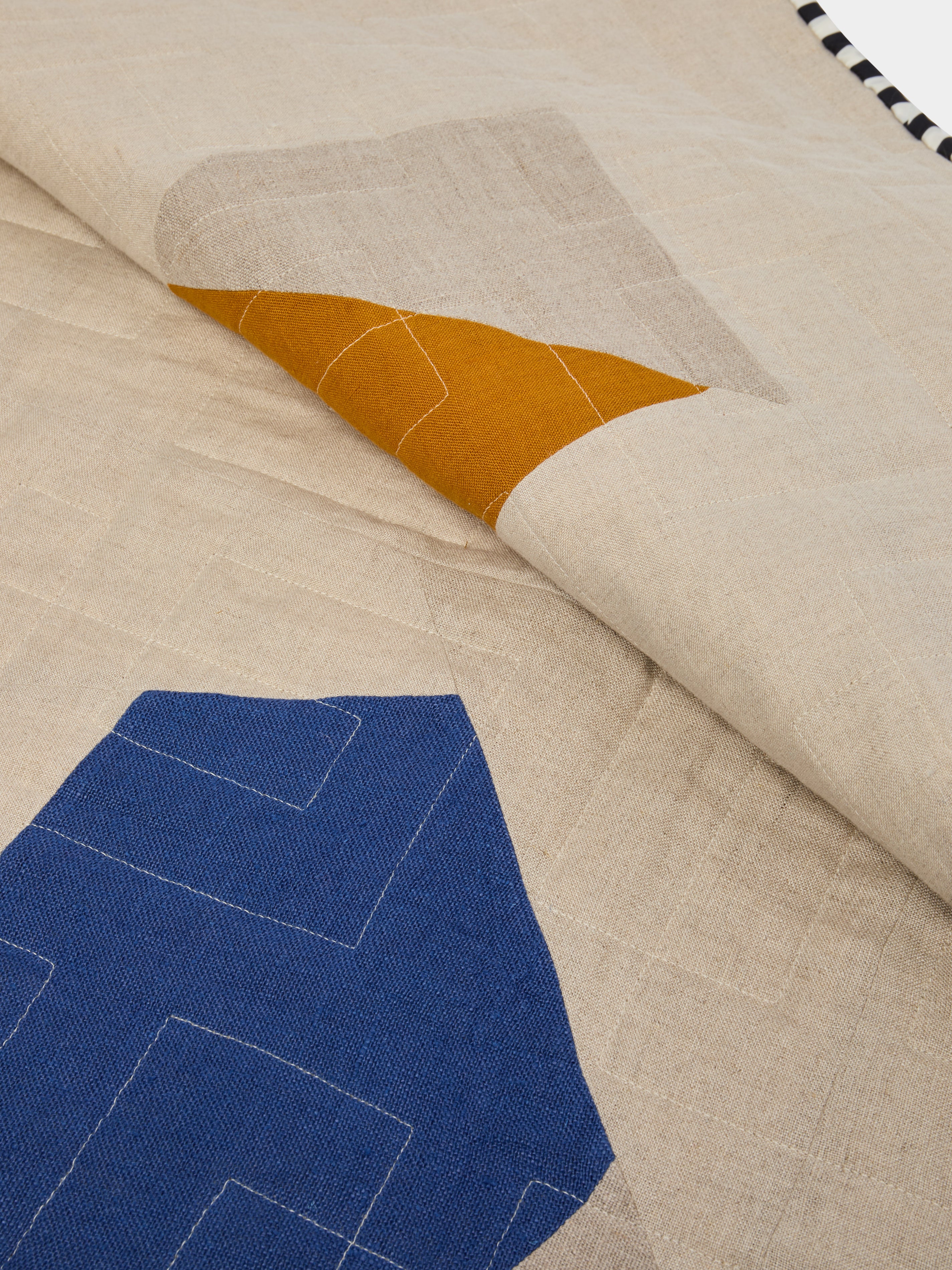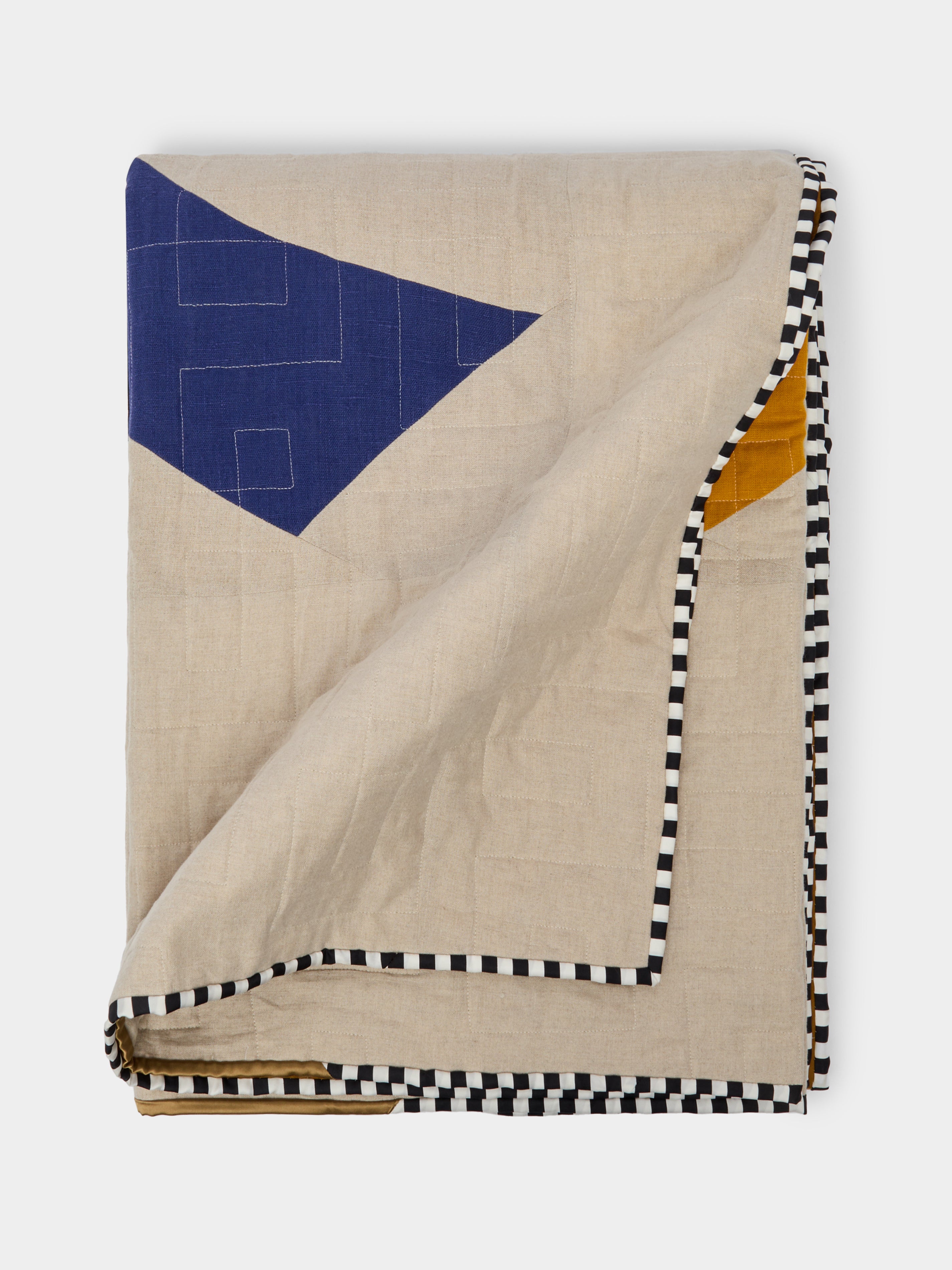 Multidisciplinary artist Emily Campbell has journeyed through several esteemed establishments, from Yale School of Art to Pentagram in New York. Her founding of Pemberton Qwilts – named after the woman who taught her to sew, Sheila Frances Hayes, formerly Pemberton – came about in 2012 when she saw a quilt made from denim and work clothes in an exhibition about the famed Alabama-based quilting community, Gee’s Bend. This moment is pivotal to her story, as it inspired her to upcycle old family jeans into her first patchwork quilt. To inform her work, she looks to the rhythm, rule and variation of Anni Albers’ drawings, as well as the archives of Gustav Klimt, Victor Pasmore and Ellsworth Kelly. Her work is traditional quilt-making, modernised.