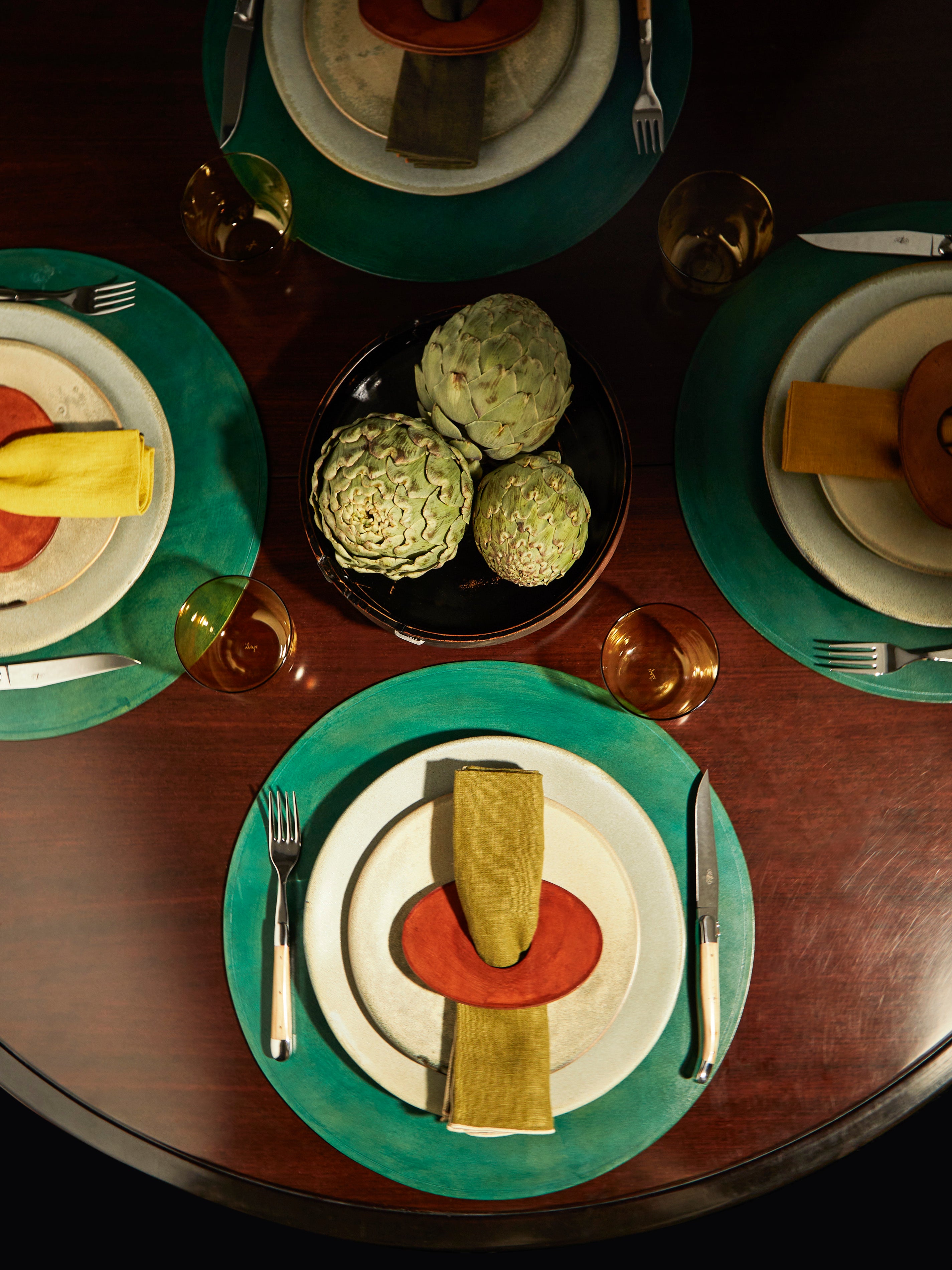 Hand-Stained Leather Placemats (Set of 4)40cm (d) / 16" (d)