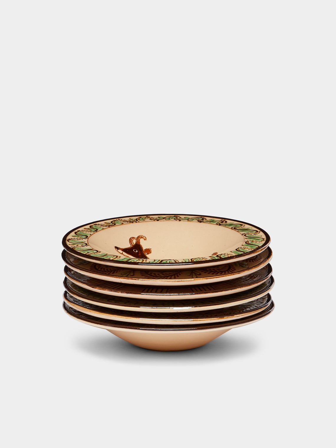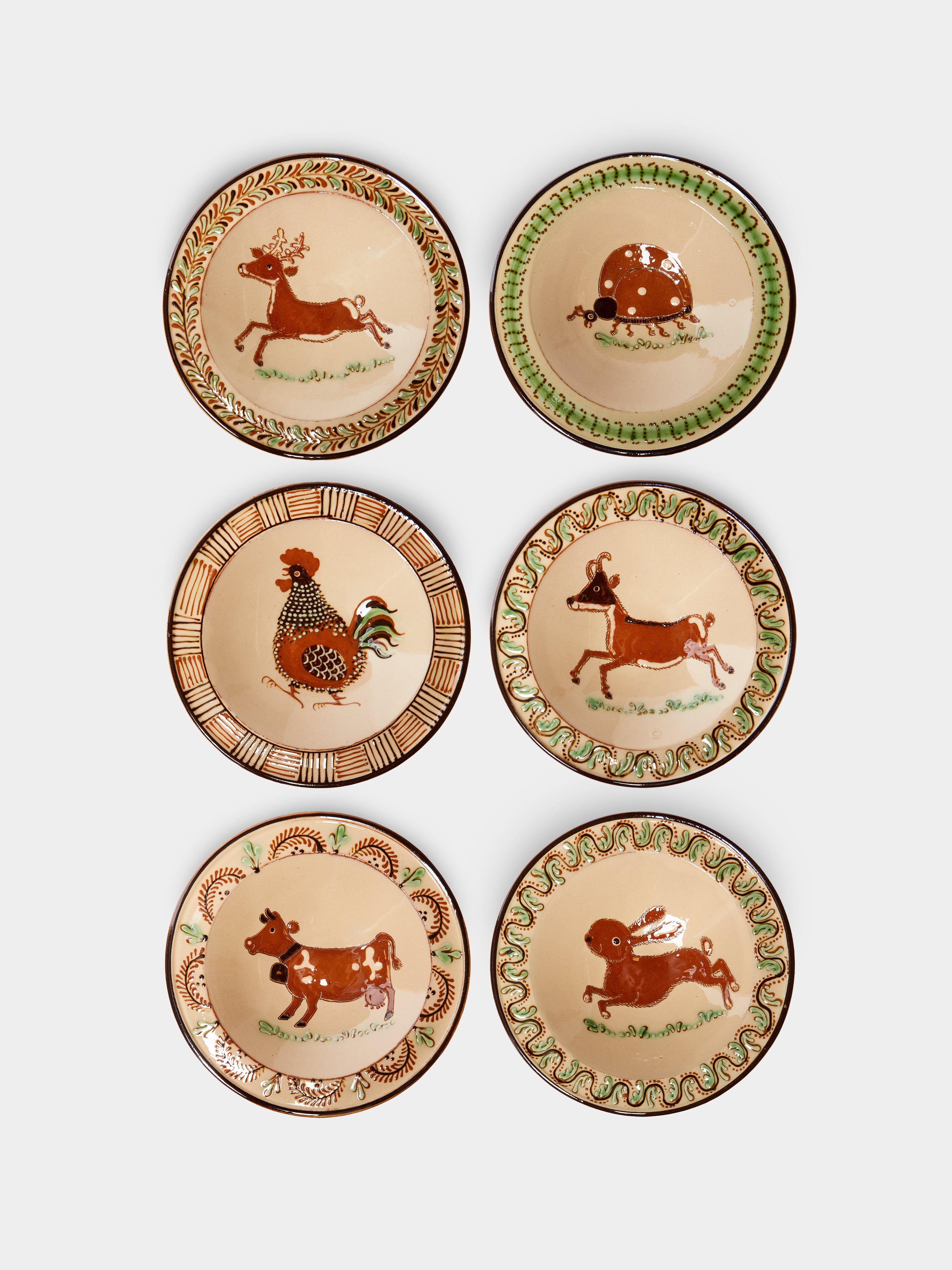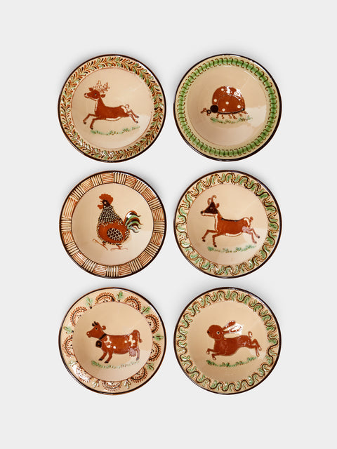 Poterie d’Évires Animals Hand-Painted Ceramic Breakfast Bowls (Set of 6)