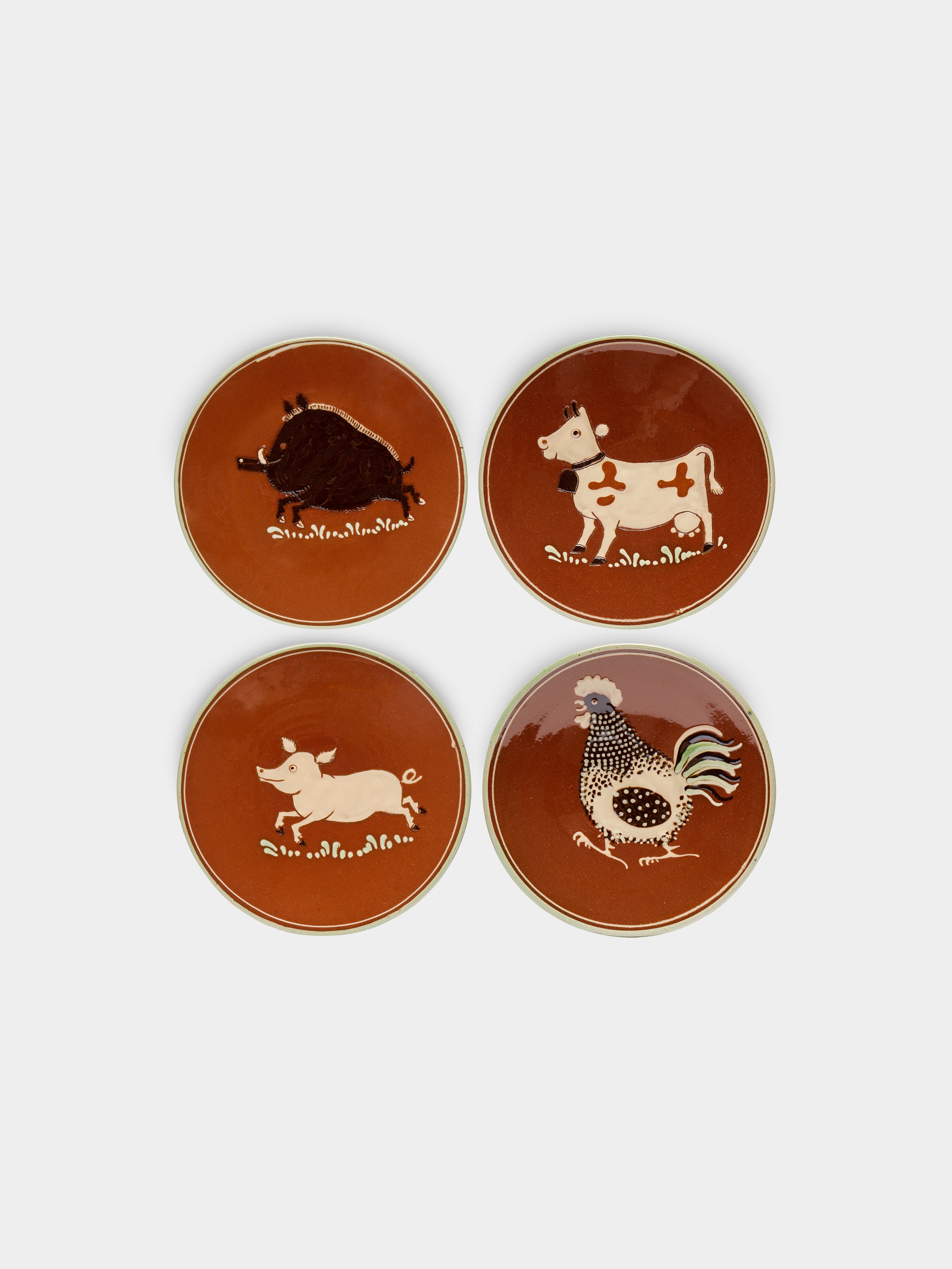 Poterie d’Évires Animals Hand-Painted Ceramic Salad / Dessert Plates – 5.5in/14cm (Set of 4)