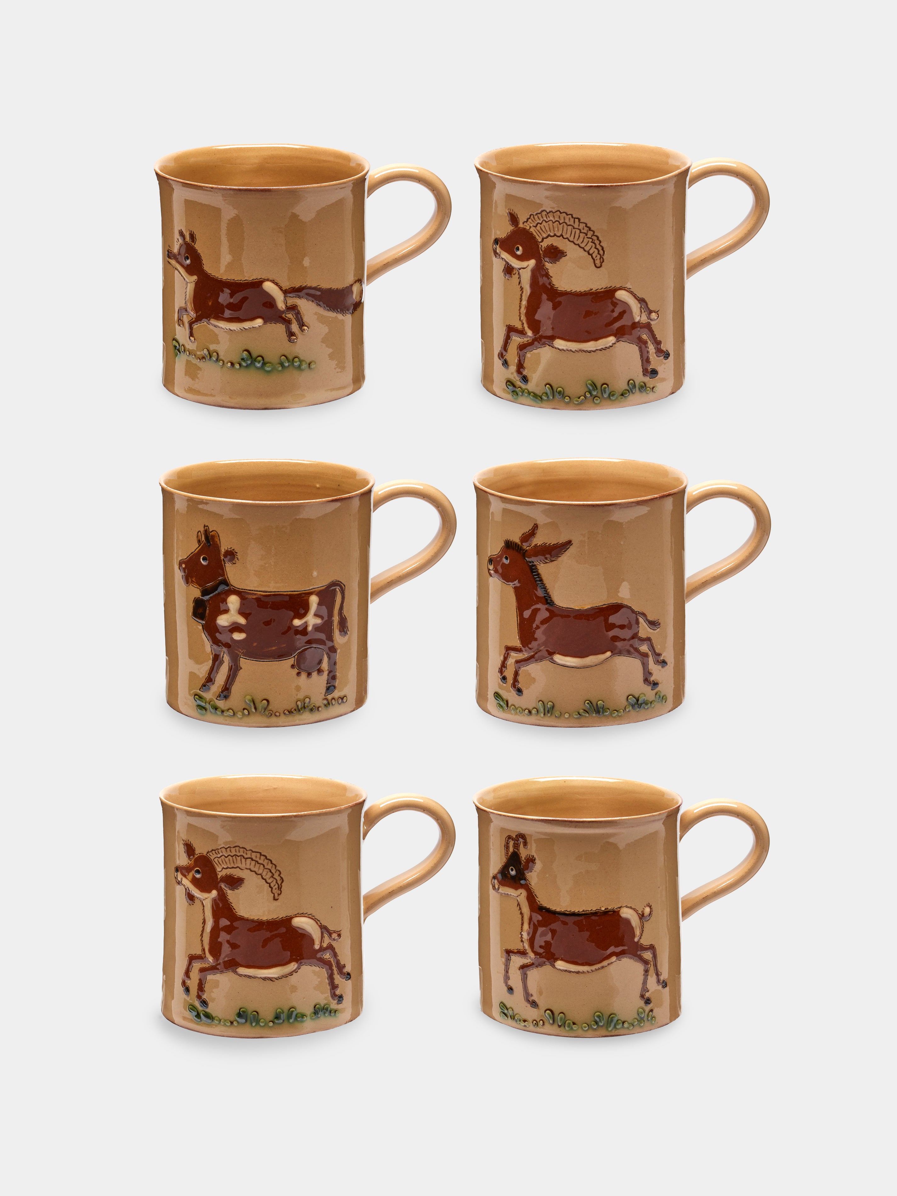 Poterie d’Évires Animals Hand-Painted Ceramic Mugs (Set of 6)