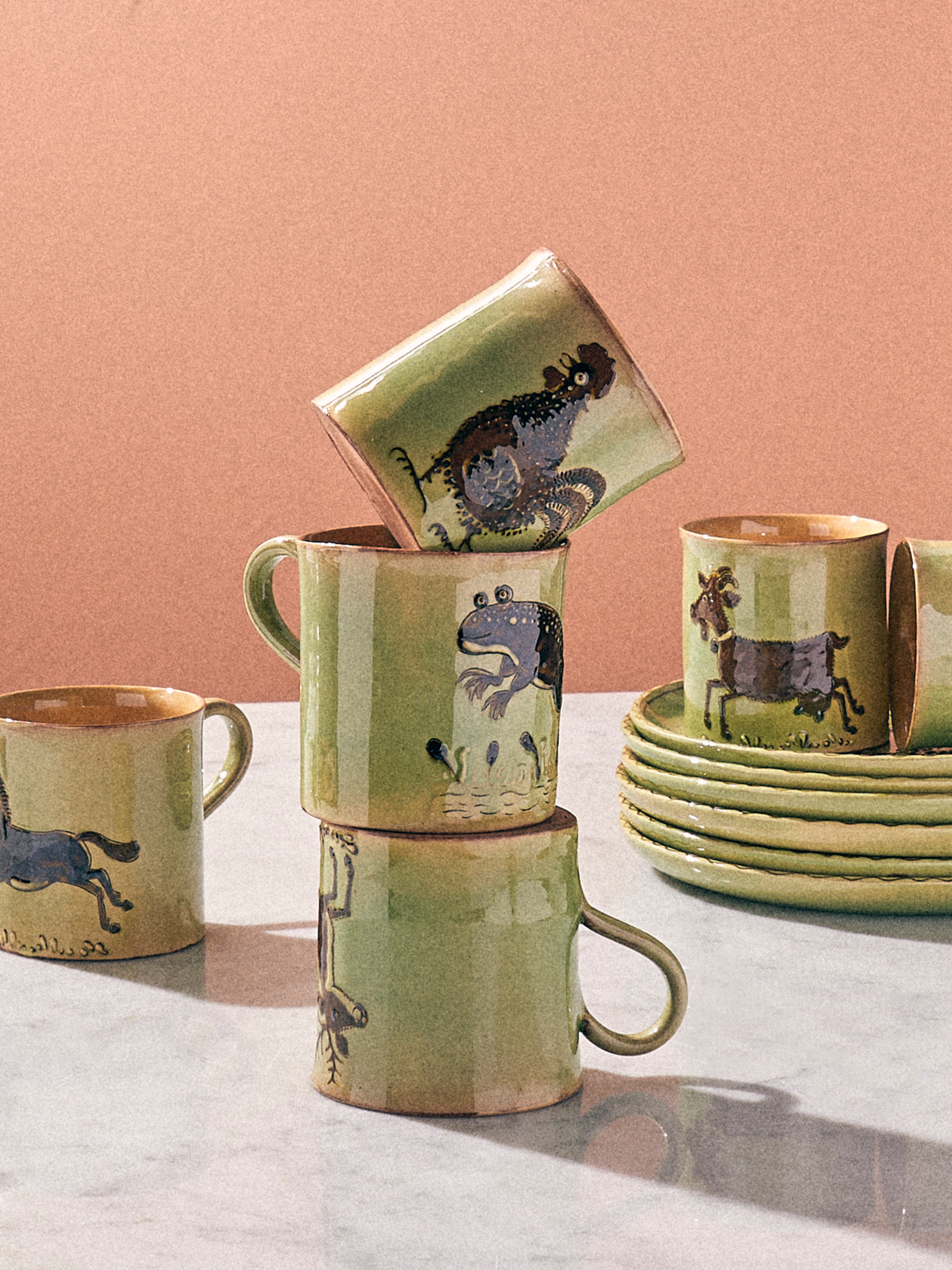 Poterie d’Évires Animals Hand-Painted Ceramic Mugs (Set of 6)
