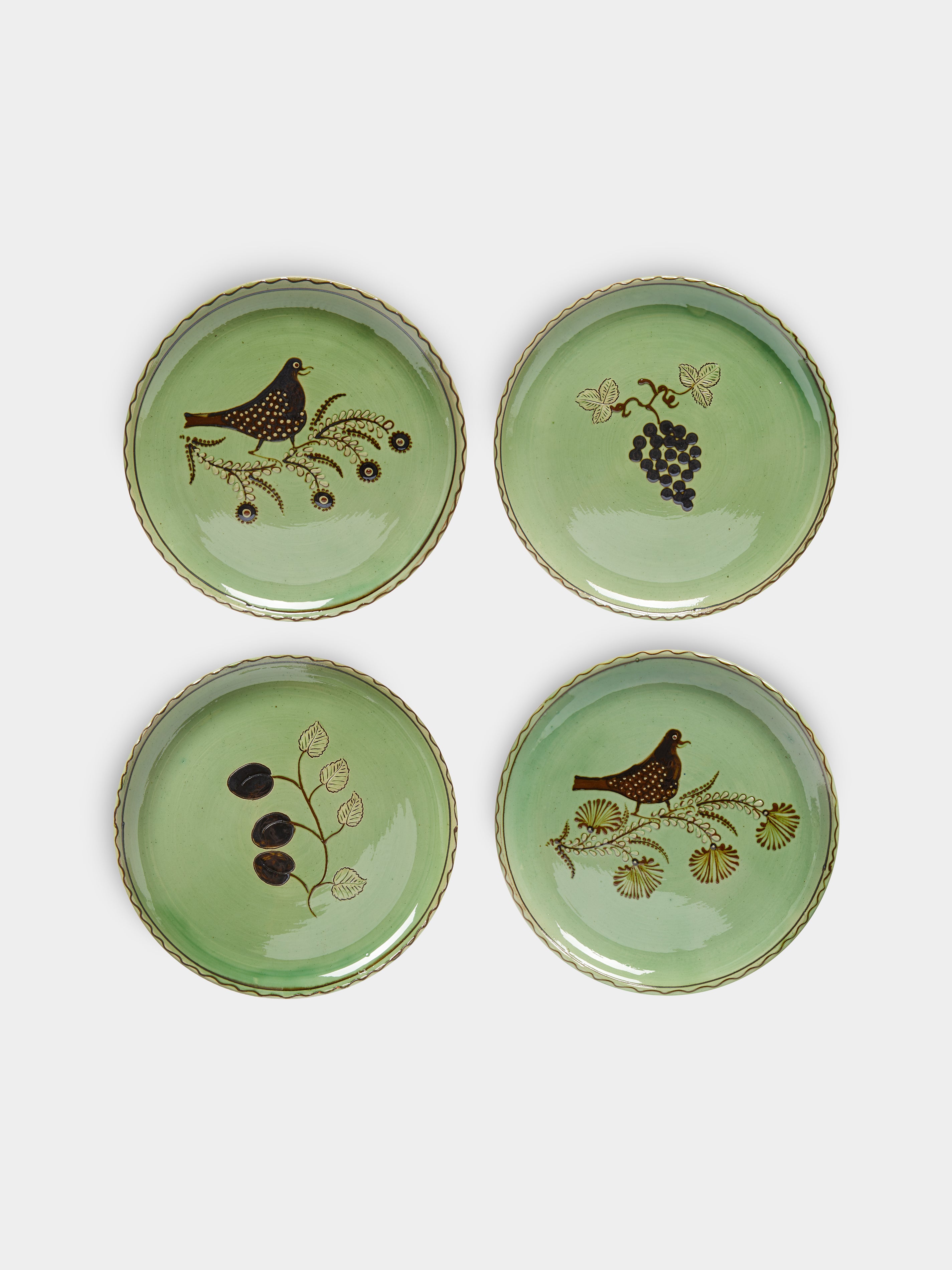 Poterie d’Évires Birds and Fruits Hand-Painted Ceramic Dinner Plates – 9.5in/24cm (Set of 4)