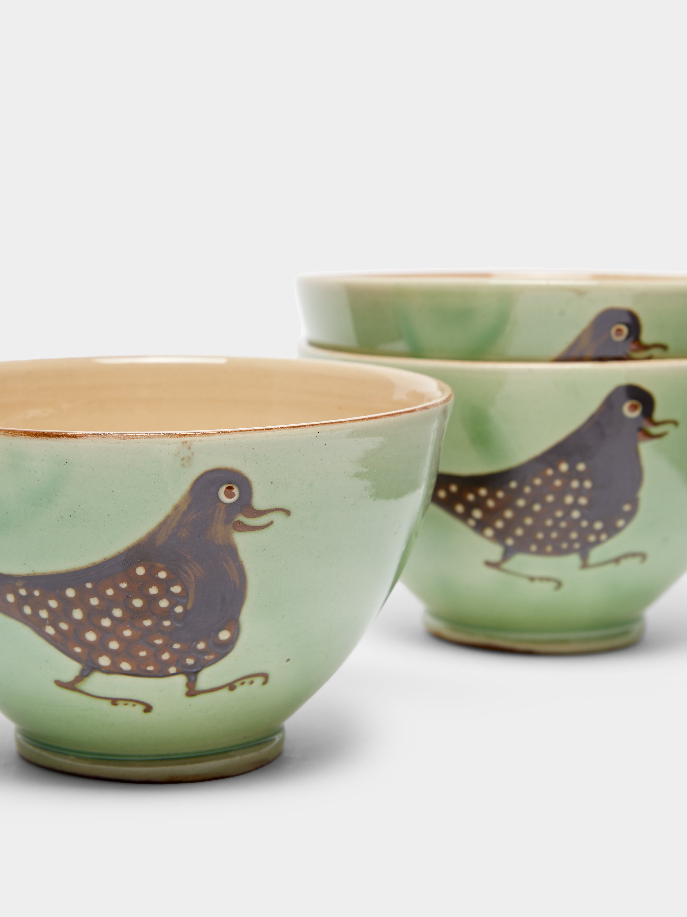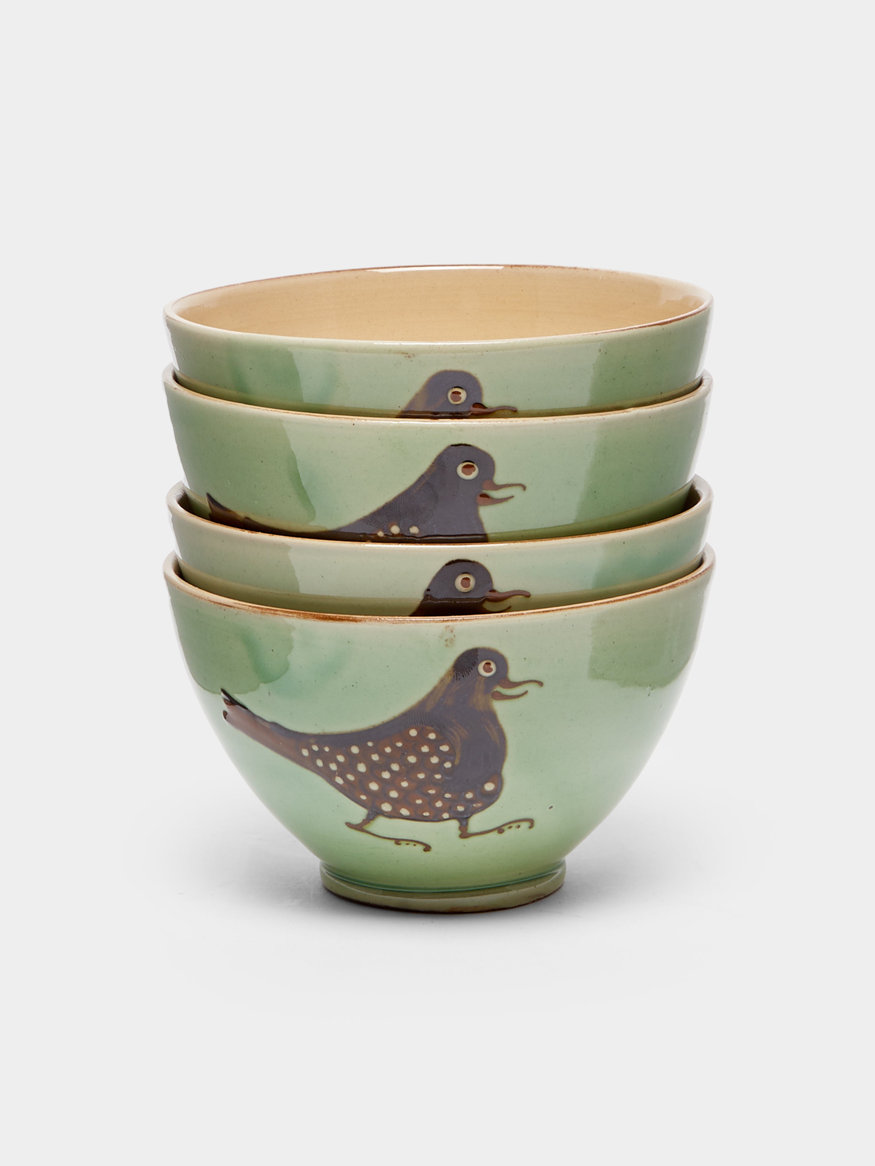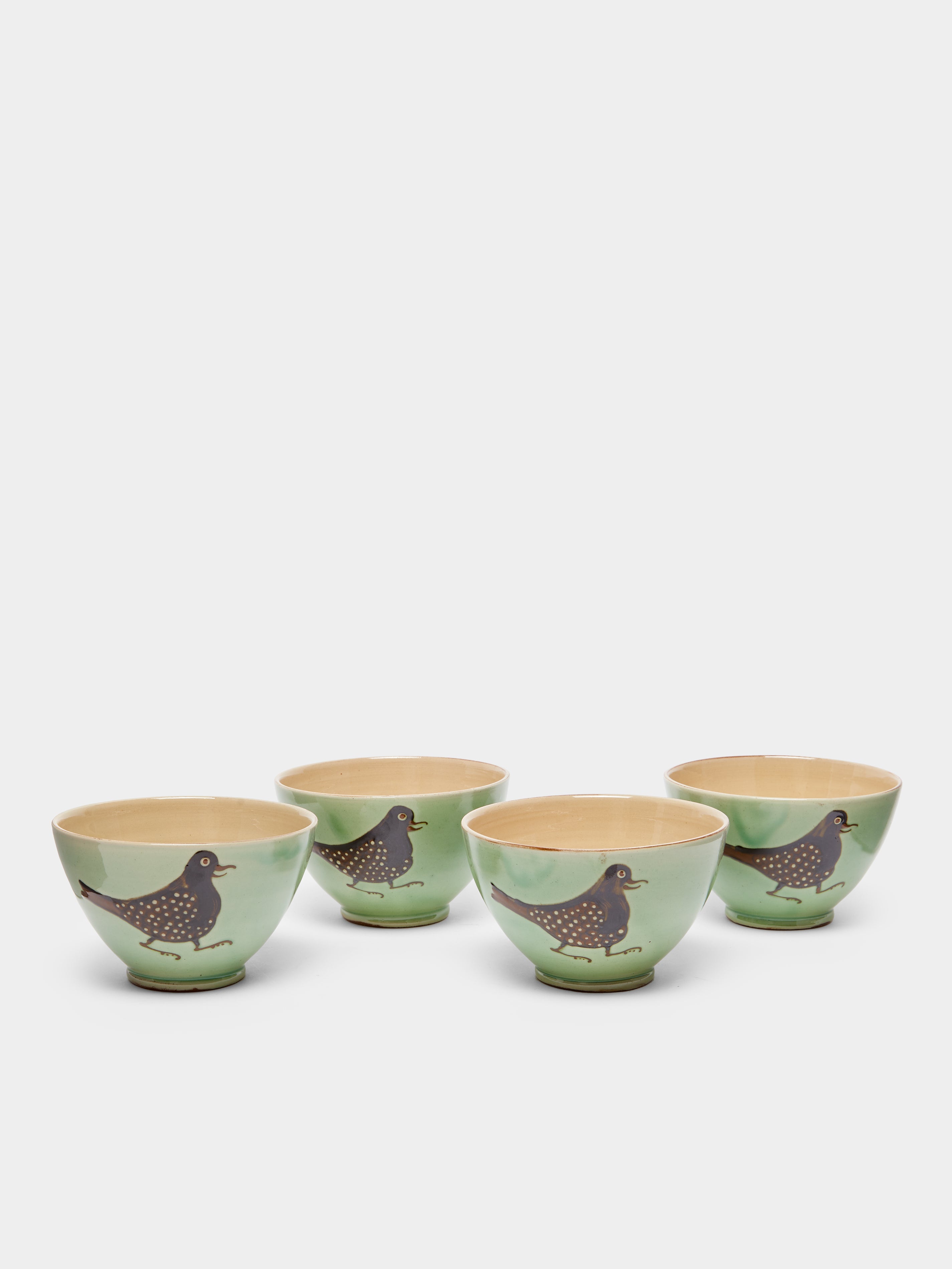 Poterie d’Évires Birds Hand-Painted Ceramic Cereal Bowls (Set of 4)