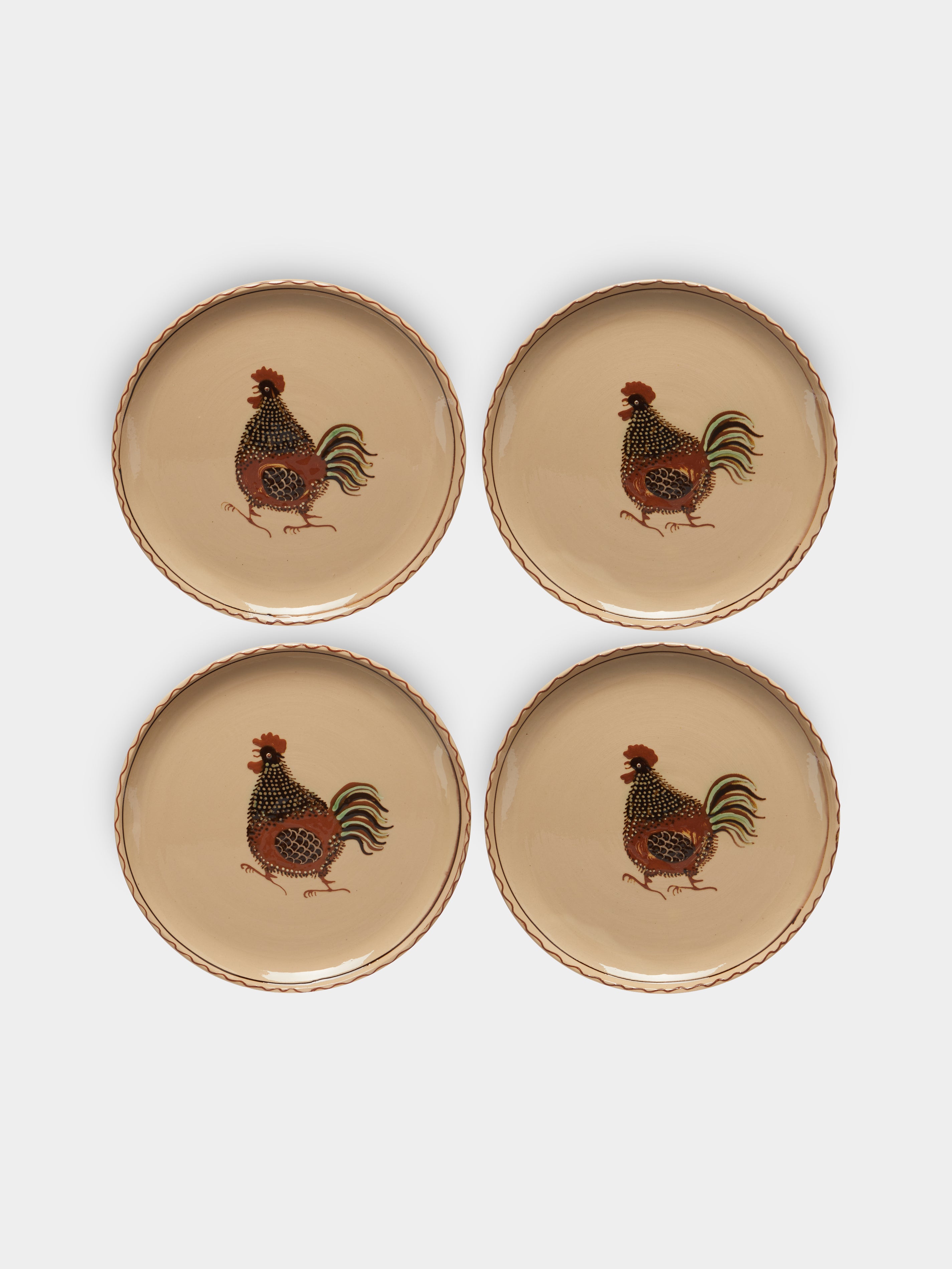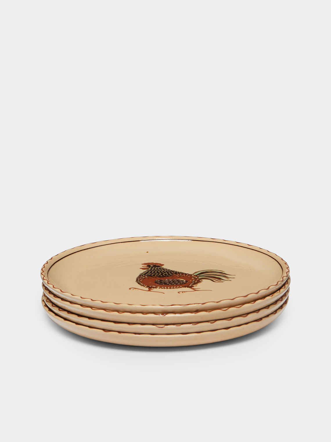 Poterie d’Évires Chickens Hand-Painted Ceramic Dinner Plates – 9.5in/24cm (Set of 4)