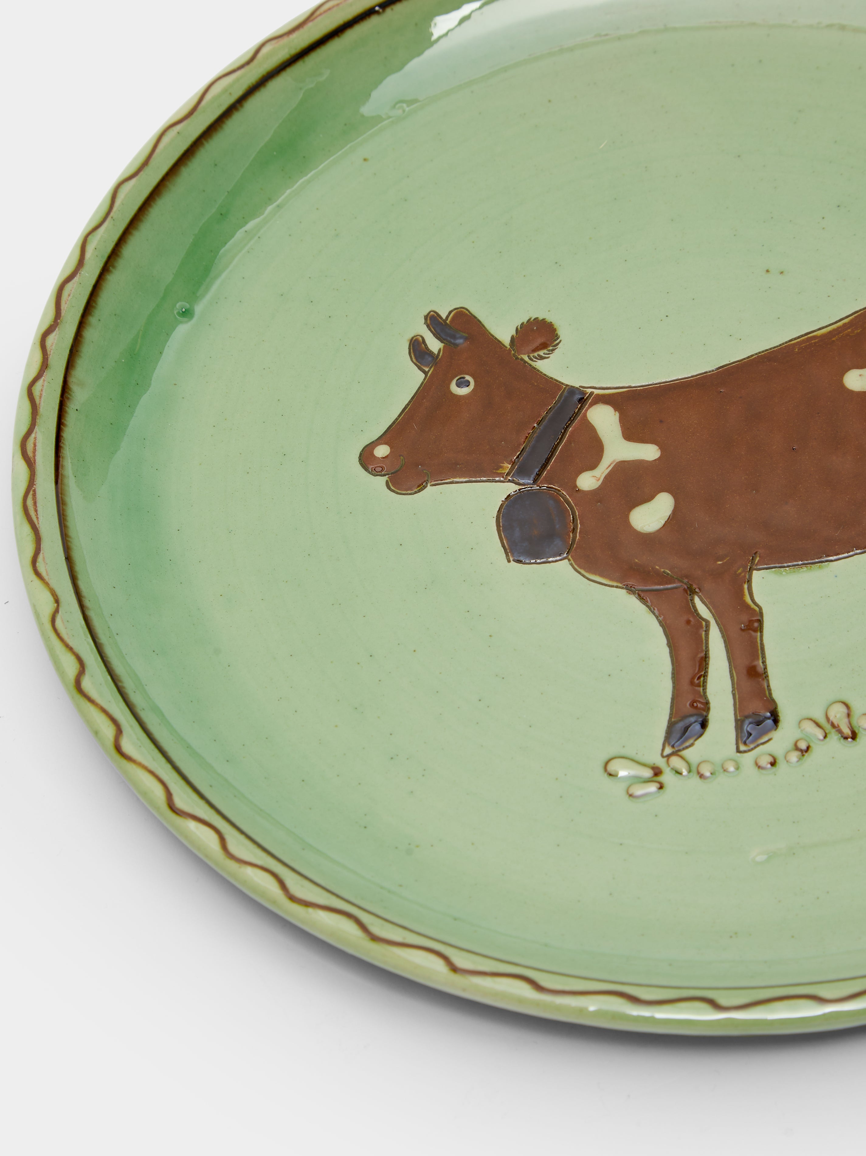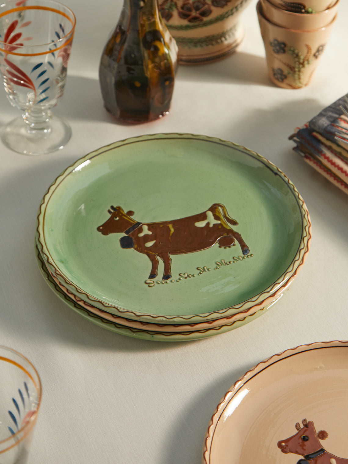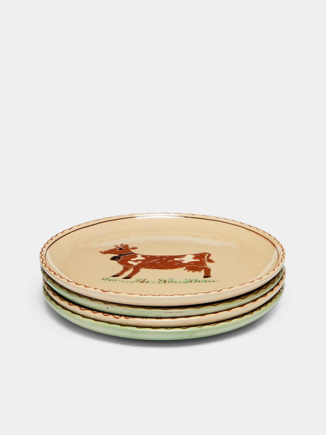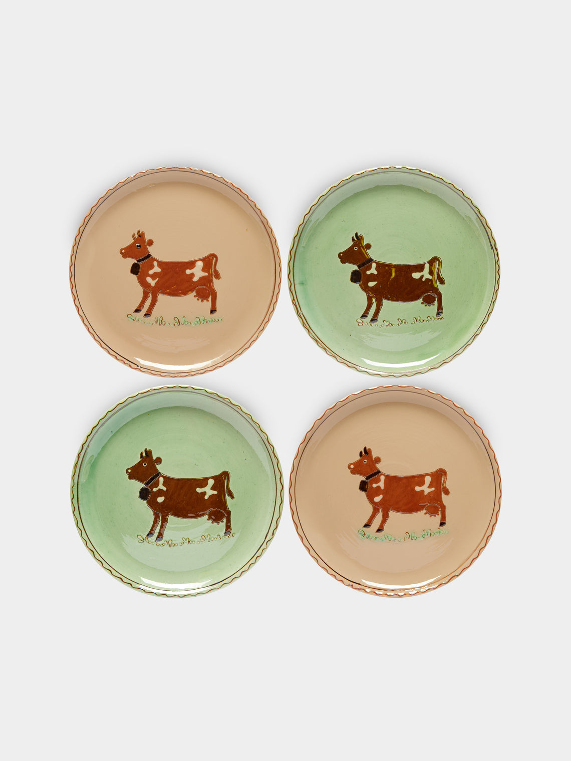 Poterie d’Évires Cows Hand-Painted Ceramic Dinner Plates – 9.5in/24cm (Set of 4)