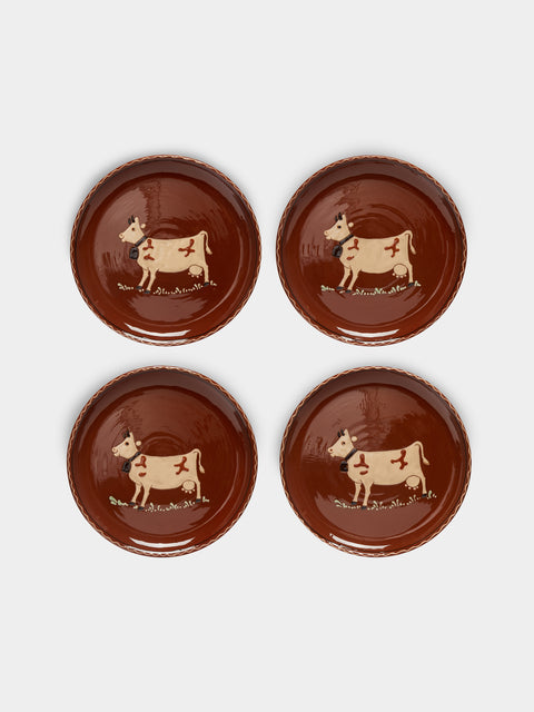 Poterie d’Évires Cows Hand-Painted Ceramic Dinner Plates – 9.5in/24cm (Set of 4)