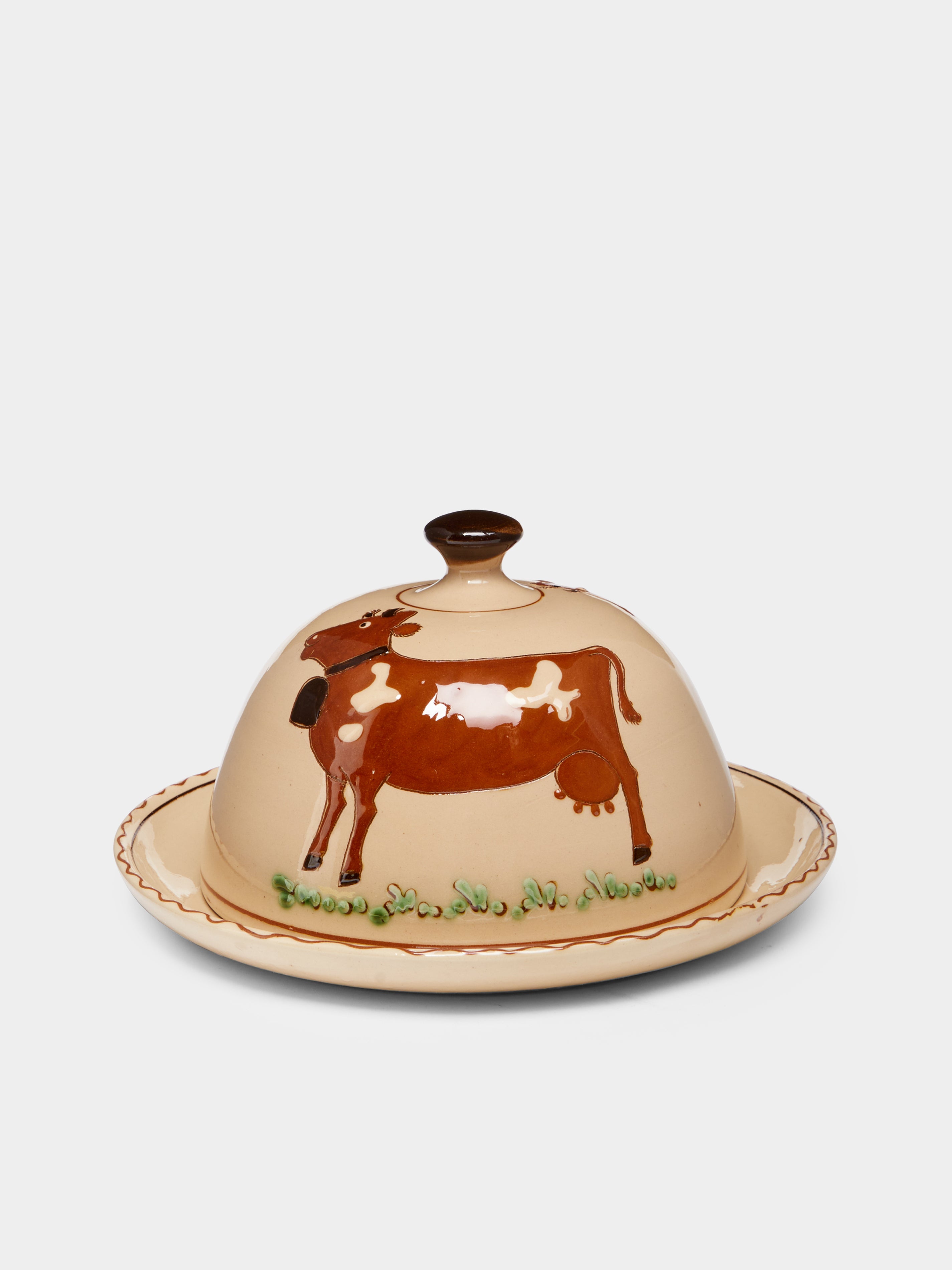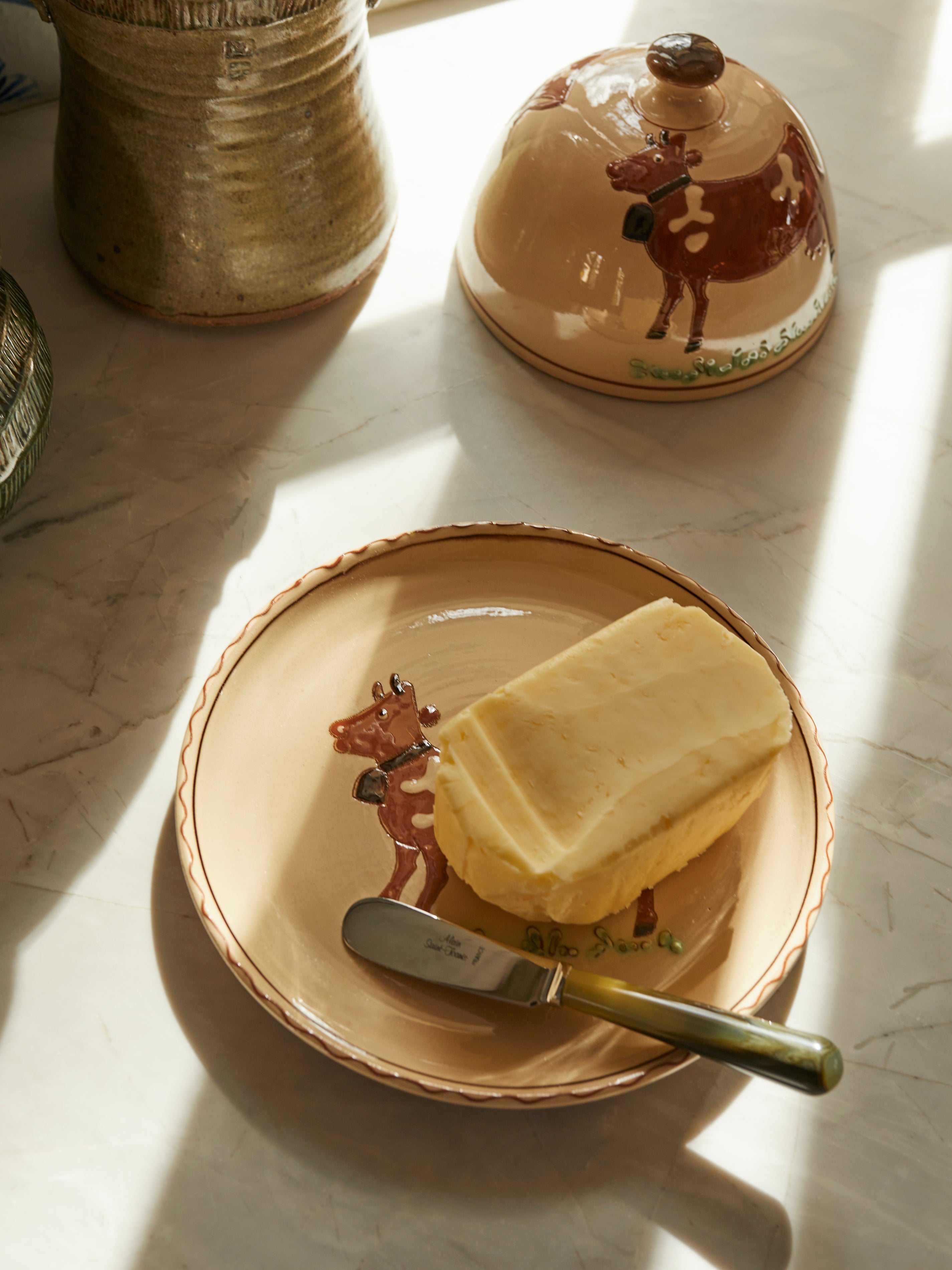 Poterie d’Évires Cows Hand-Painted Ceramic Large Butter Dish