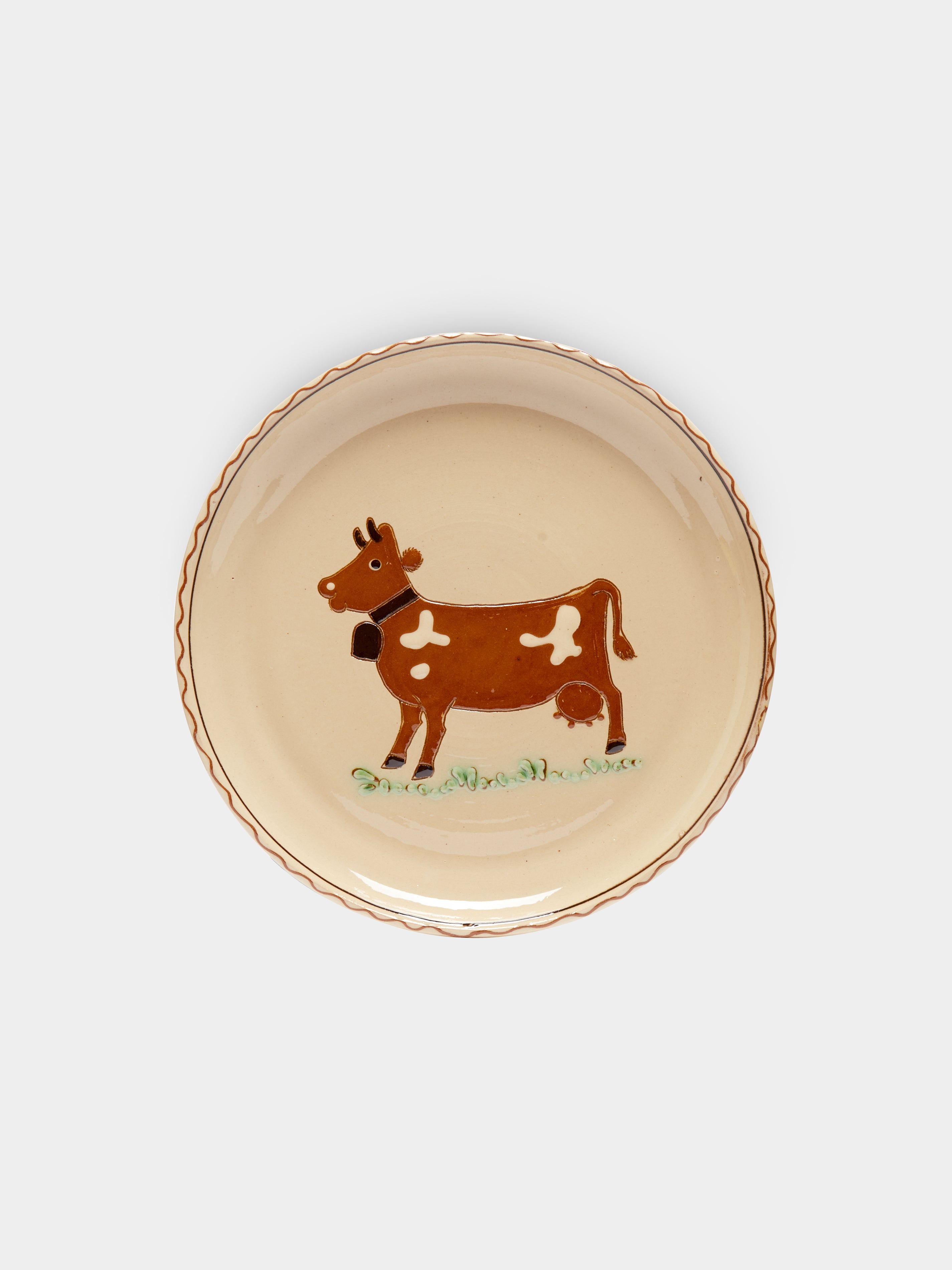 Jean-Christophe Hermann grew up near Lake Annecy in France, and recalls visiting an old pottery at just five years old that inspired him to pursue ceramics – a moment that led to the opening of Poterie d’Évires in 1971. Influenced by the landscape of their Haute-Savoie home, the Hermann family – Jean-Christophe and David, the father and son duo – hand-paint local delights onto their light, earthy and decorative clay; alpine flowers like tiny crocuses and soldanellas often feature, as well as native creatures such as Chamois and Ibex. ABASK made a special road-trip to the French Alps to hand-pick a curation from their exquisite collection. In 1981, after exploring his region’s brocante for many years, Jean-Christophe opened a museum dedicated to the pottery and folk art of Savoie. It’s the largest and most comprehensive collection in the world and displays pieces that date as far back as the 12th century.