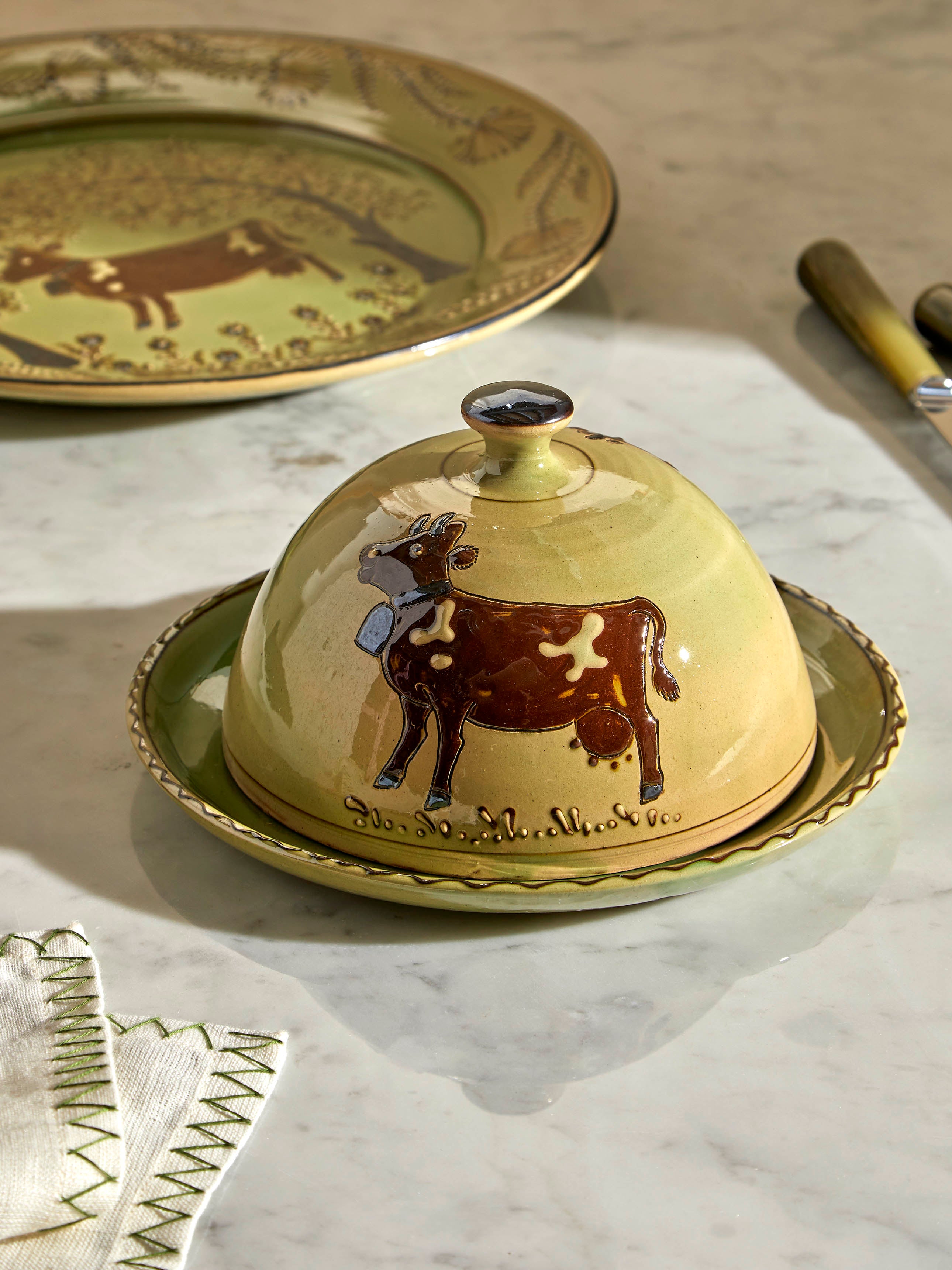 Poterie d’Évires Cows Hand-Painted Ceramic Large Butter Dish