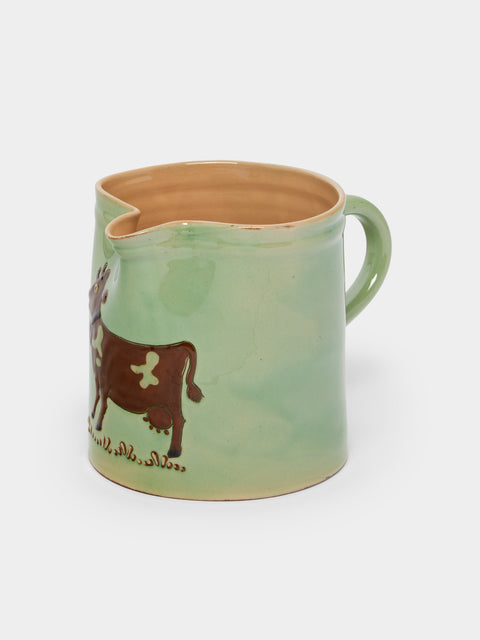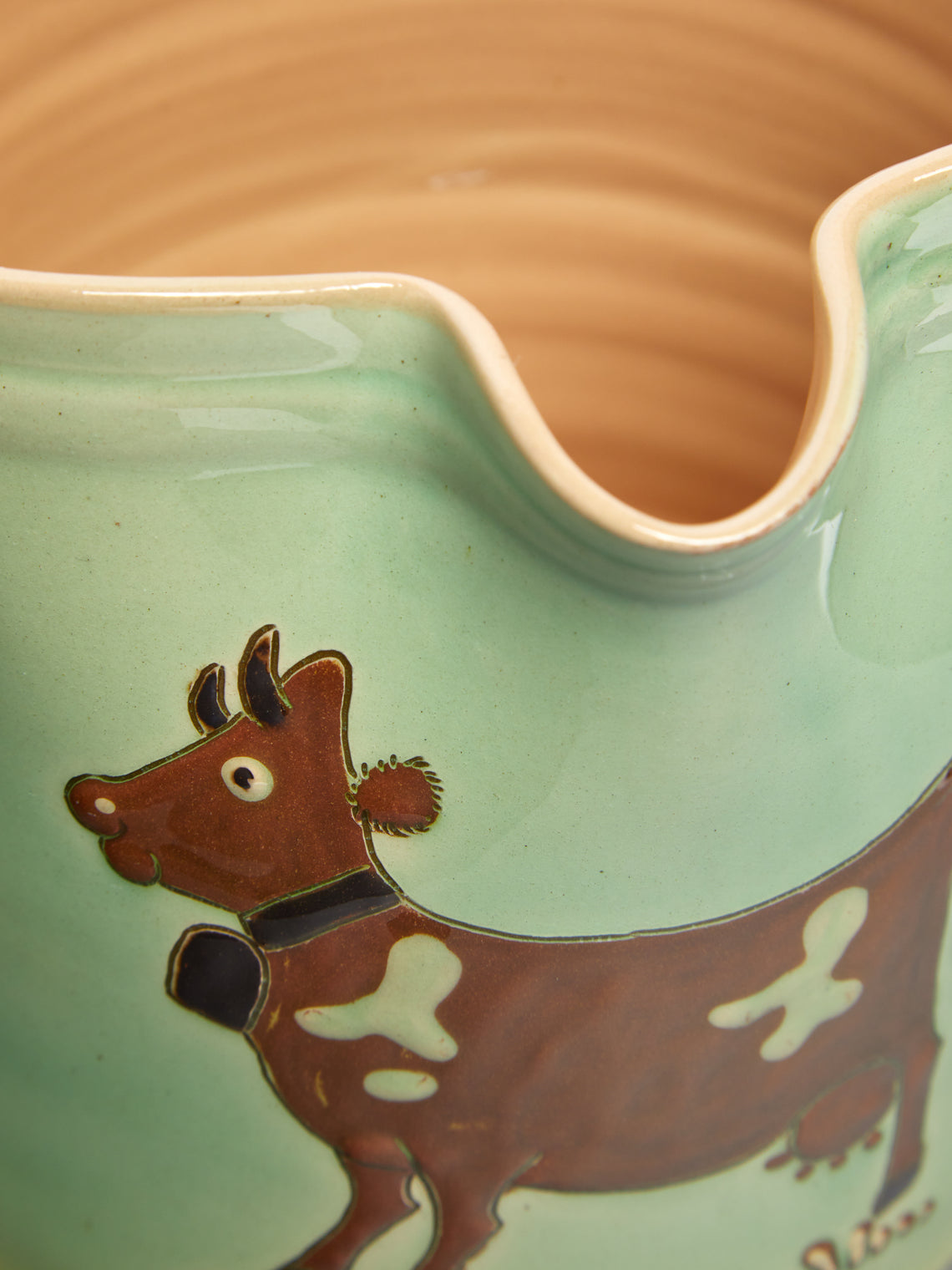 Poterie d’Évires Cows Hand-Painted Ceramic Straight-Edge Jug