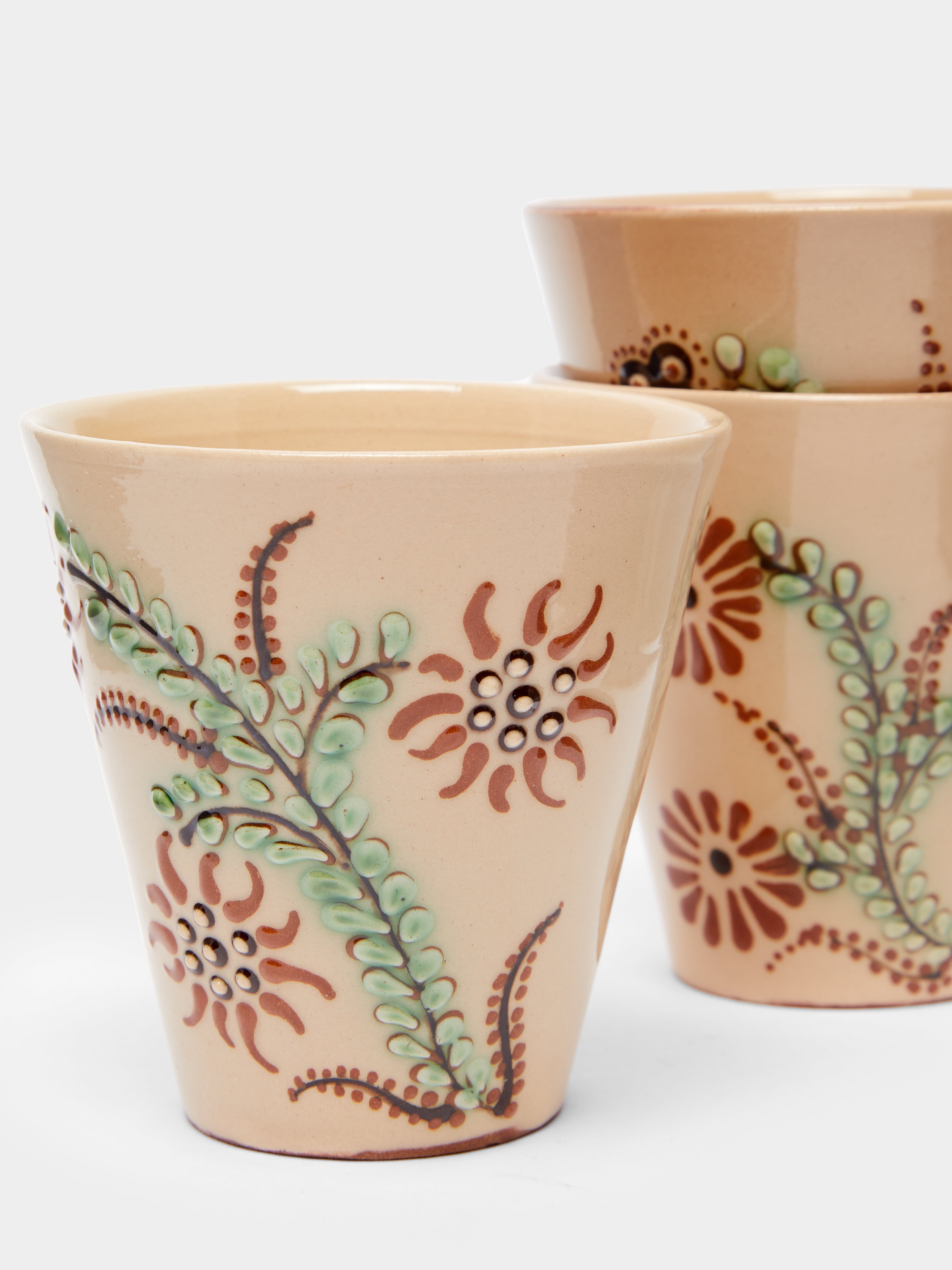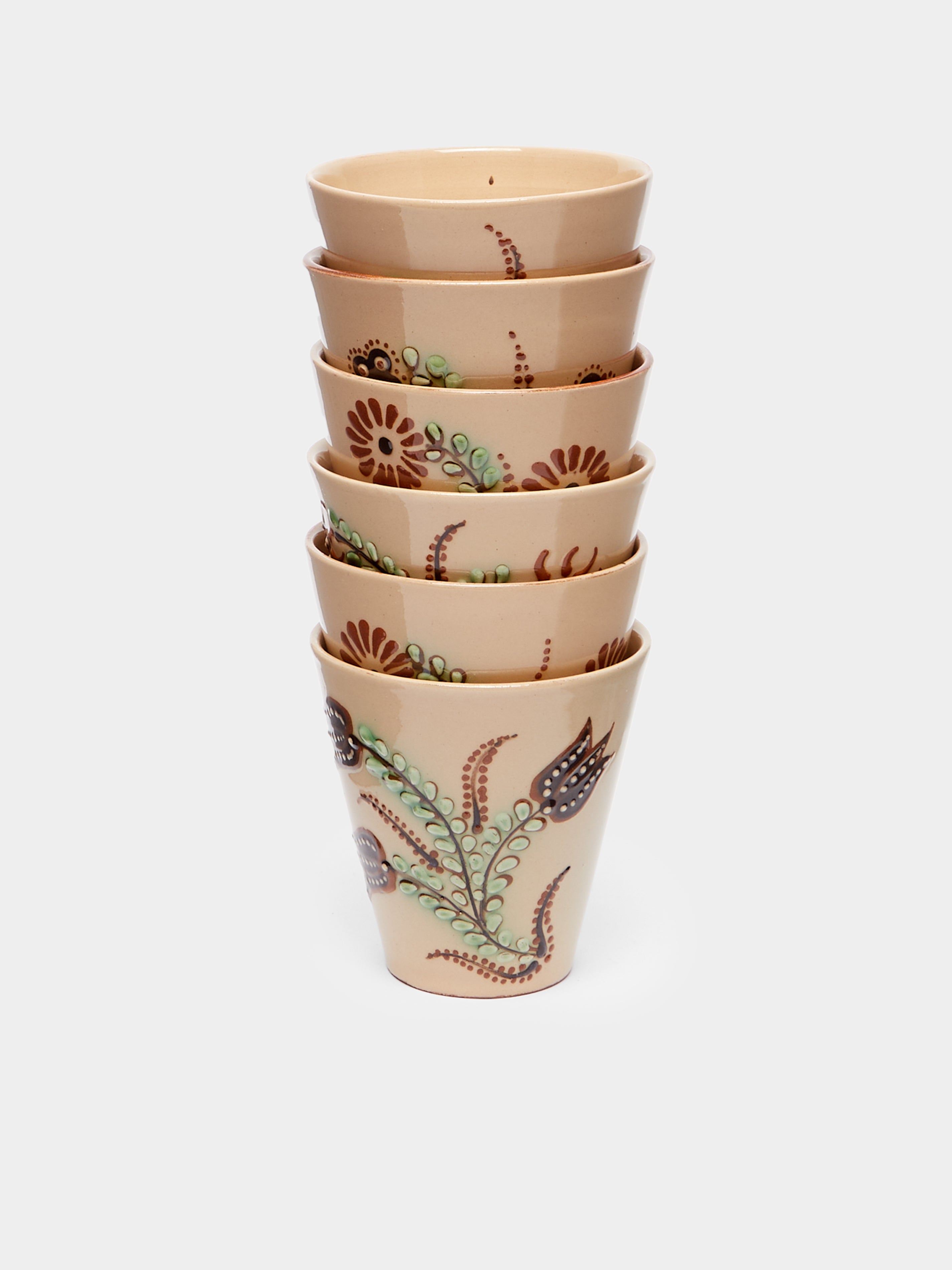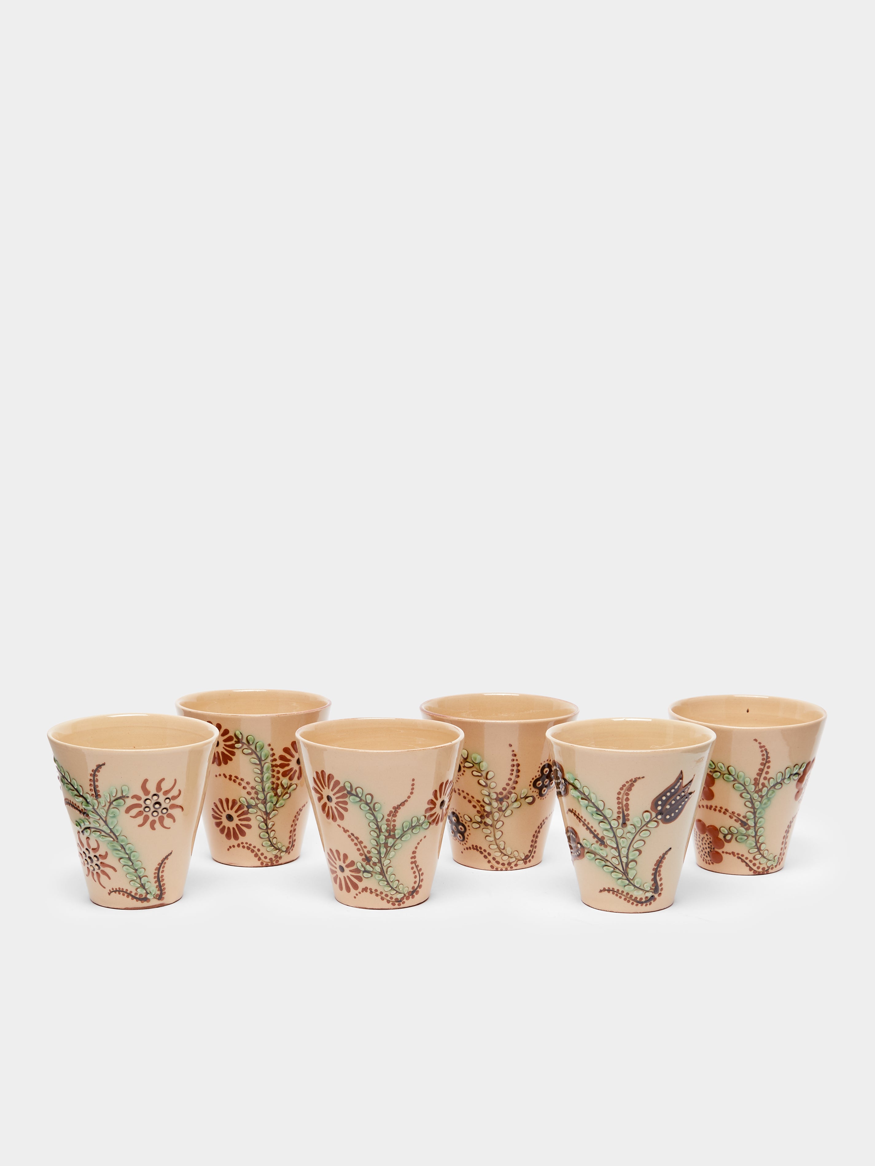 Poterie d’Évires Flowers Hand-Painted Ceramic Coffee Cups (Set of 6)