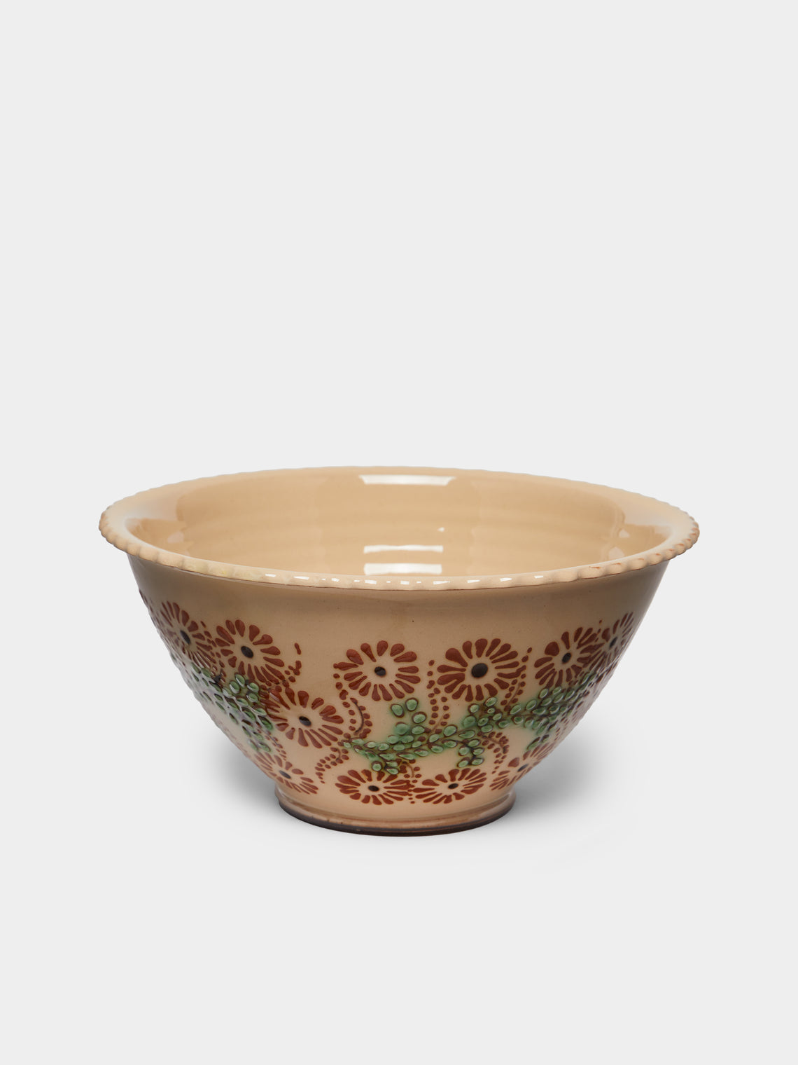Poterie d’Évires Flowers Hand-Painted Ceramic Fluted Bowl