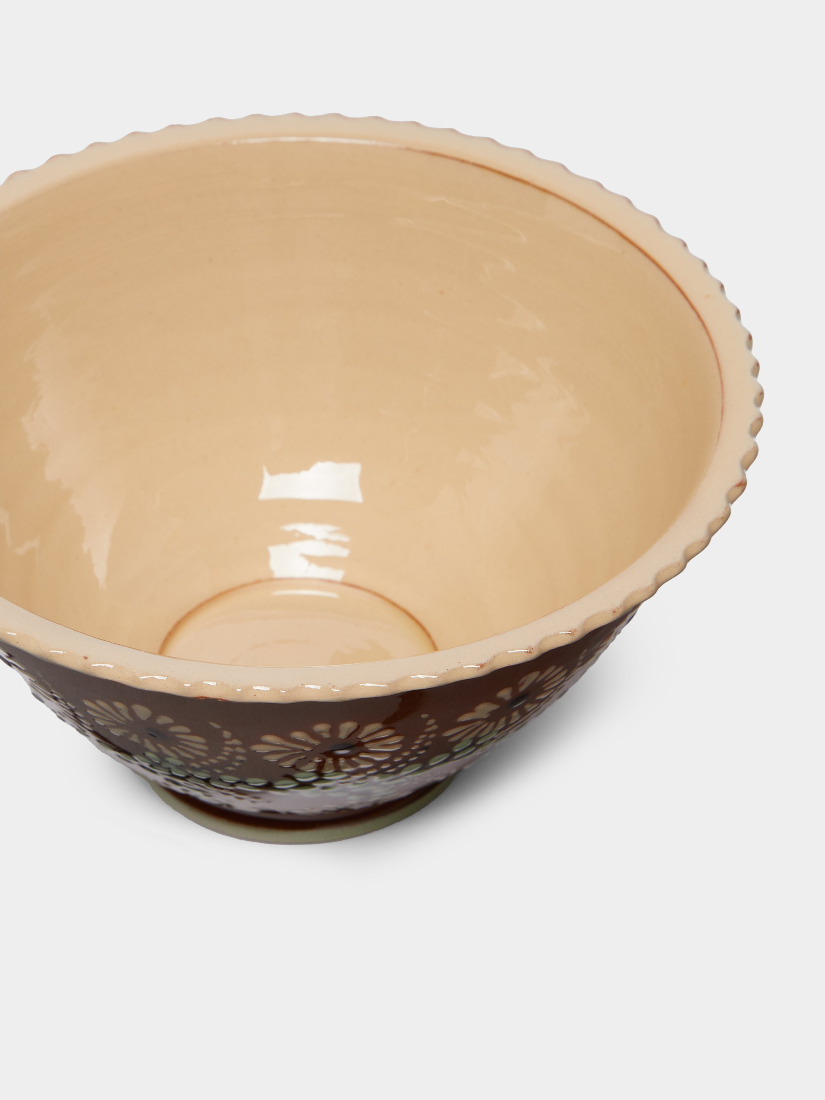 Poterie d’Évires Flowers Hand-Painted Ceramic Fluted Bowl