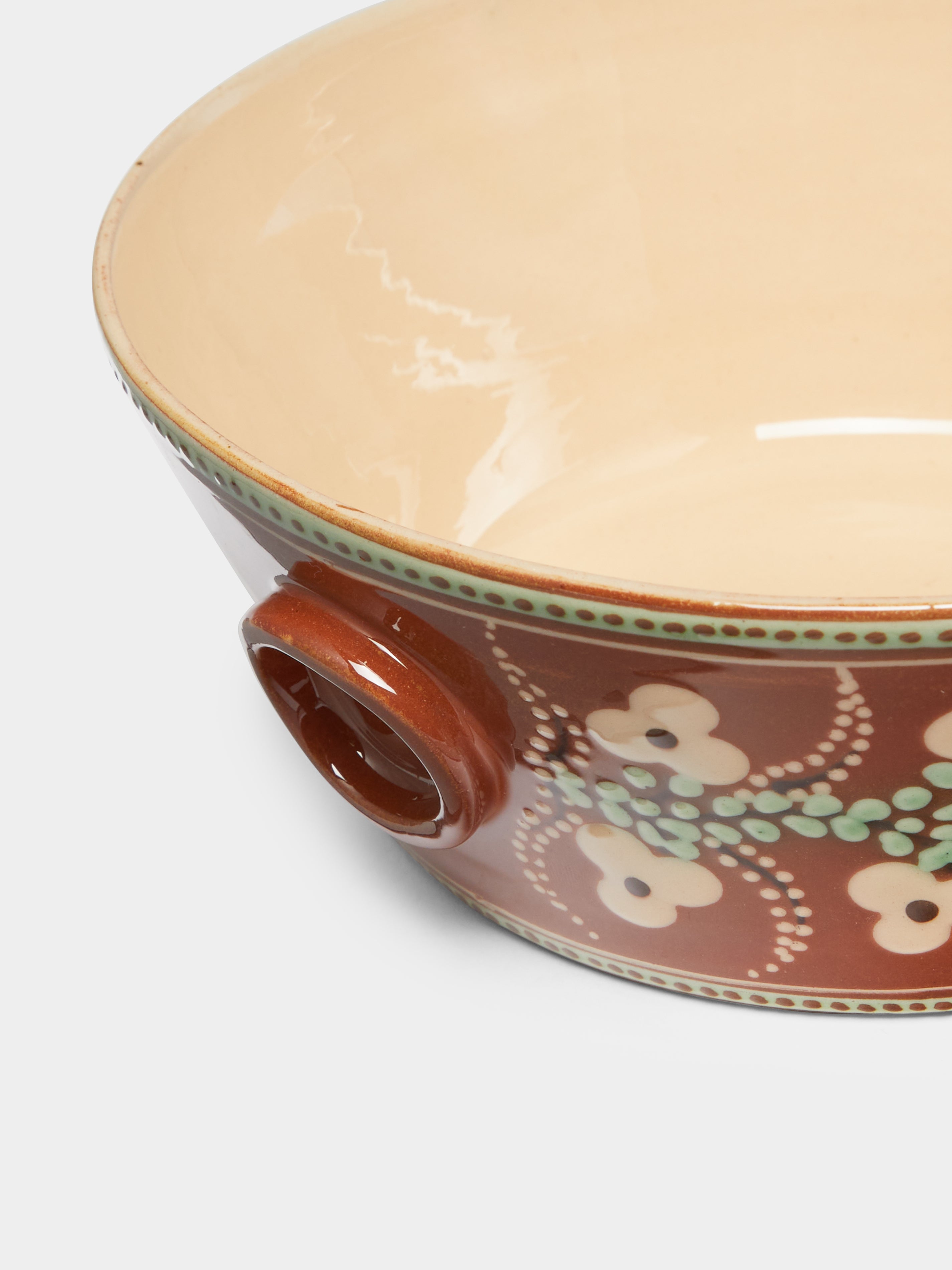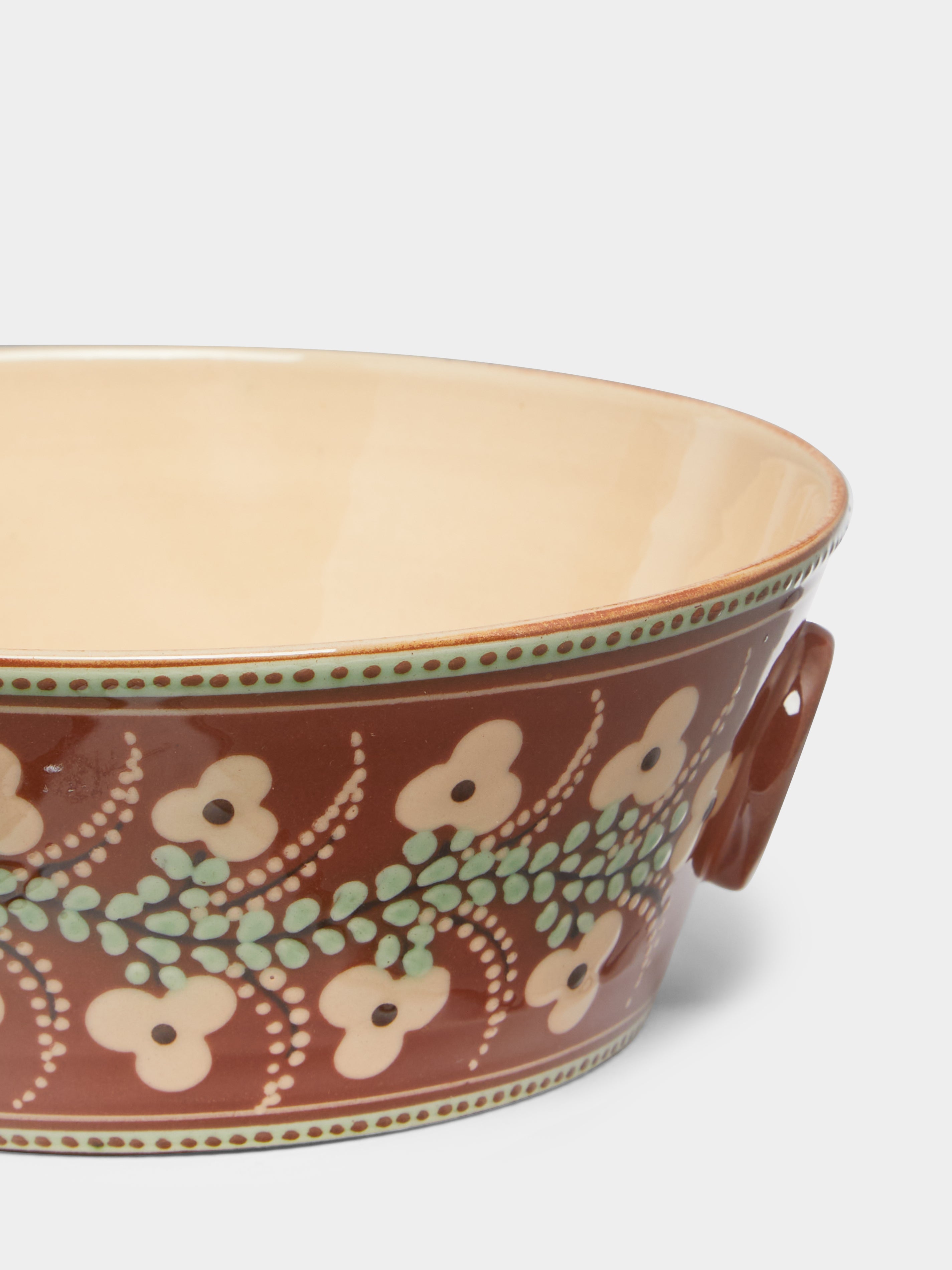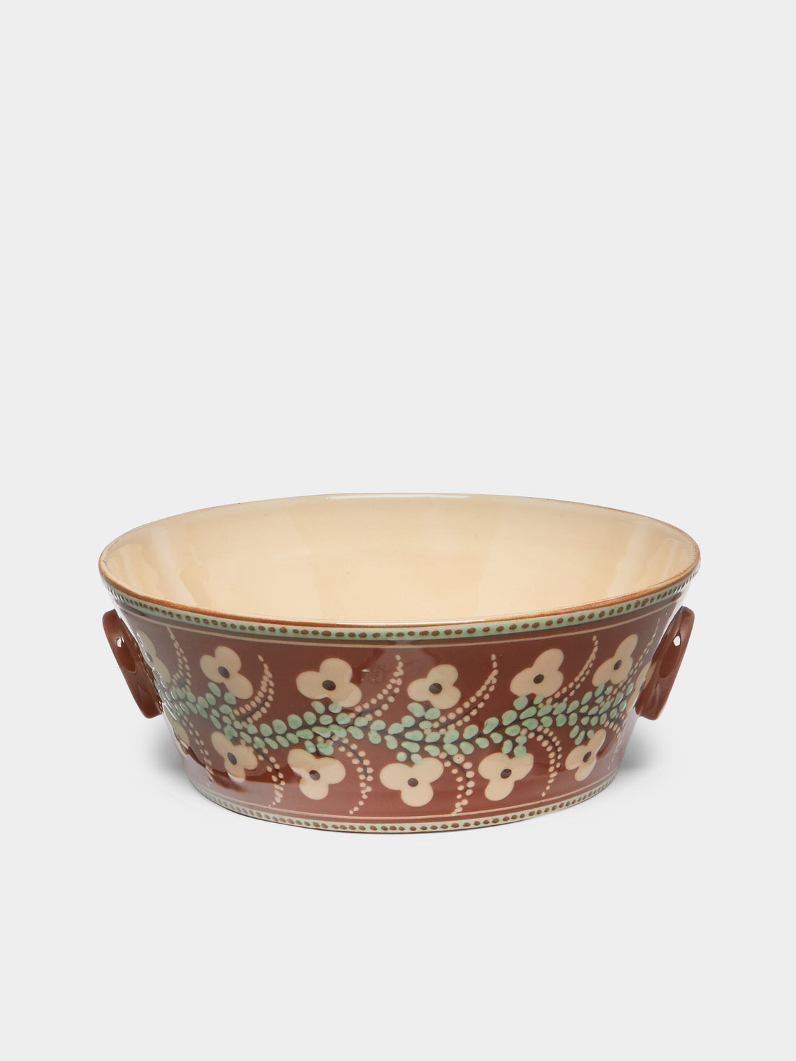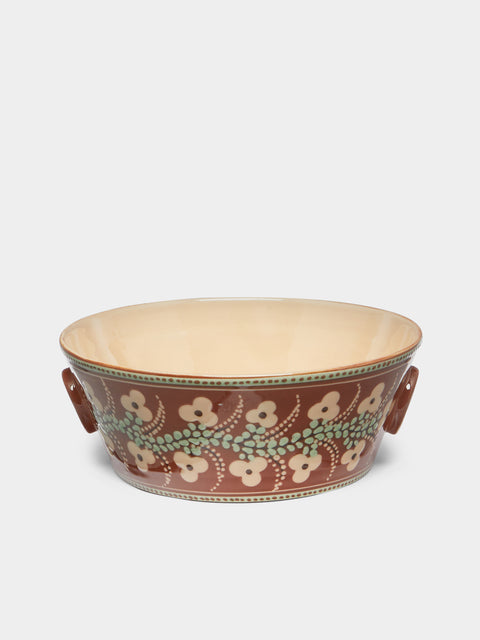 Poterie d’Évires Flowers Hand-Painted Ceramic Handled Serving Bowl