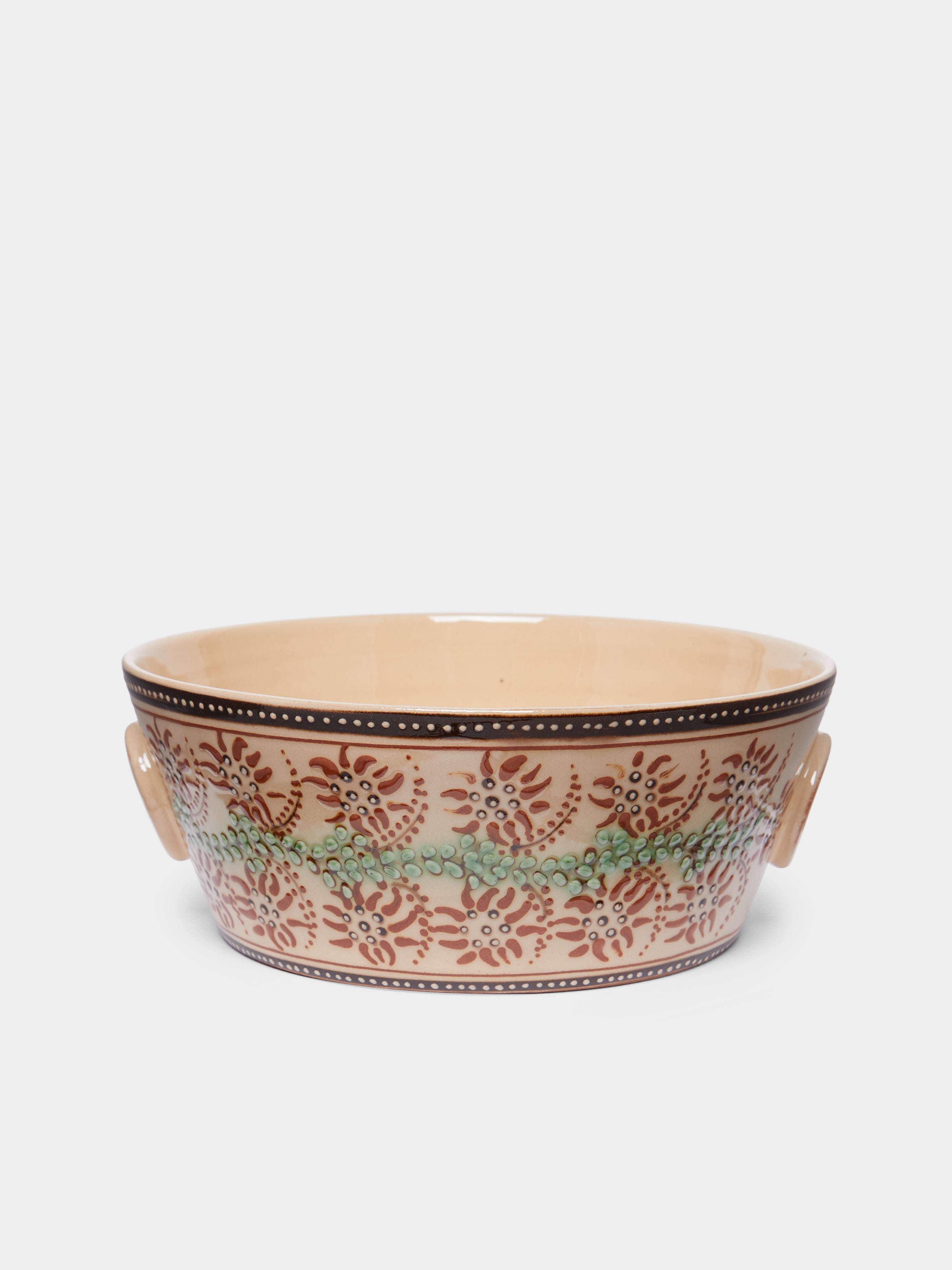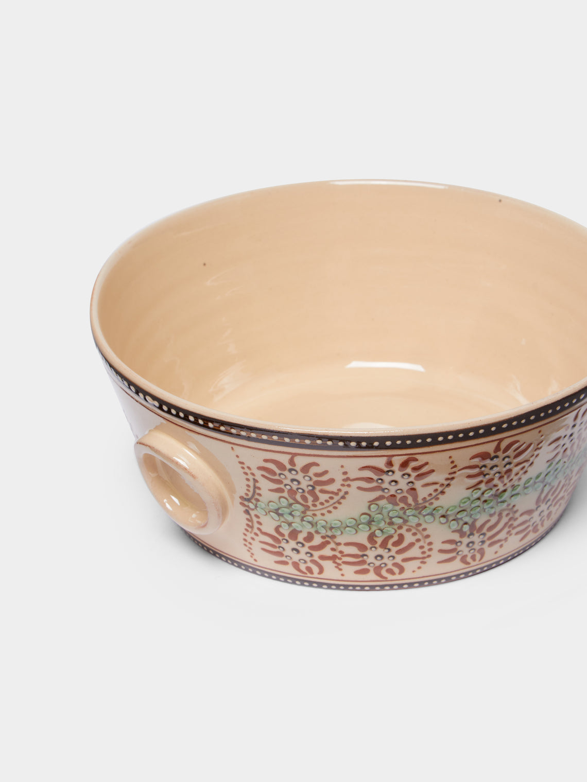 Poterie d’Évires Flowers Hand-Painted Ceramic Handled Serving Bowl