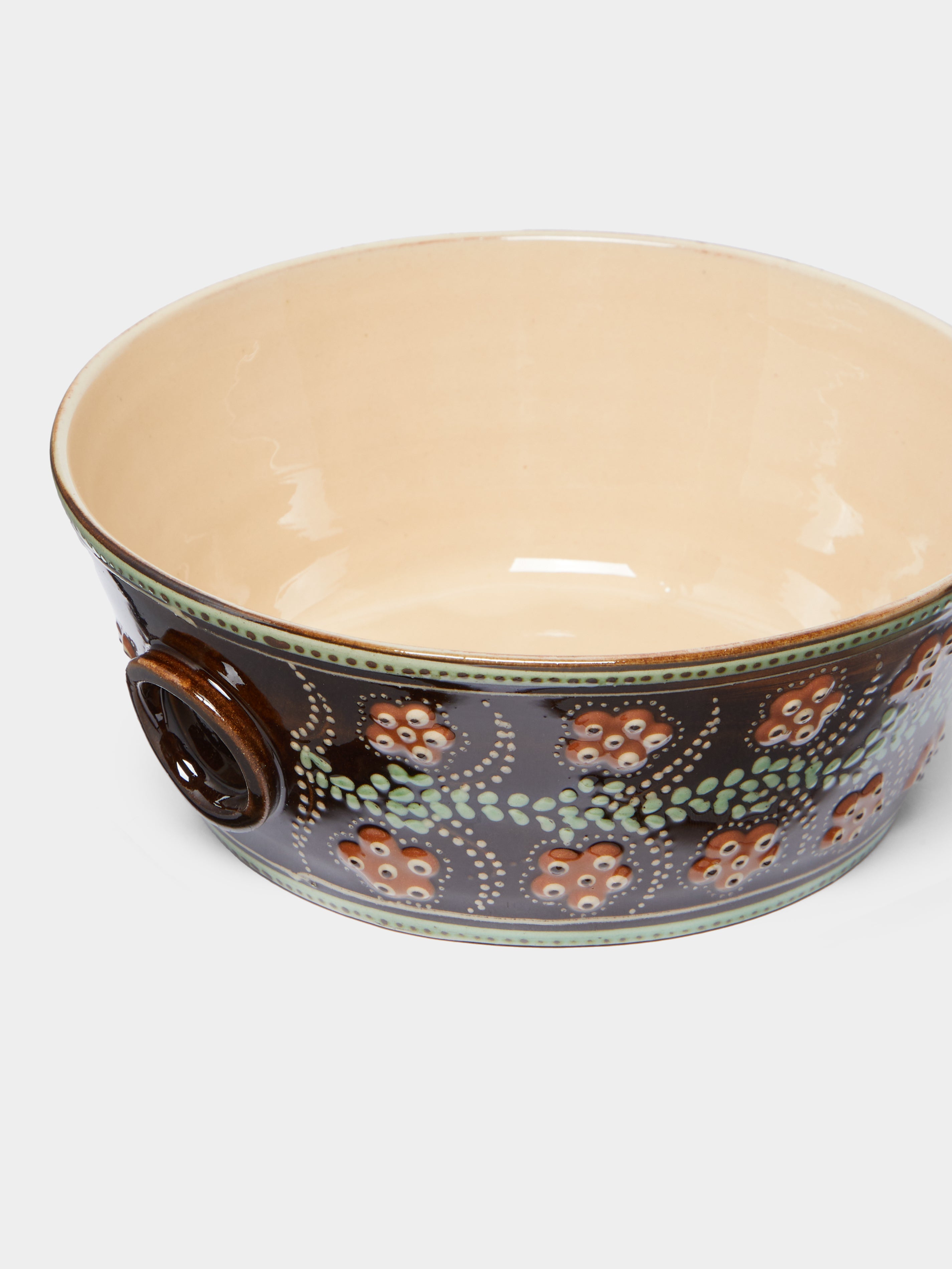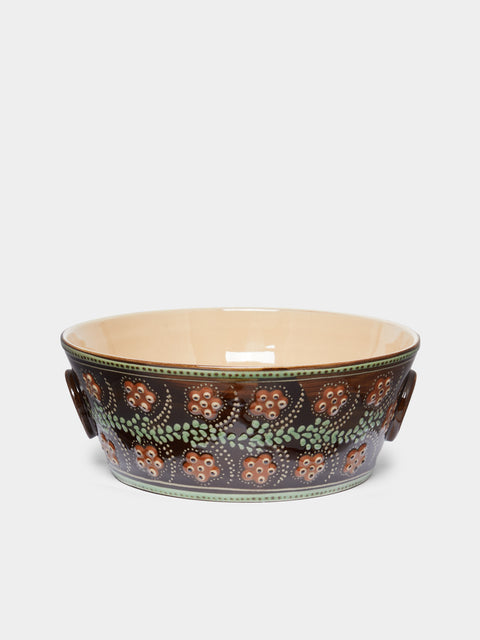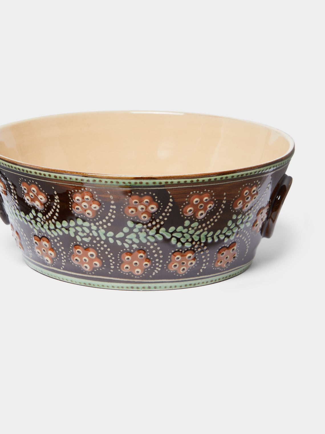 Poterie d’Évires Flowers Hand-Painted Ceramic Handled Serving Bowl