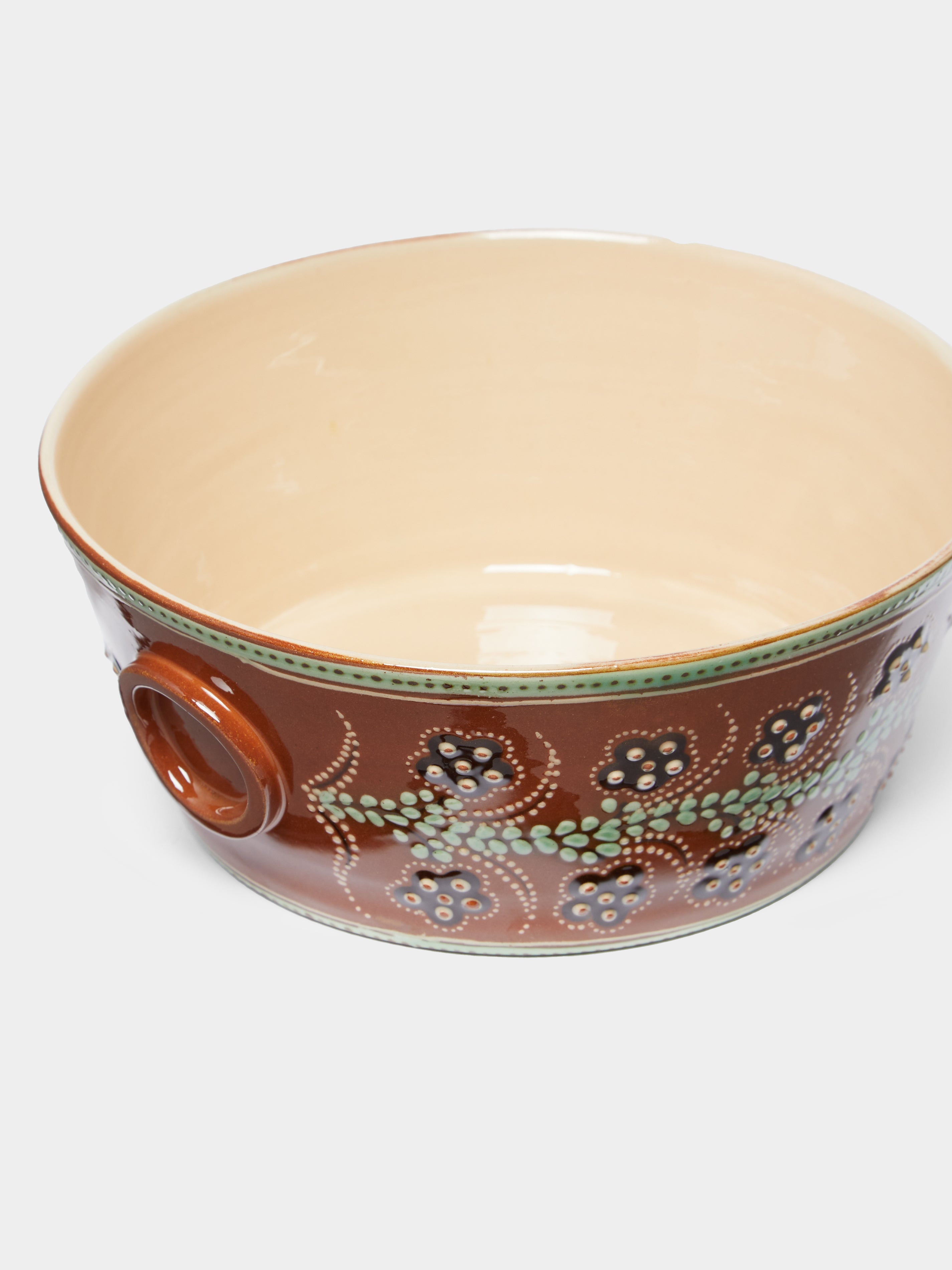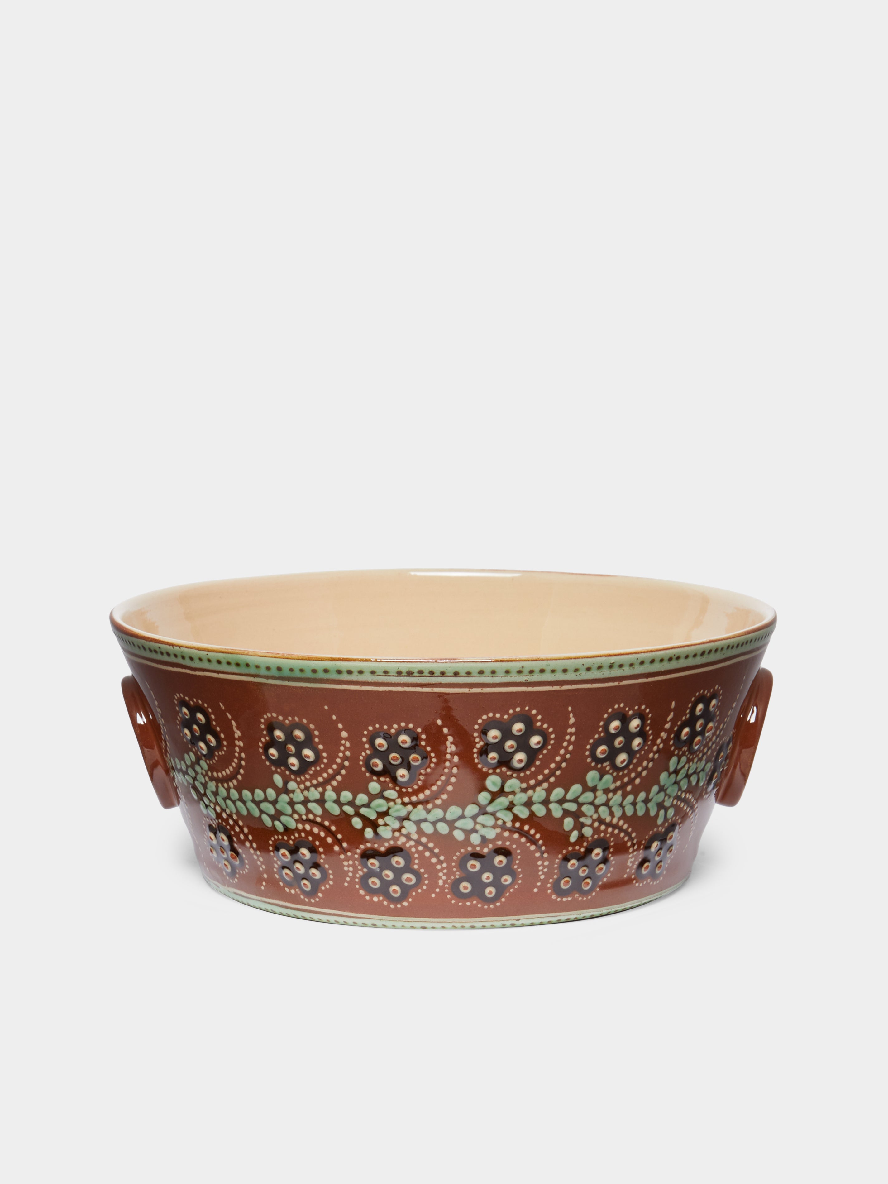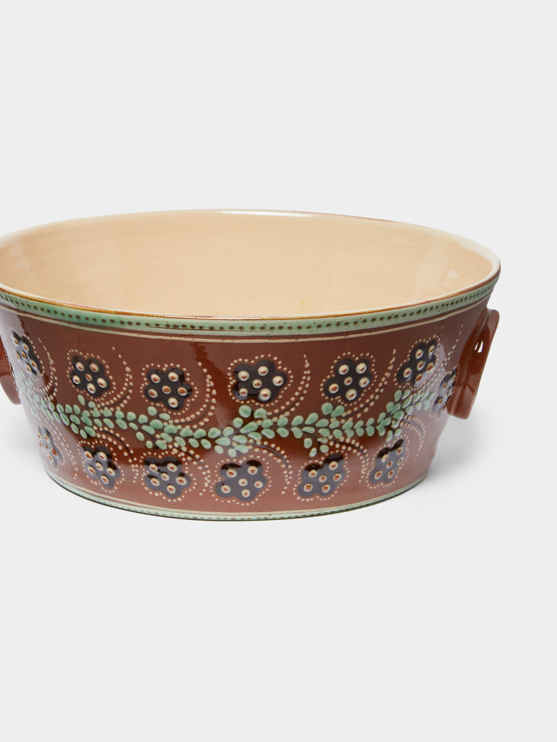 Poterie d’Évires Flowers Hand-Painted Ceramic Handled Serving Bowl