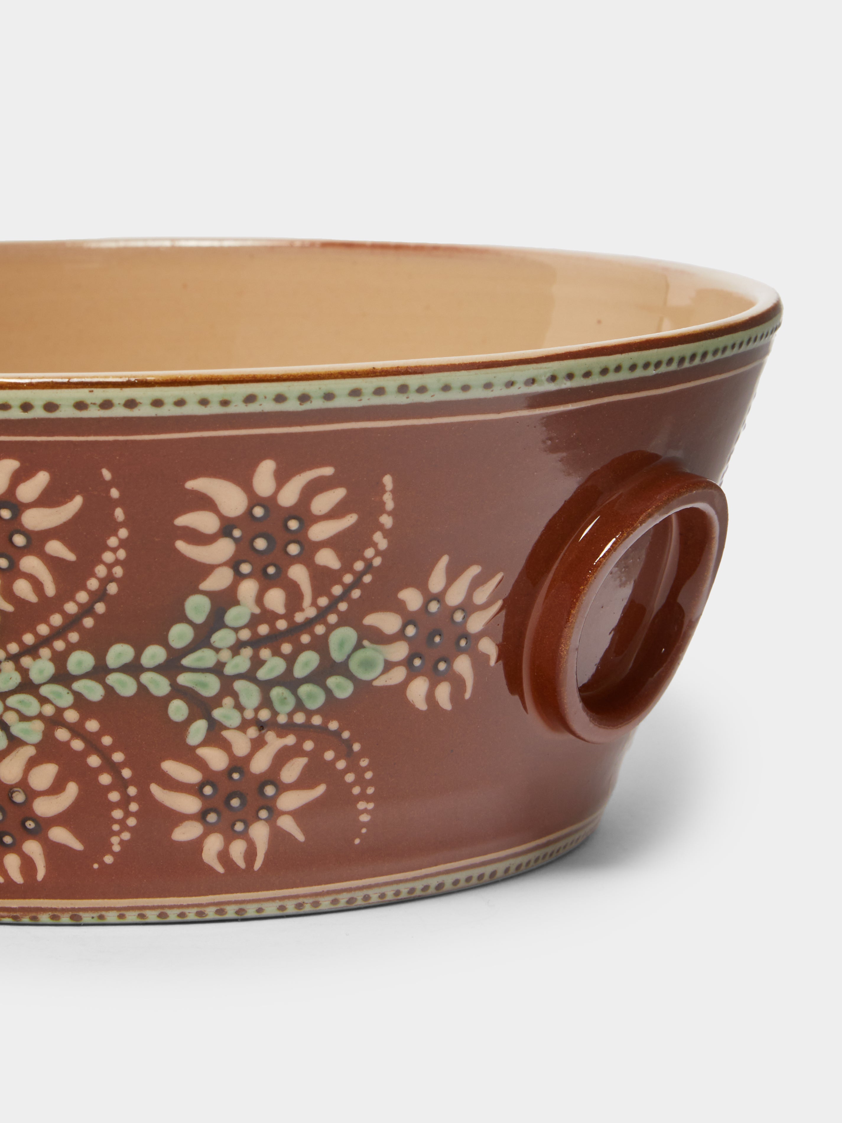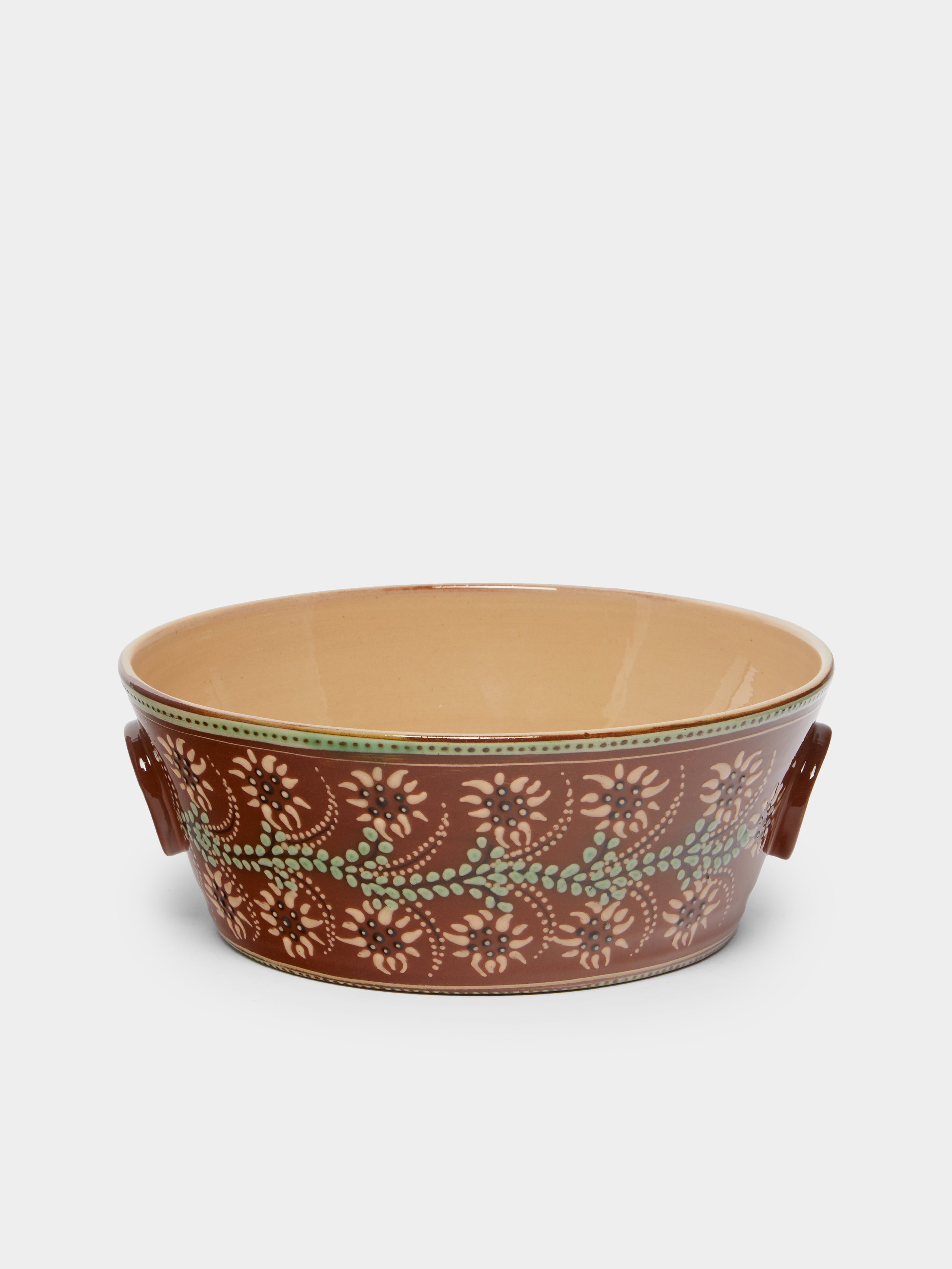 Poterie d’Évires Flowers Hand-Painted Ceramic Large Handled Serving Bowl