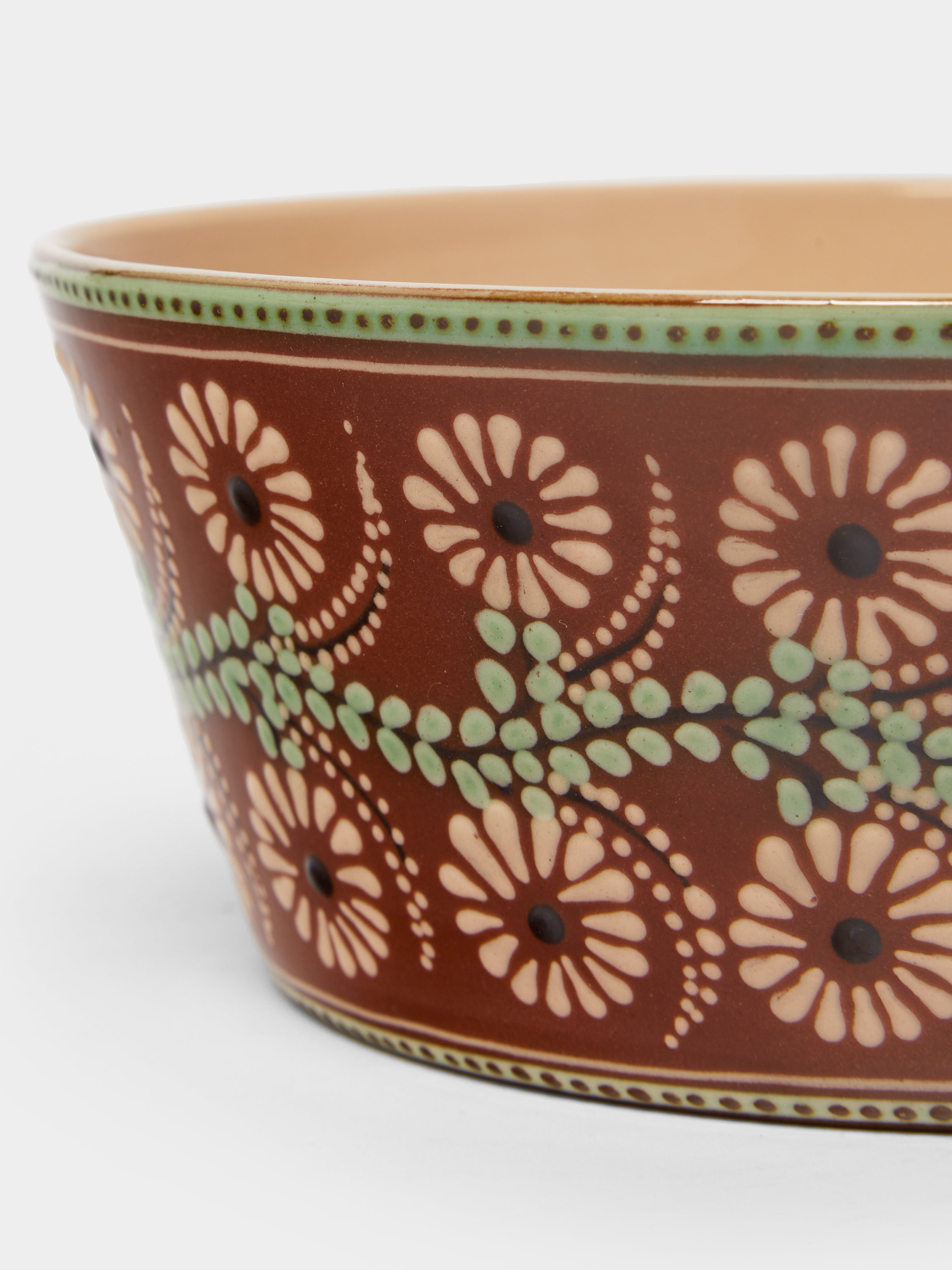 Poterie d’Évires Flowers Hand-Painted Ceramic Large Handled Serving Bowl