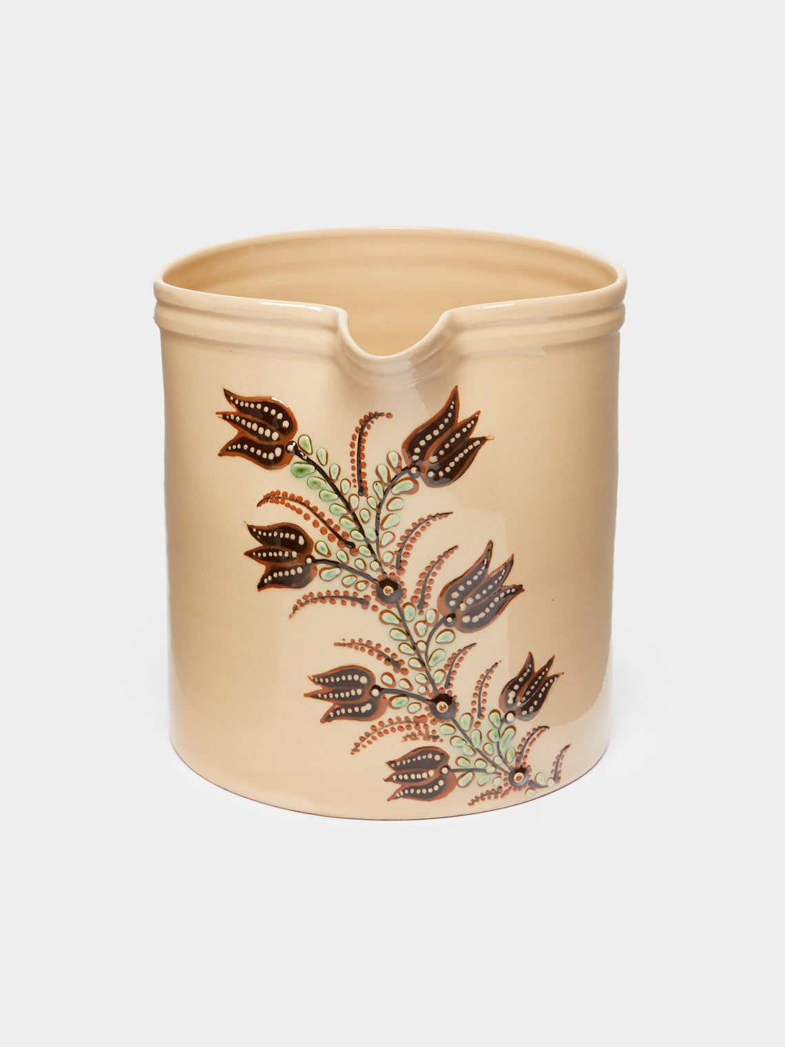 Poterie d’Évires Flowers Hand-Painted Ceramic Large Straight-Edge Jug