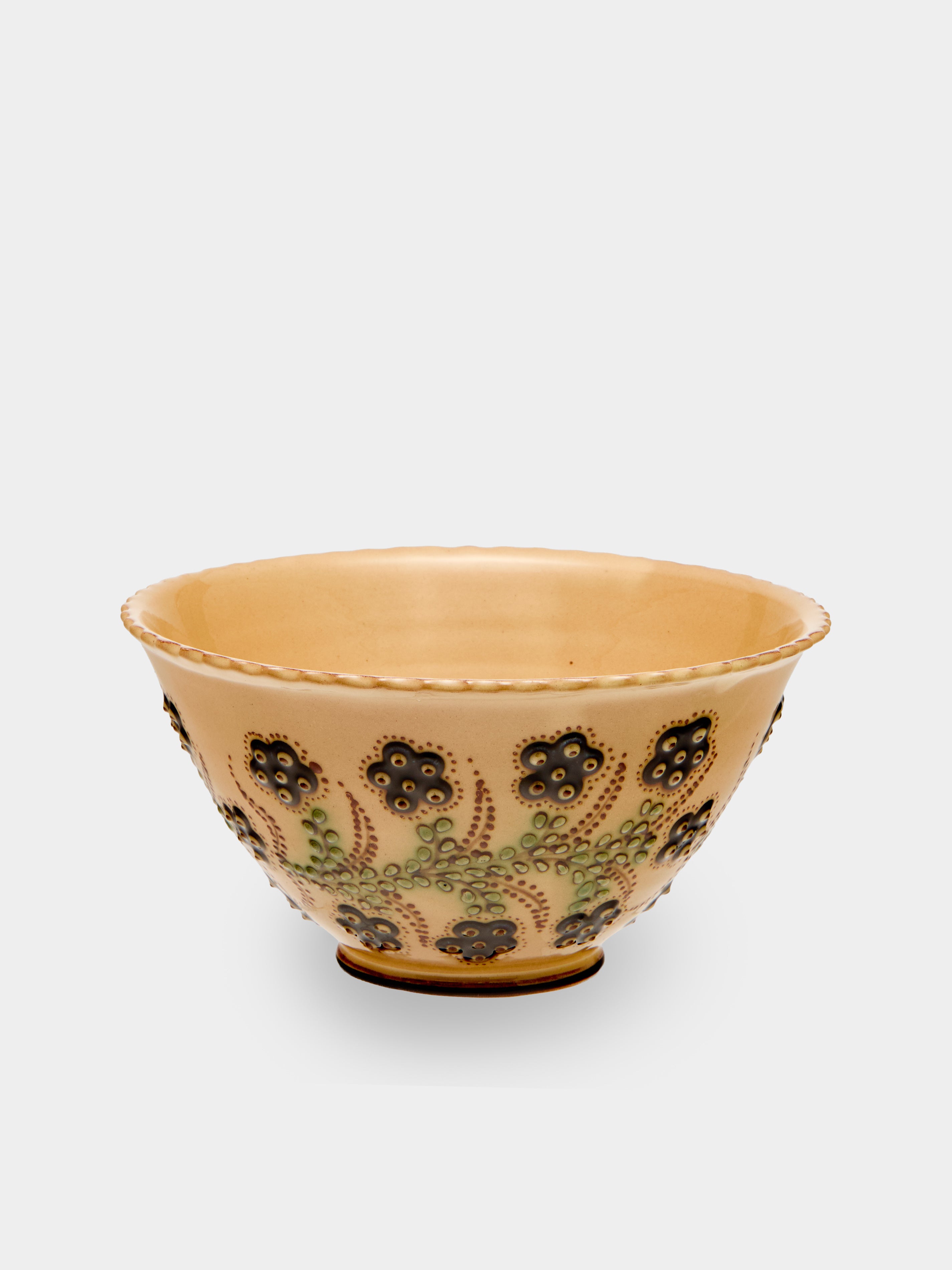 Jean-Christophe Hermann grew up near Lake Annecy in France, and recalls visiting an old pottery at just five years old that inspired him to pursue ceramics – a moment that led to the opening of Poterie d’Évires in 1971. Influenced by the landscape of their Haute-Savoie home, the Hermann family – Jean-Christophe and David, the father and son duo – hand-paint local delights onto their light, earthy and decorative clay; alpine flowers like tiny crocuses and soldanellas often feature, as well as native creatures such as Chamois and Ibex. ABASK made a special road-trip to the French Alps to hand-pick a curation from their exquisite collection. In 1981, after exploring his region’s brocante for many years, Jean-Christophe opened a museum dedicated to the pottery and folk art of Savoie. It’s the largest and most comprehensive collection in the world and displays pieces that date as far back as the 12th century.