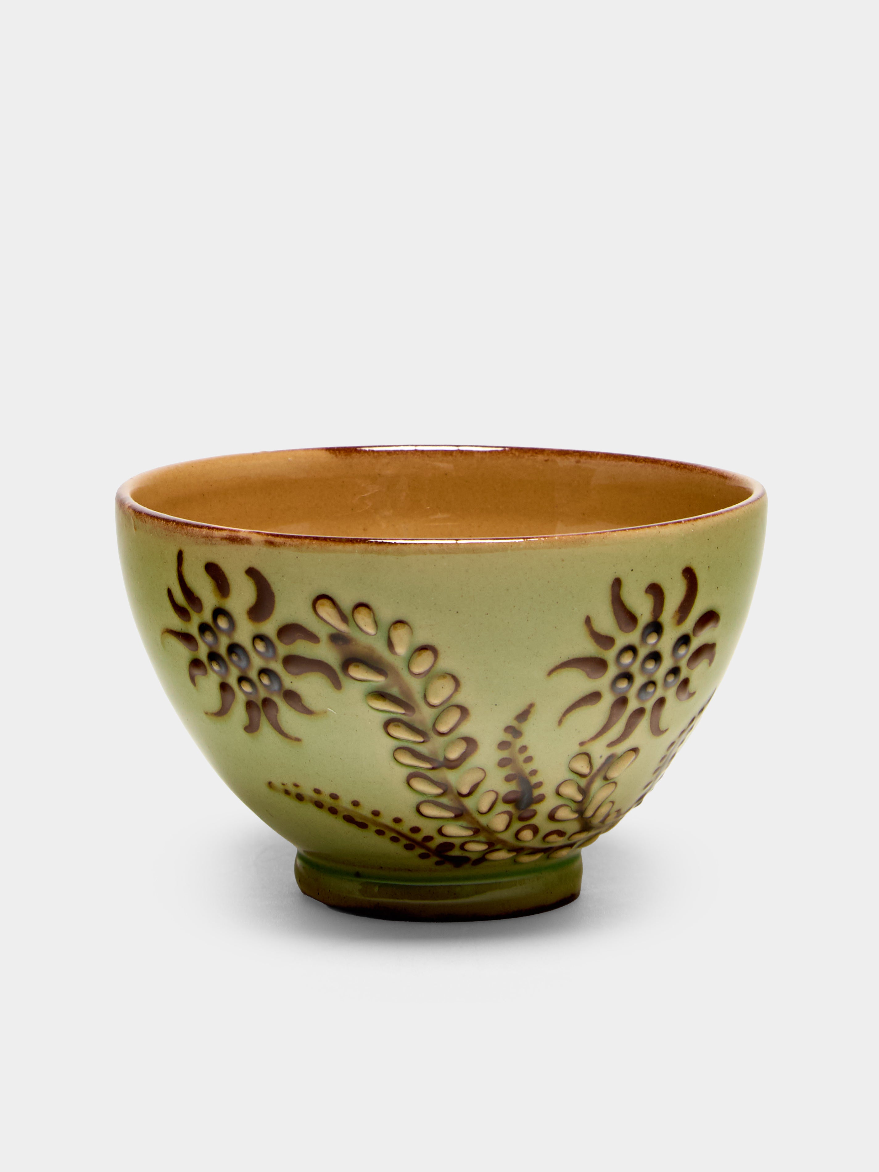 Jean-Christophe Hermann grew up near Lake Annecy in France, and recalls visiting an old pottery at just five years old that inspired him to pursue ceramics – a moment that led to the opening of Poterie d’Évires in 1971. Influenced by the landscape of their Haute-Savoie home, the Hermann family – Jean-Christophe and David, the father and son duo – hand-paint local delights onto their light, earthy and decorative clay; alpine flowers like tiny crocuses and soldanellas often feature, as well as native creatures such as Chamois and Ibex. ABASK made a special road-trip to the French Alps to hand-pick a curation from their exquisite collection. In 1981, after exploring his region’s brocante for many years, Jean-Christophe opened a museum dedicated to the pottery and folk art of Savoie. It’s the largest and most comprehensive collection in the world and displays pieces that date as far back as the 12th century.