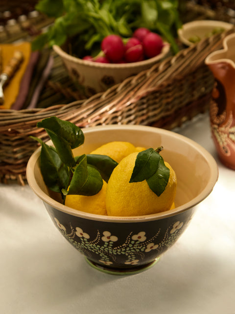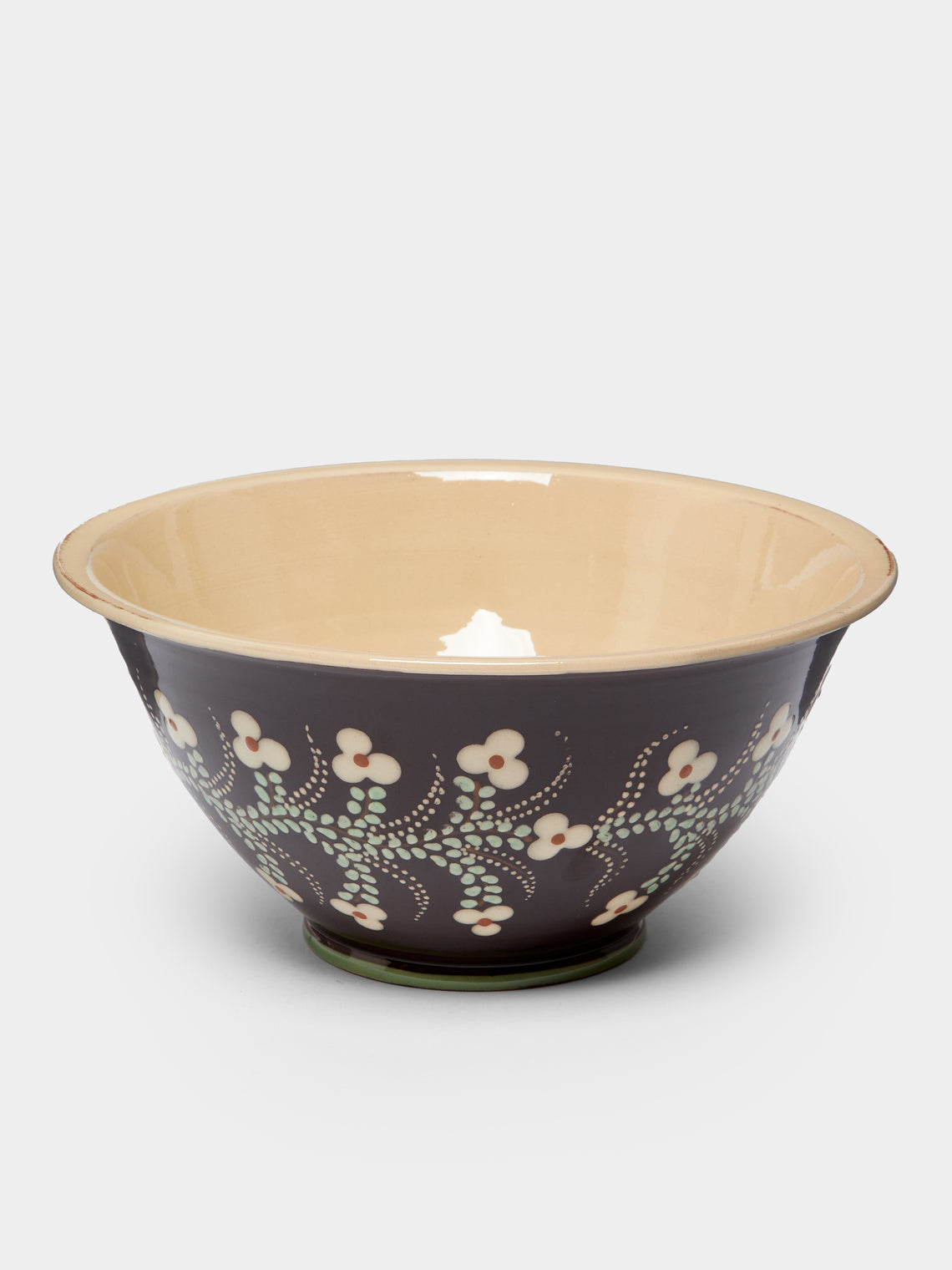 Jean-Christophe Hermann grew up near Lake Annecy in France, and recalls visiting an old pottery at just five years old that inspired him to pursue ceramics – a moment that led to the opening of Poterie d’Évires in 1971. Influenced by the landscape of their Haute-Savoie home, the Hermann family – Jean-Christophe and David, the father and son duo – hand-paint local delights onto their light, earthy and decorative clay; alpine flowers like tiny crocuses and soldanellas often feature, as well as native creatures such as Chamois and Ibex. ABASK made a special road-trip to the French Alps to hand-pick a curation from their exquisite collection. In 1981, after exploring his region’s brocante for many years, Jean-Christophe opened a museum dedicated to the pottery and folk art of Savoie. It’s the largest and most comprehensive collection in the world and displays pieces that date as far back as the 12th century.