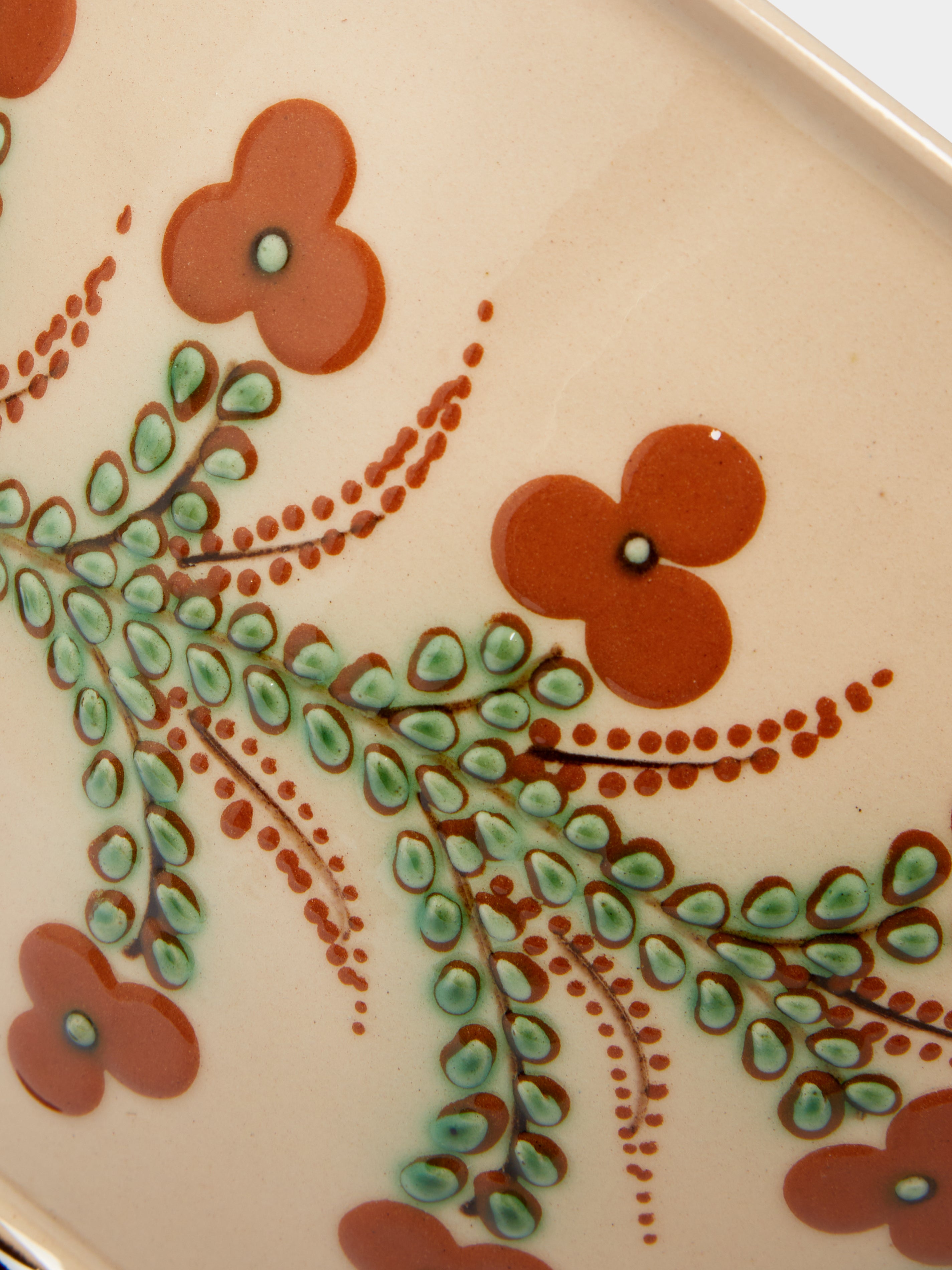 Jean-Christophe Hermann grew up near Lake Annecy in France, and recalls visiting an old pottery at just five years old that inspired him to pursue ceramics – a moment that led to the opening of Poterie d’Évires in 1971. Influenced by the landscape of their Haute-Savoie home, the Hermann family – Jean-Christophe and David, the father and son duo – hand-paint local delights onto their light, earthy and decorative clay; alpine flowers like tiny crocuses and soldanellas often feature, as well as native creatures such as Chamois and Ibex. ABASK made a special road-trip to the French Alps to hand-pick a curation from their exquisite collection. In 1981, after exploring his region’s brocante for many years, Jean-Christophe opened a museum dedicated to the pottery and folk art of Savoie. It’s the largest and most comprehensive collection in the world and displays pieces that date as far back as the 12th century.