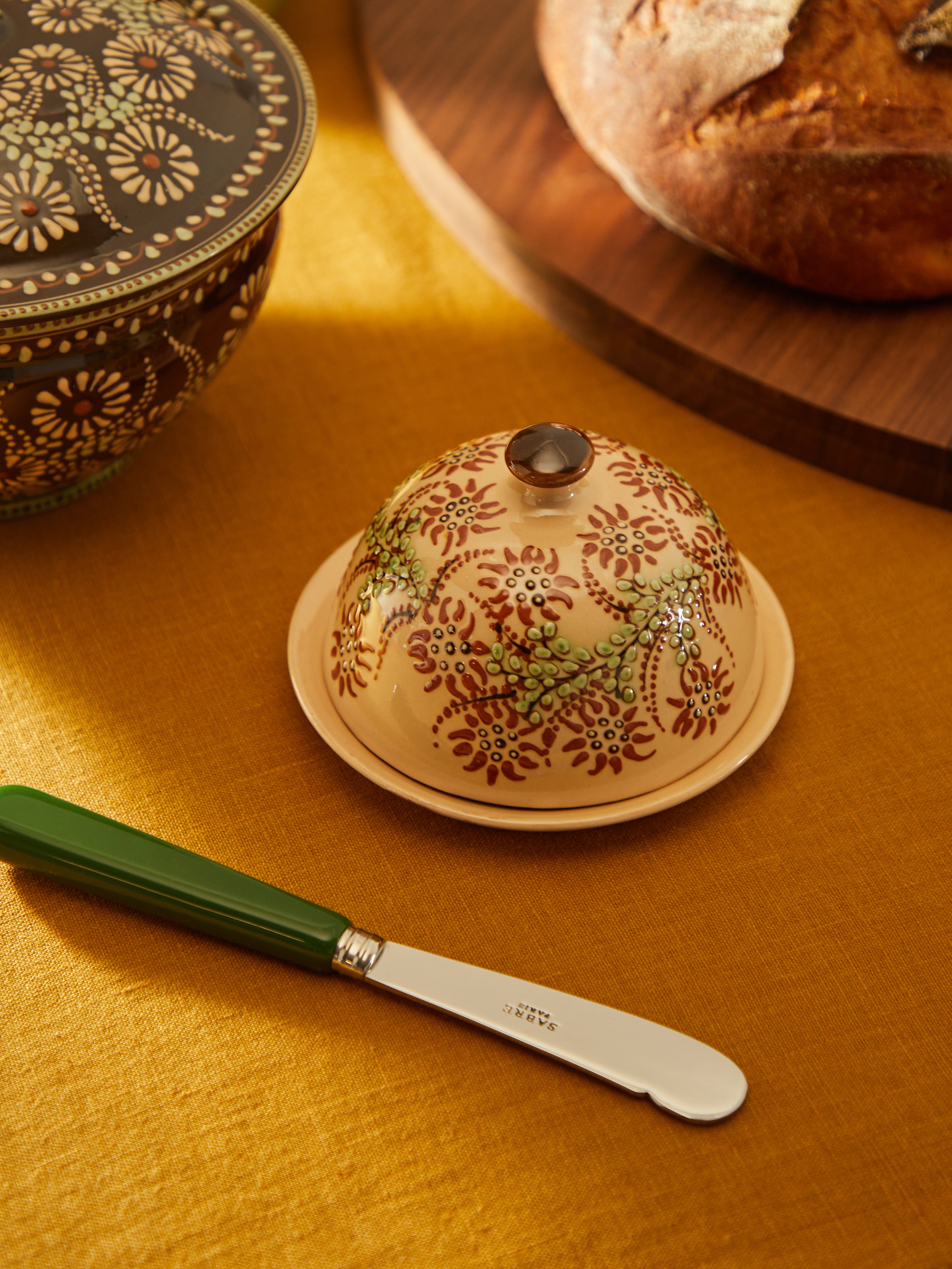 Poterie d’Évires Flowers Hand-Painted Ceramic Small Butter Dish