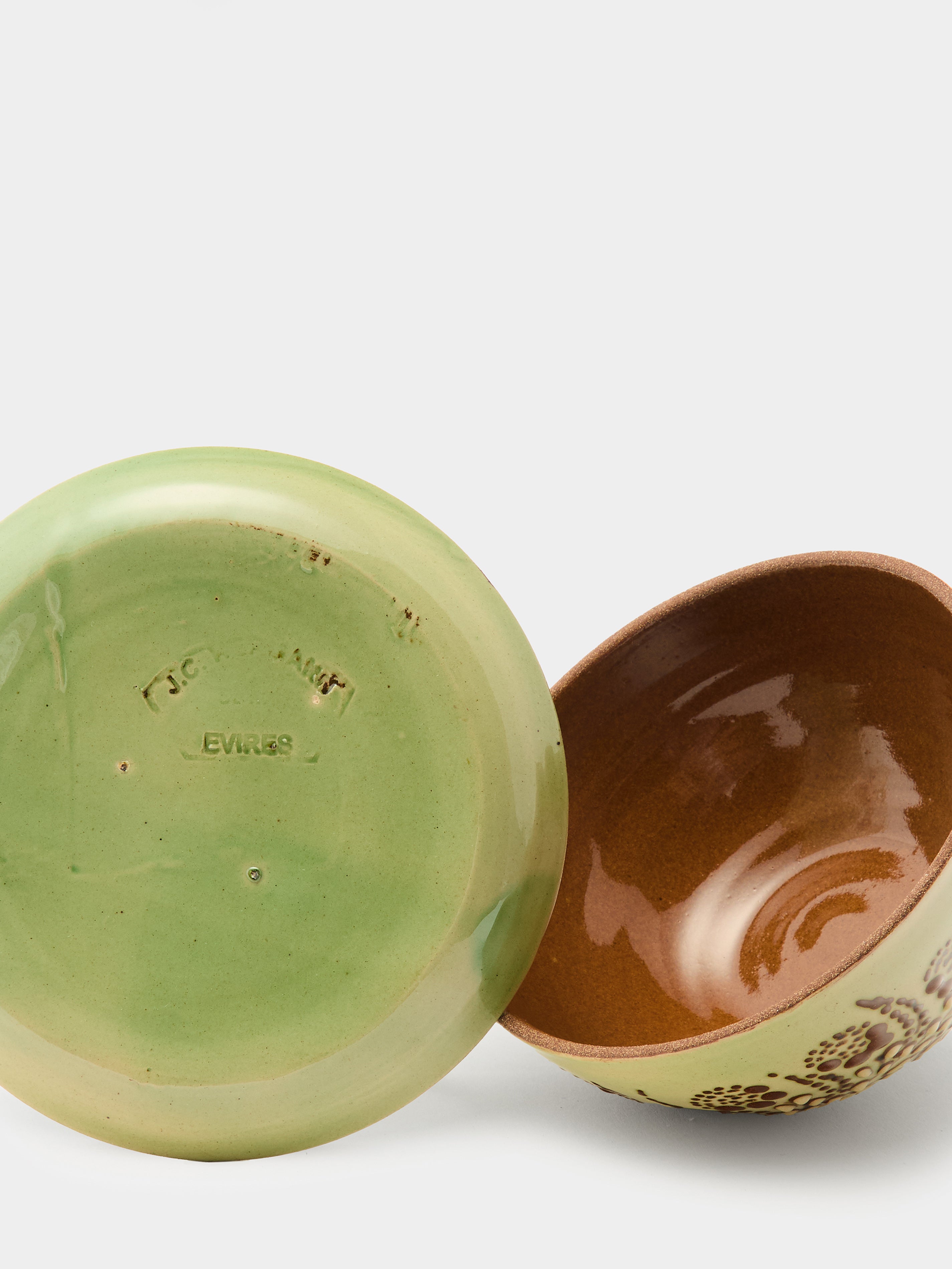 Jean-Christophe Hermann grew up near Lake Annecy in France, and recalls visiting an old pottery at just five years old that inspired him to pursue ceramics – a moment that led to the opening of Poterie d’Évires in 1971. Influenced by the landscape of their Haute-Savoie home, the Hermann family – Jean-Christophe and David, the father and son duo – hand-paint local delights onto their light, earthy and decorative clay; alpine flowers like tiny crocuses and soldanellas often feature, as well as native creatures such as Chamois and Ibex. ABASK made a special road-trip to the French Alps to hand-pick a curation from their exquisite collection. In 1981, after exploring his region’s brocante for many years, Jean-Christophe opened a museum dedicated to the pottery and folk art of Savoie. It’s the largest and most comprehensive collection in the world and displays pieces that date as far back as the 12th century.