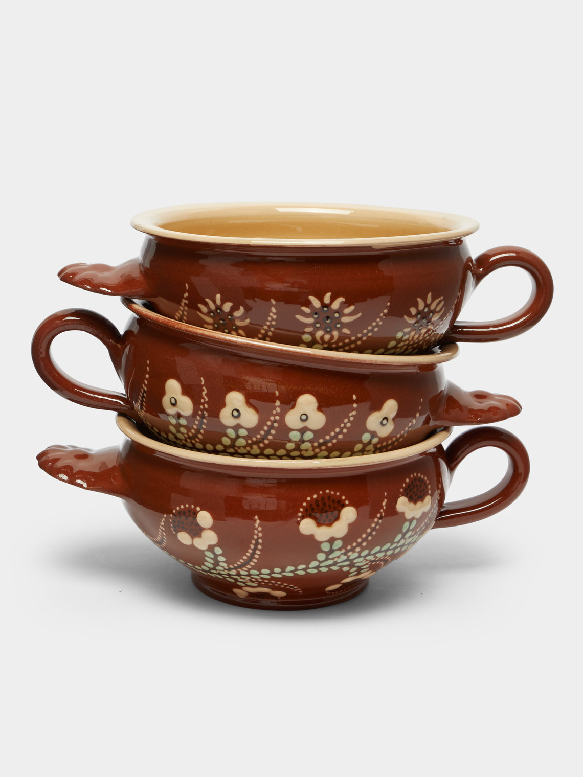 Poterie d’Évires Flowers Hand-Painted Ceramic Soup Bowls (Set of 3)