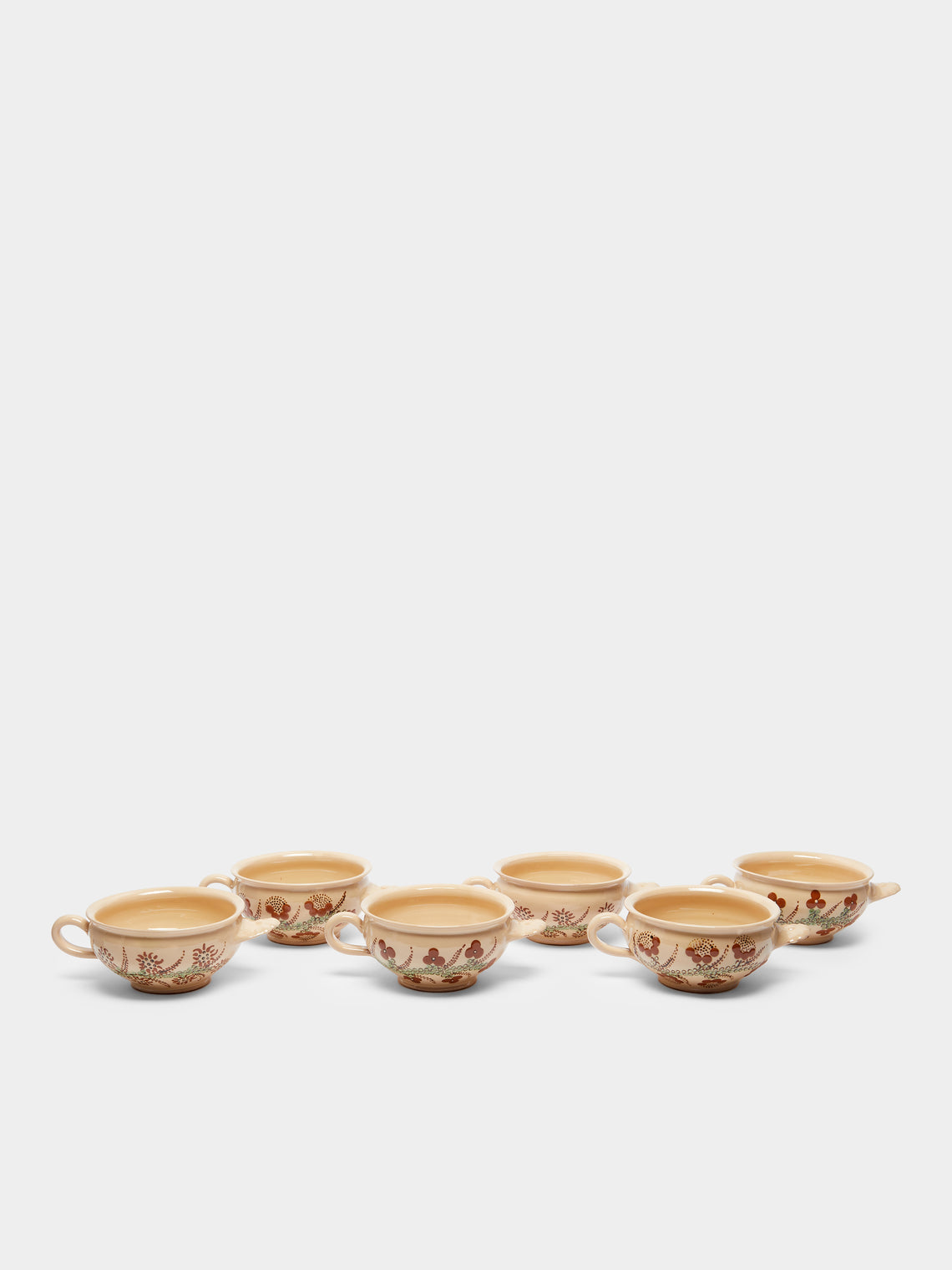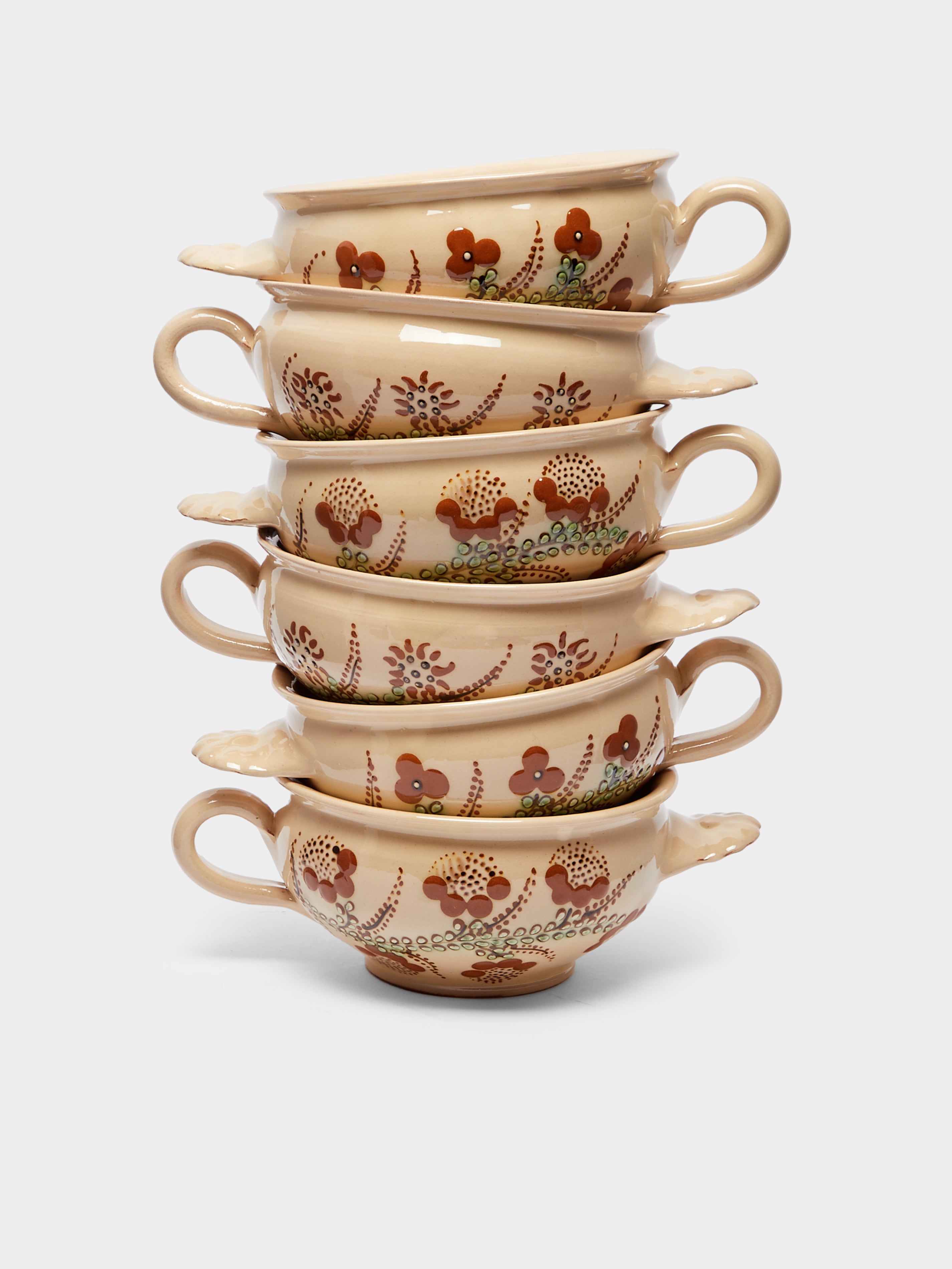 Poterie d’Évires Flowers Hand-Painted Ceramic Soup Bowls (Set of 6)