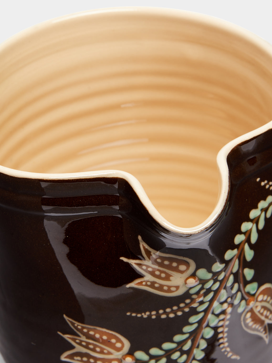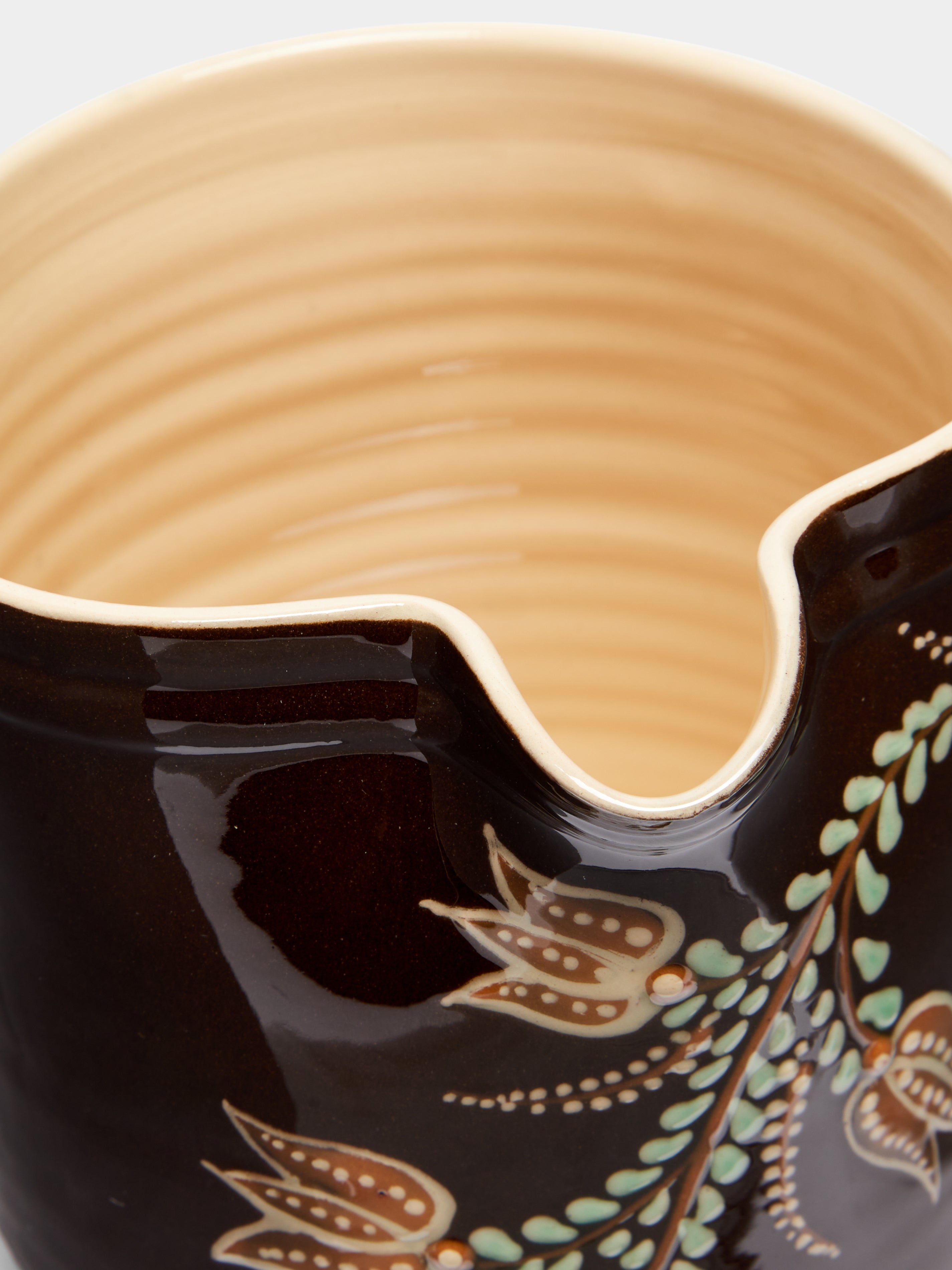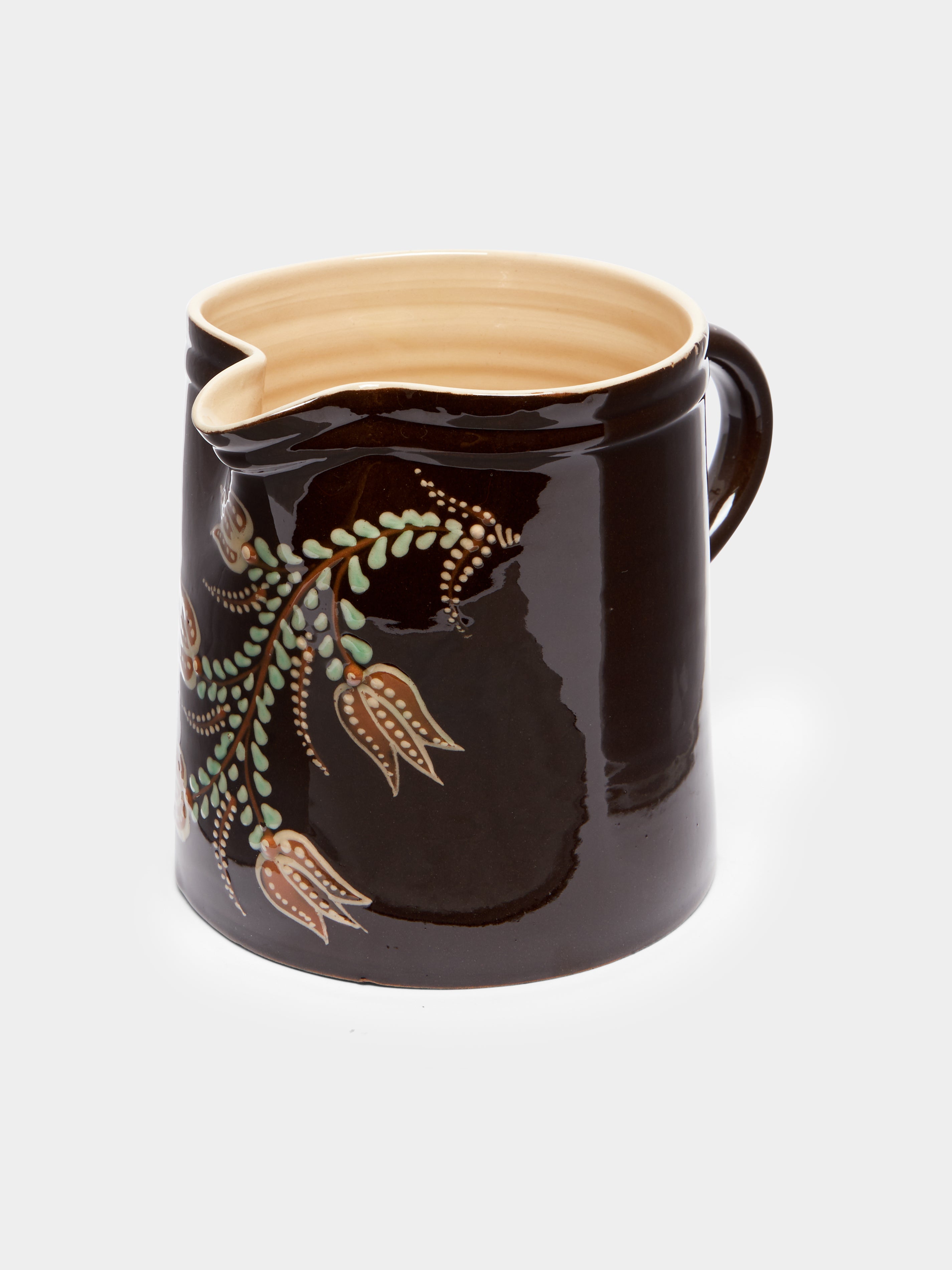 Poterie d’Évires Flowers Hand-Painted Ceramic Straight-Edge Jug