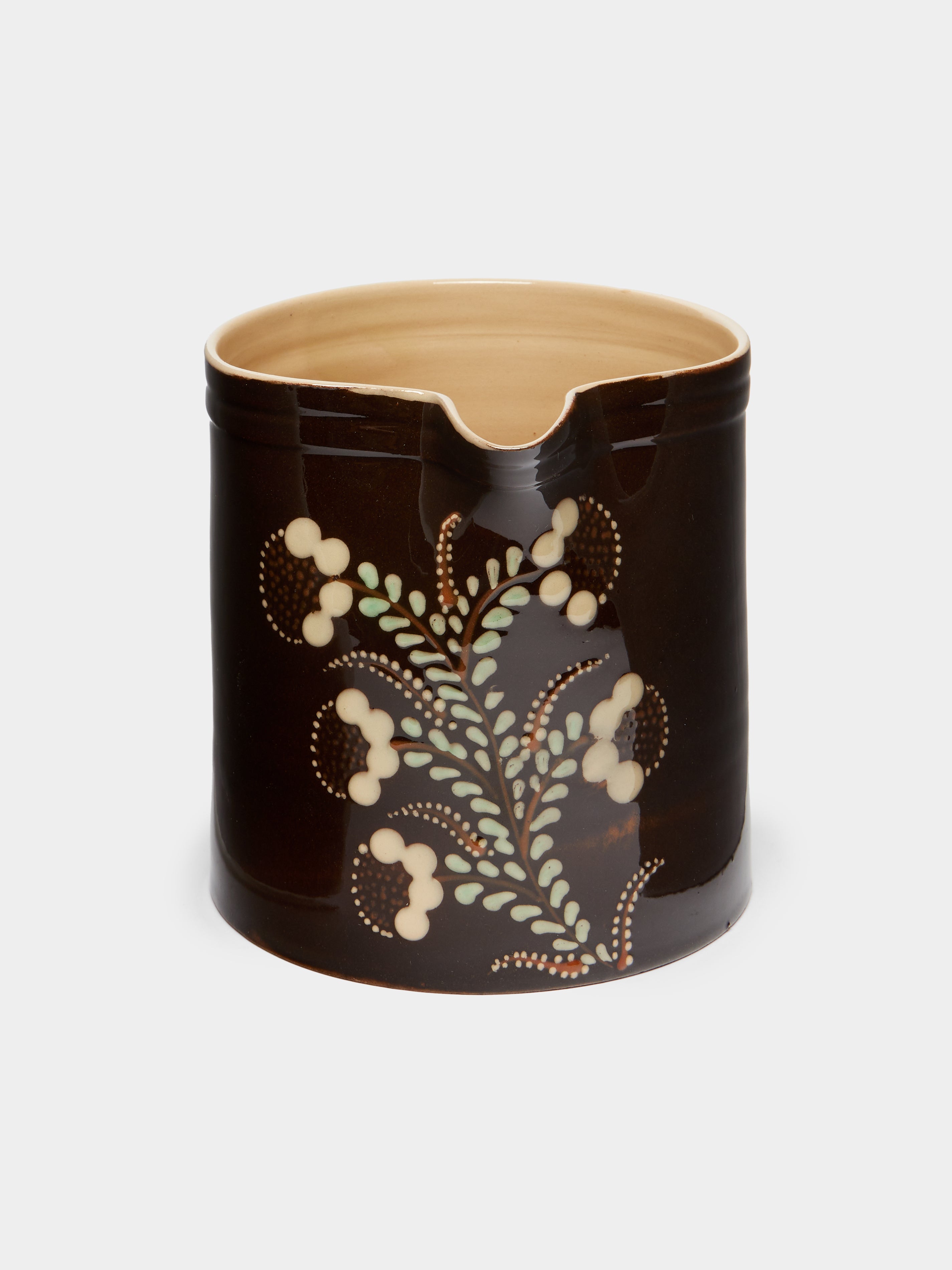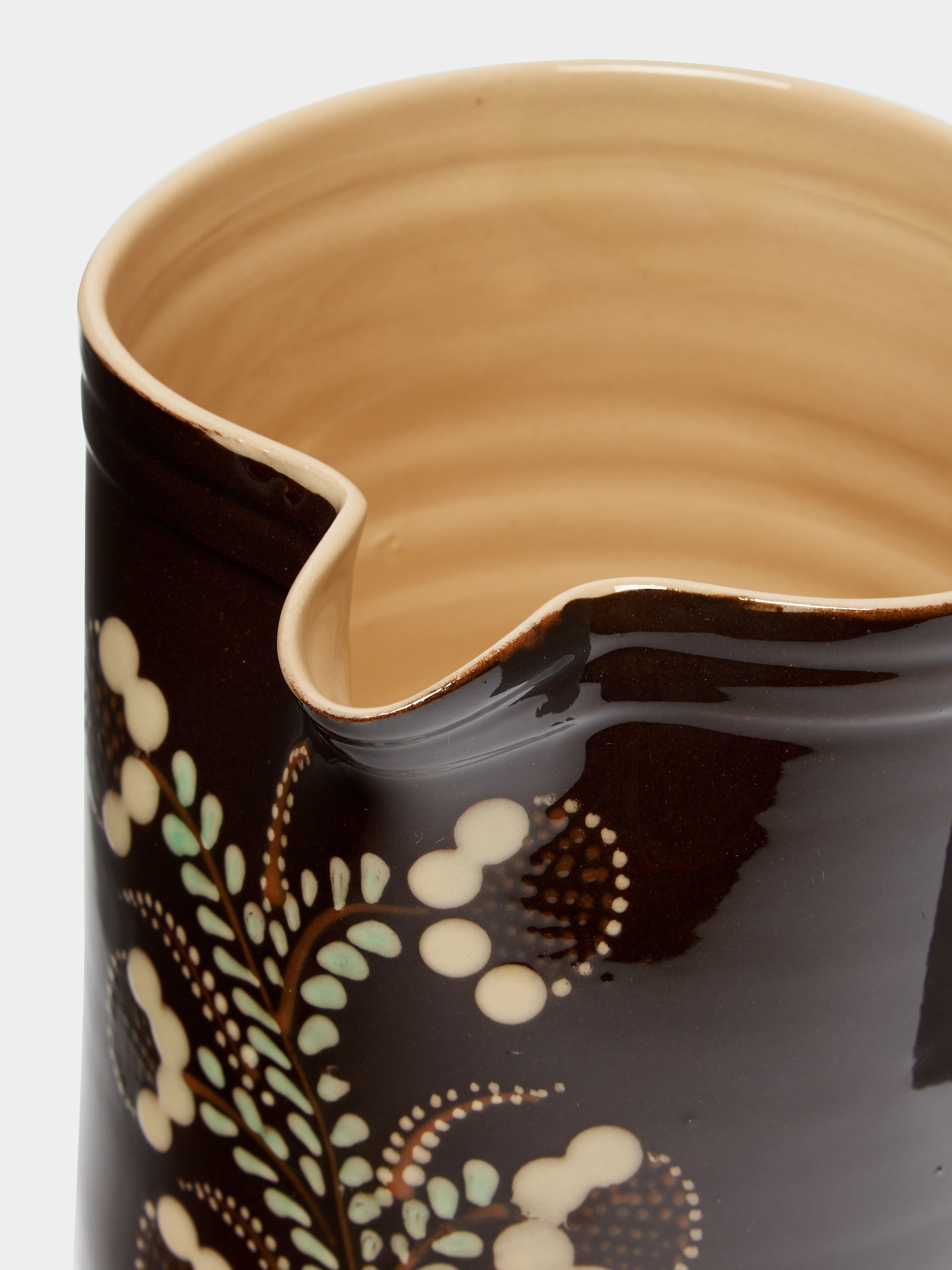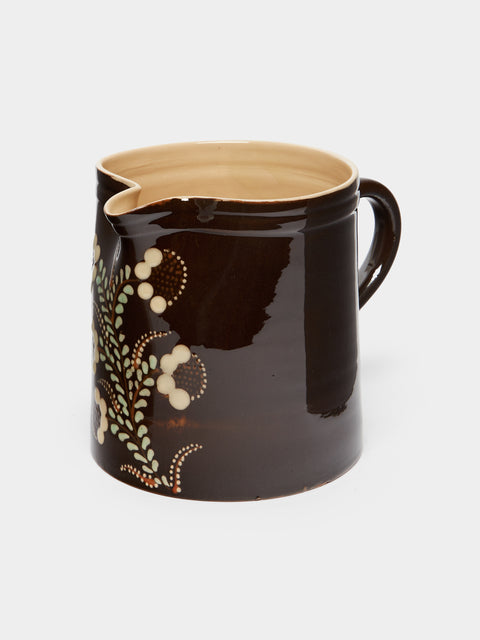 Poterie d’Évires Flowers Hand-Painted Ceramic Straight-Edge Jug