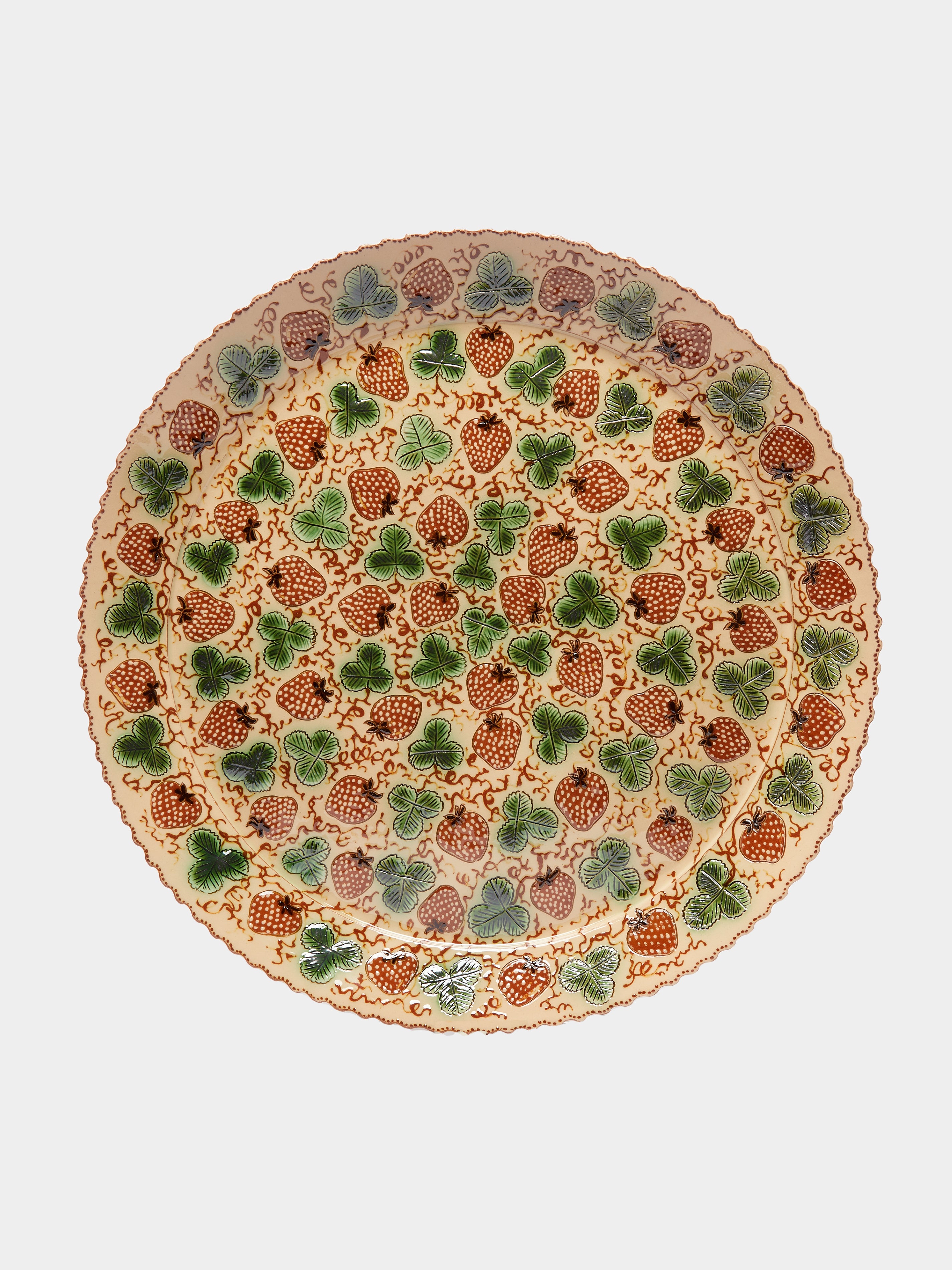 Poterie d’Évires Strawberries Hand-Painted Ceramic Serving Plate