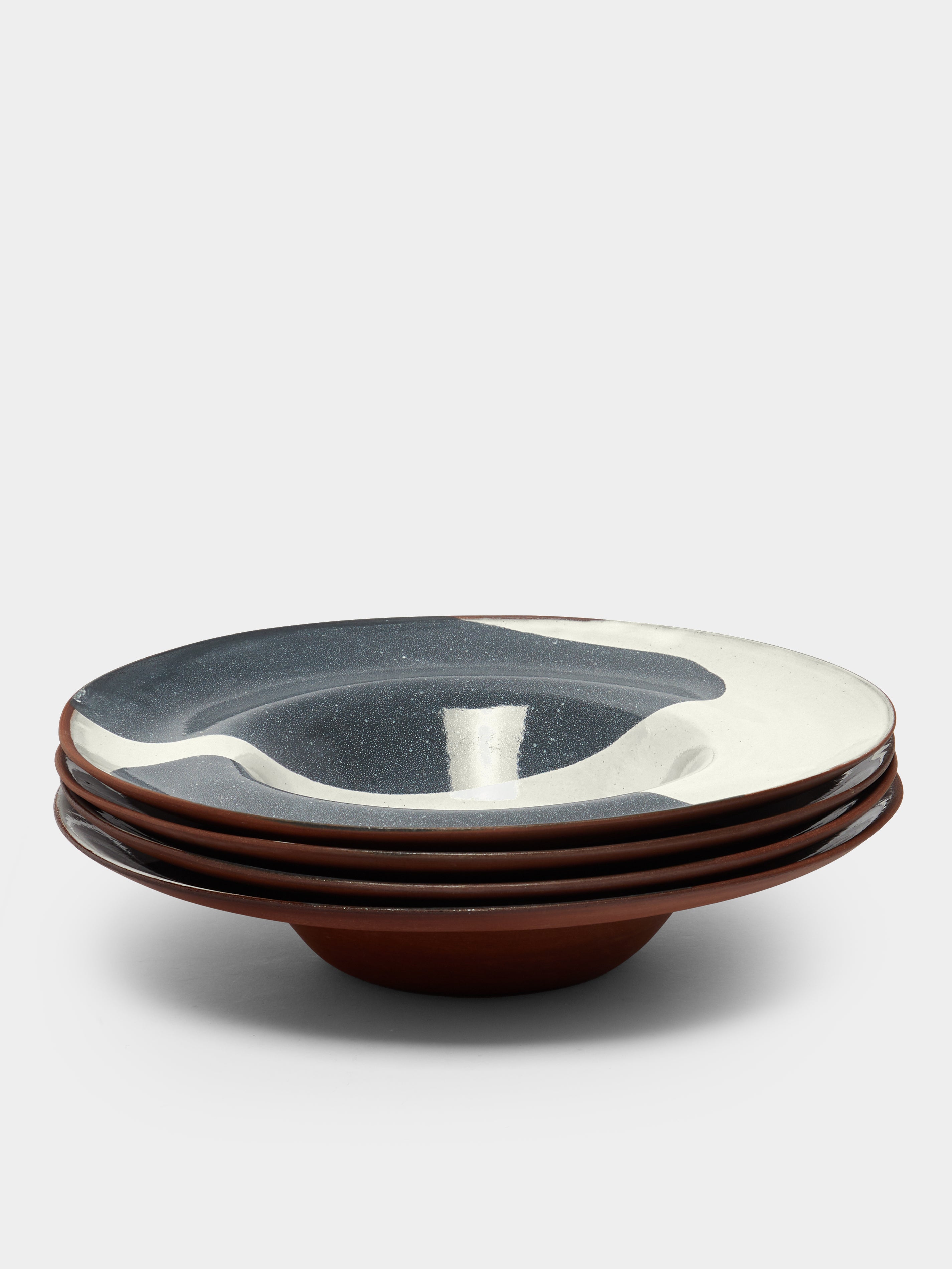 Silvia K Ceramics Hand-Glazed Terracotta Large Rimmed Bowls (Set of 4)