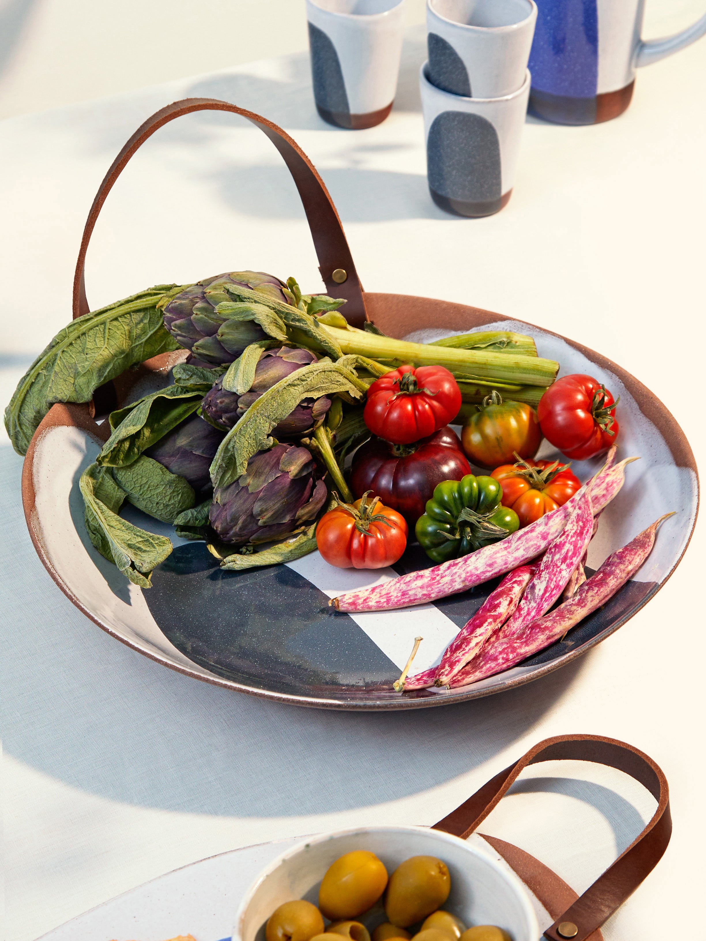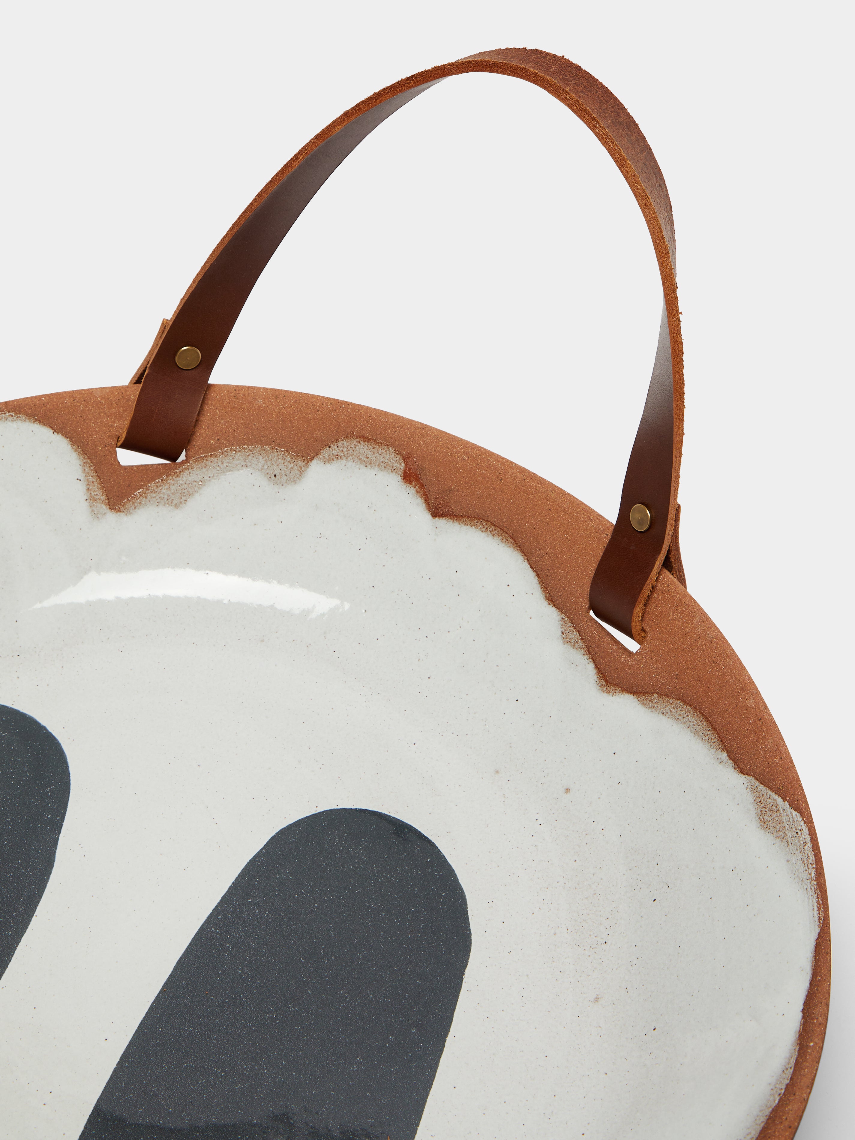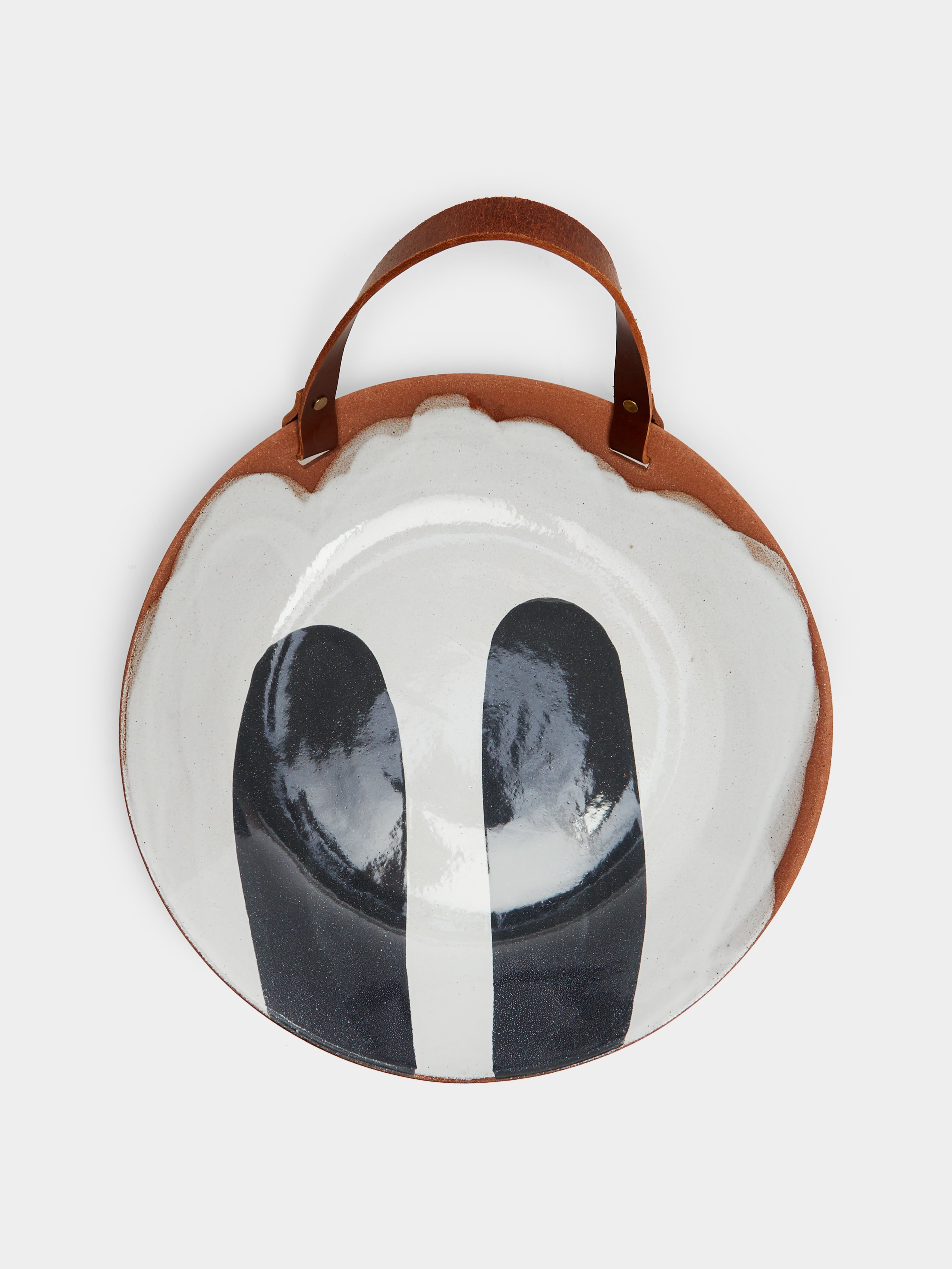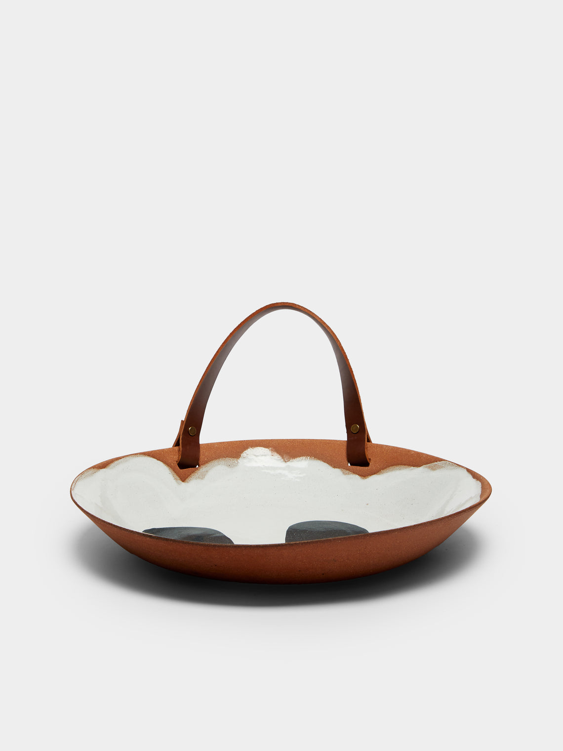Silvia K Ceramics Hand-Glazed Terracotta Small Serving Bowl with Leather Handle