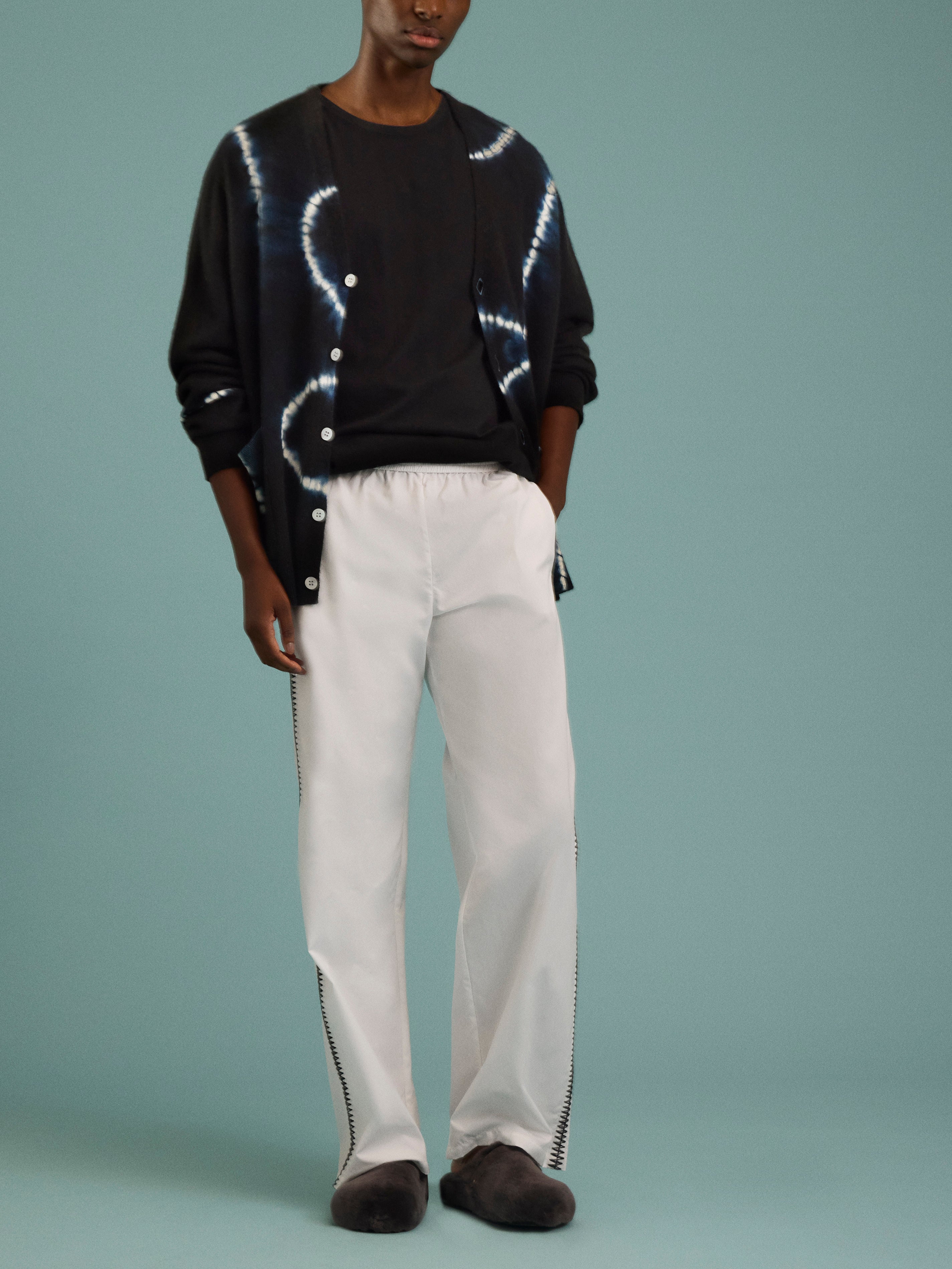 For more than 100 years, the Murase family behind Suzusan – now in its fifth generation – has been refining the traditional shibori technique in the Japanese town of Arimatsu. It was founded in 2008 by Hiroyuki, who recognised the value and beauty that this handicraft held. The sensitive process, which translates to ‘wring’ or ‘twist’, sees parts of the textile tied, sewn or folded before they’re dyed. Such careful manipulation results in flowing colour gradients, contrasts and three-dimensional structures. Yet, this fine craft is declining at a rapid pace; while there were once 10,000 artisans working in Arimatsu, today there are less than 200. Its revival is therefore paramount to Suzusan, which is seen in the constant development of innovative procedures, materials and dyes.