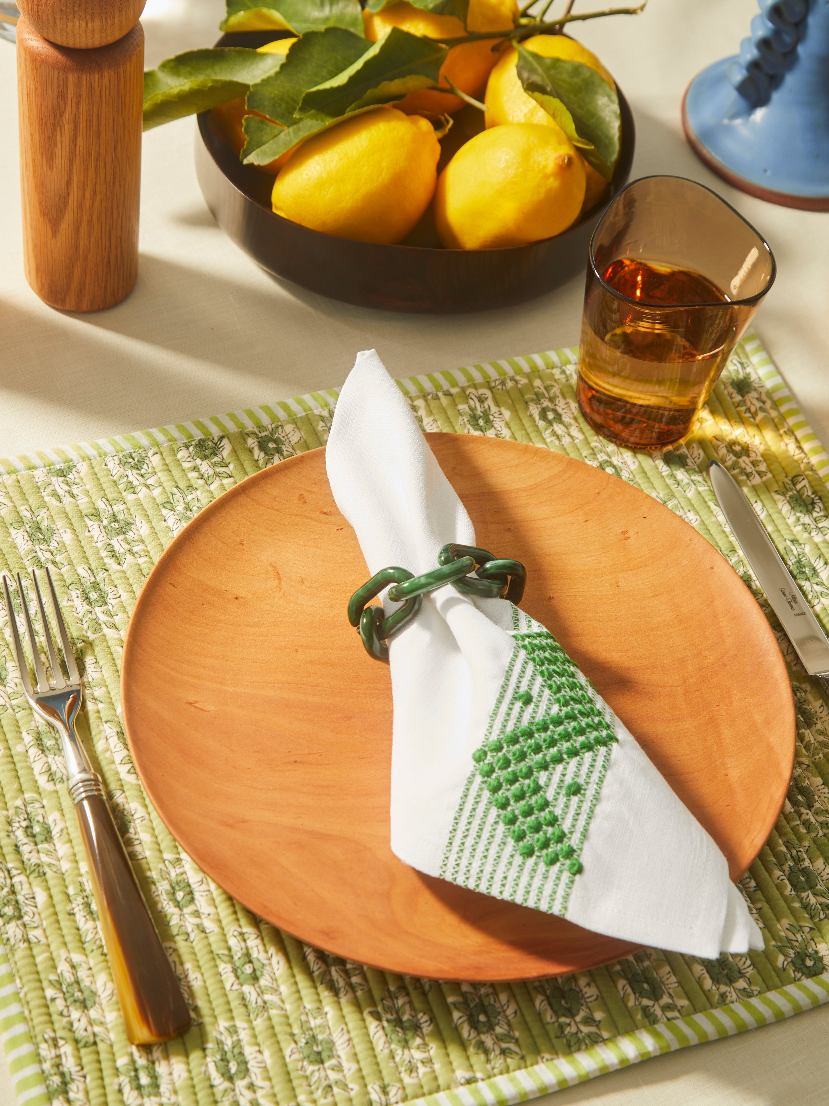 Founder of The Table Love Roberta Ellingsen trained as an Interior Architect in London and Milan, before expanding her expertise at several interior-based publications. It wasn’t until 2018, while on a sabbatical with her family in the Alps, that she fully explored her love of pieces for the home – and more specifically, the table. Her wonderful team is far-reaching and inclusive, with female embroiderers in Ukraine and block-print artisans in India. Plus, she doesn’t overlook her carbon footprint, applying a ‘zero spill’ policy to avoid unnecessary waste, while also opting for eco-friendly alternatives wherever possible.