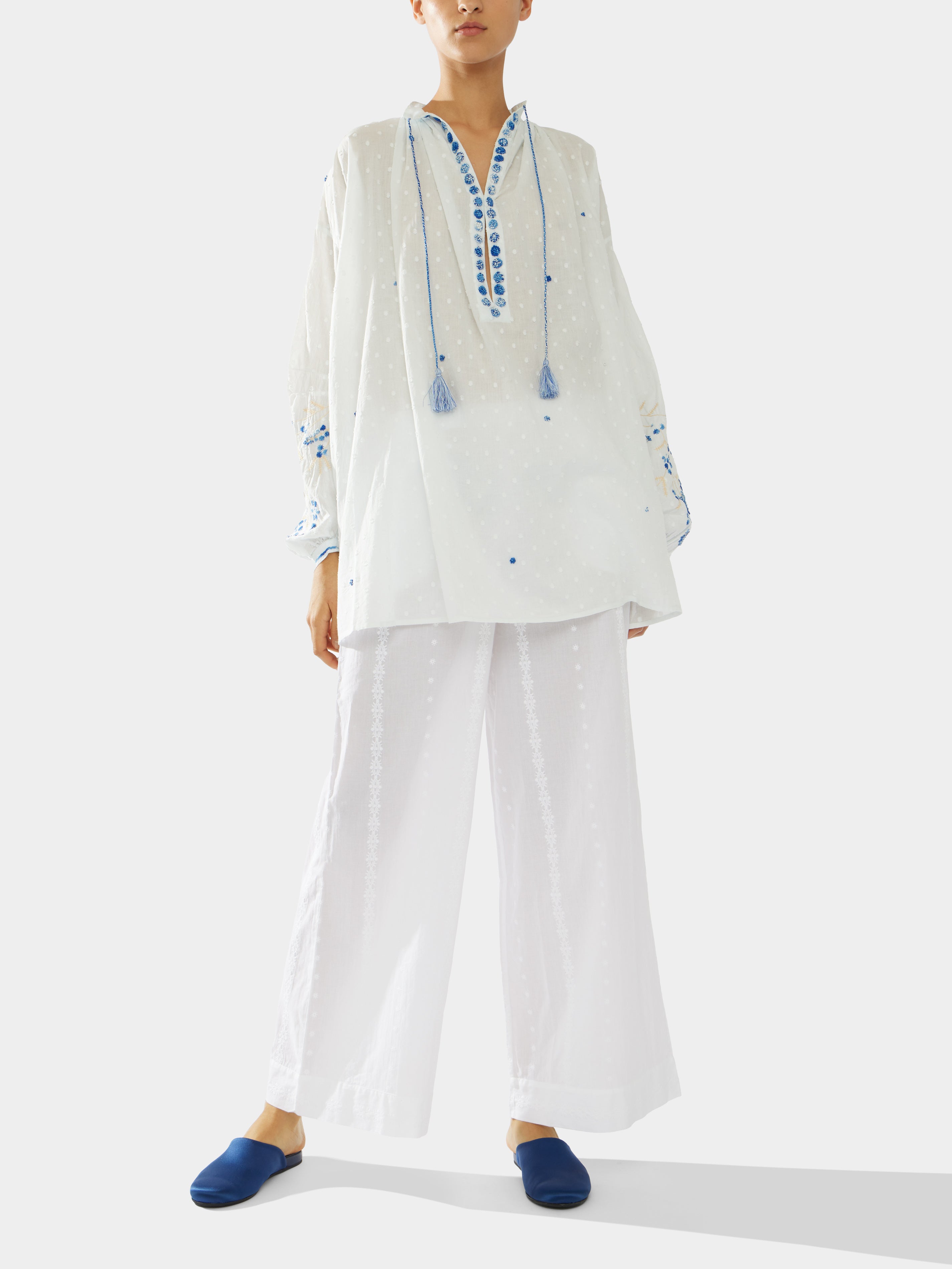 Thierry Colson released his first eponymous collection in 2005, guided by his experiences with design luminaries such as Hermès, Jil Sander and Chloé. In everything he does, the accent is on the art of the hand touch, and he looks to crafting centres from across the globe to inform his vision, from French fabrics to Indian block-printing. Often, Colson’s lookbooks are centred around a travel-led memory or keepsake, offering a lens into his colourful, creative imagination.