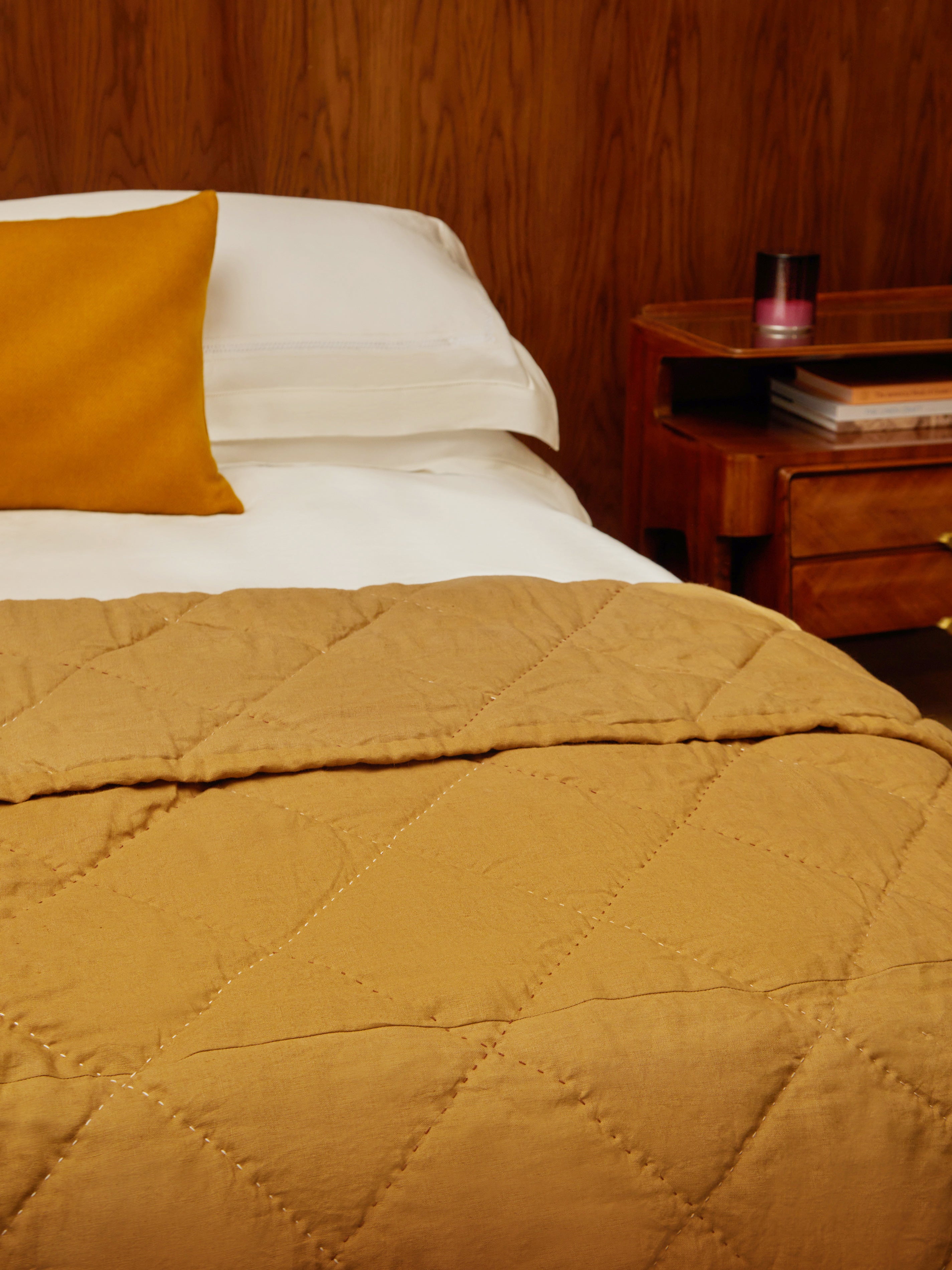Tuck It In Hand-Embroidered Linen Quilt (79in/2m)